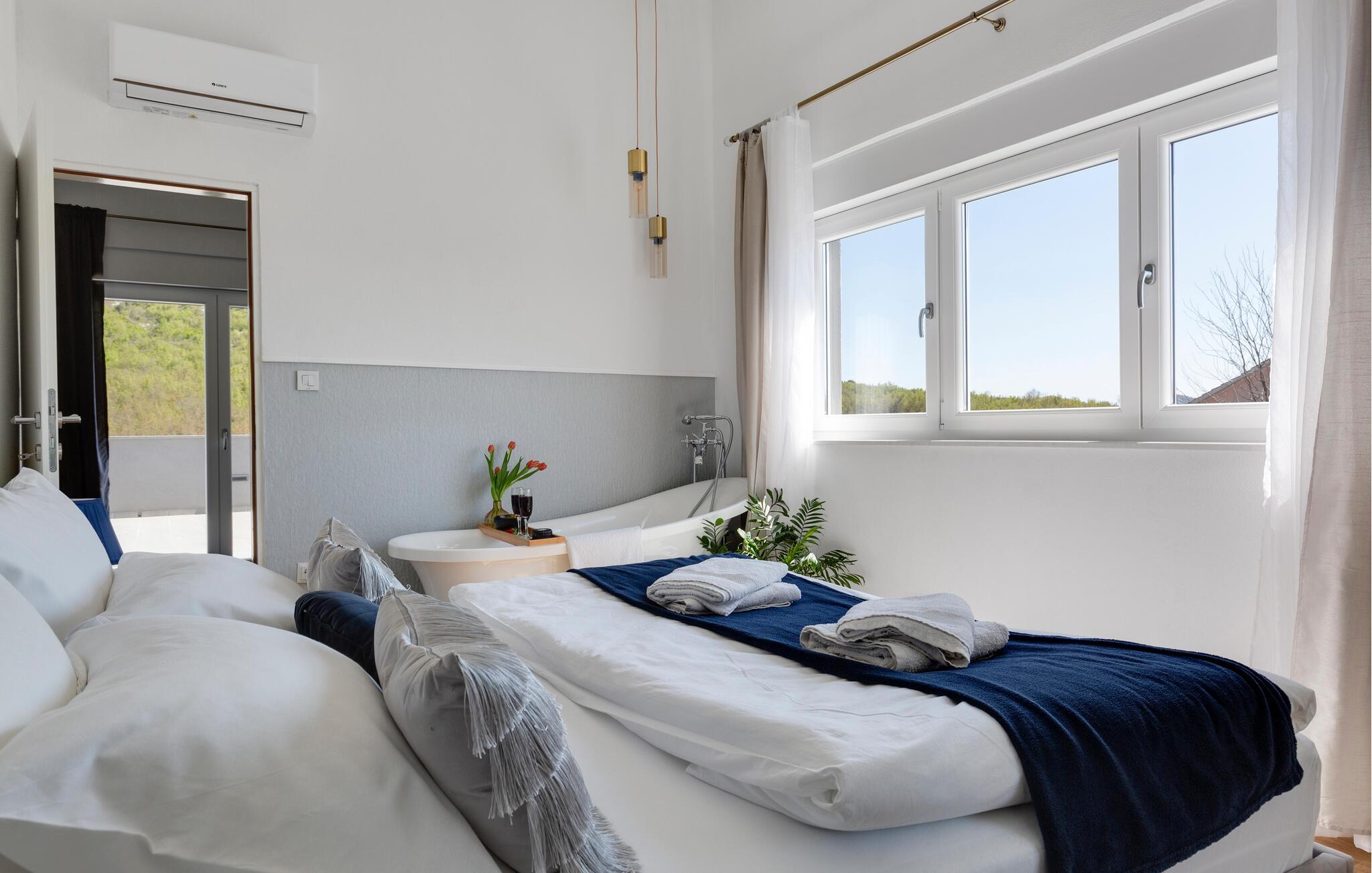 Tag til den sydlige del af Dalmatien og oplev en skøn pause fra hverdagens travle program. Her kommer I til at nyde livet i vidunderlige omgivelser. Når vejret er godt, kan I læne jer tilbage på terrassen eller ved poolen og nyde jeres ferielæsning og solen. Her har I en vidunderlig udsigt til de grønne omgivelser. Om aftenen kan I sidde på terrassen ved poolen og se solnedgangens storslåede farver, mens I reflekterer over jeres dag.