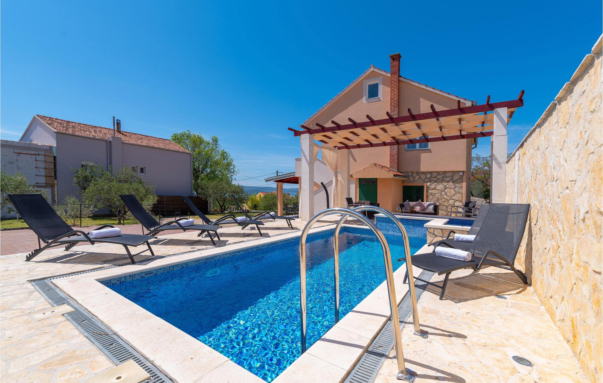 Dette skønne feriehus giver jer mulighed for at holde ferie sammen med den udvidede familie eller flere familier og vennepar. I dette velholdte og attraktive hus er der tre ferielejligheder, hvor I som lille familie kan nyde jeres privatliv med eget køkken og badeværelse. Der er en stor terrasse og en skøn altan, hvorfra I kan nyde udsigten til havet. I haven er der både et spabad og en pool, hvor I kan plaske, slappe af og bade sammen. Læn jer tilbage på terrassen, før I tager til stenstranden.