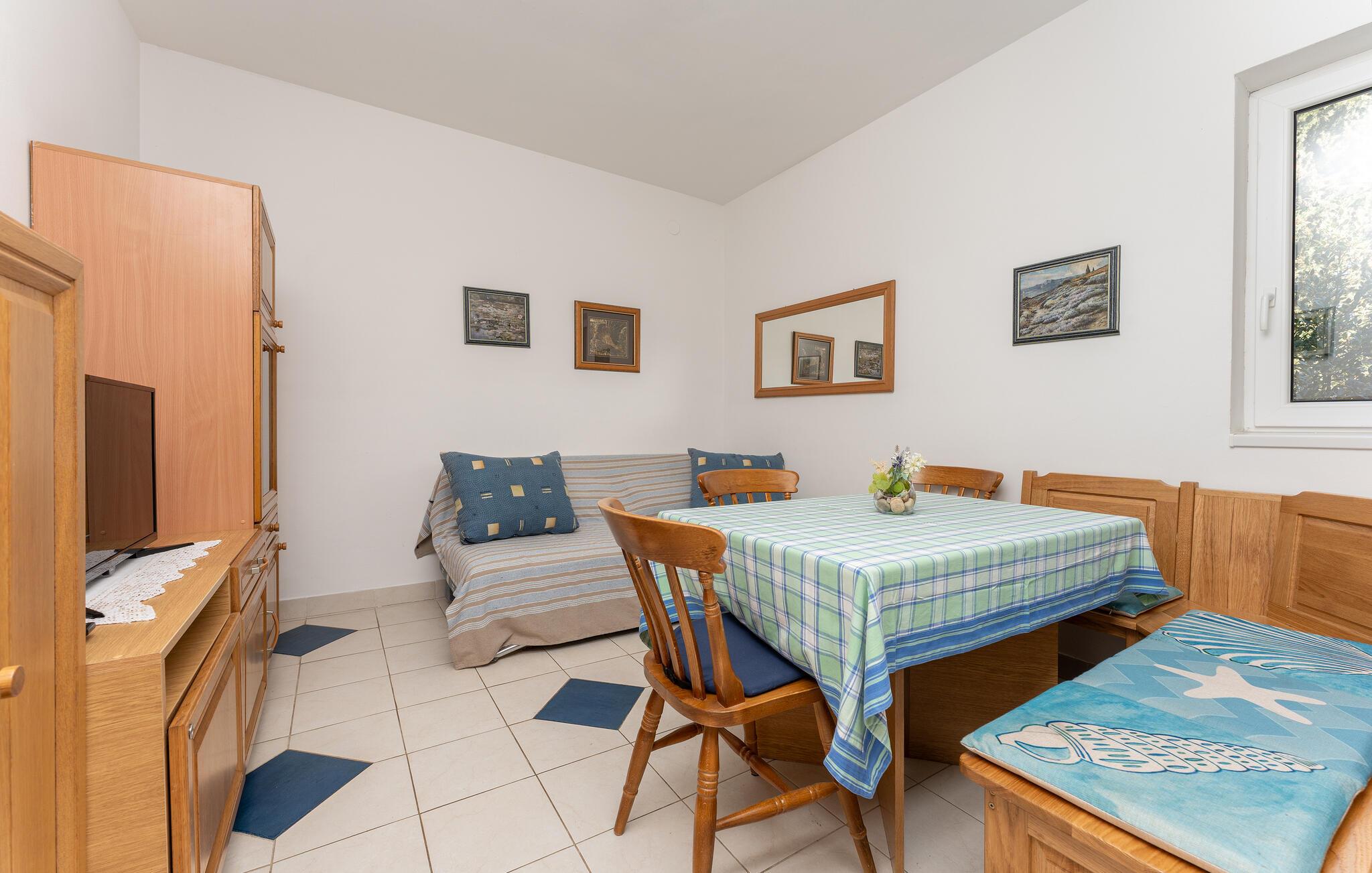 Kun få skridt fra stranden inviterer denne lyse og velholdte ferielejlighed jer til afslappede dage ved Adriaterhavskysten. Tilbered lækre måltider i det moderne køkken, og nyd dem derefter i den hyggelige spisekrog. Efter en oplevelsesrig dag kan I slappe af på sofaen, fordybe jer i en god bog eller spille et brætspil sammen.