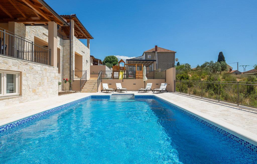 Forkæl jer selv med en drømmeferie i dette rummelige feriehus med pool, sauna og havudsigt. Den smukke, moderne Villa San byder jer velkommen til en lille bebyggelse ikke langt fra byen Biograd na Moru. Dens smagfuldt indrettede interiør opfylder de højeste standarder og tilbyder rigelig plads til en stor familie eller en gruppe venner. Fremtryll kulinariske lækkerier i det fuldt udstyrede køkken, mens børnene hygger sig i legerummet eller spiller bordfodbold, og planlæg jeres aktiviteter over afslappede måltider ved det stilfulde spisebord. Slap af i saunaen, brug fitnessrummet til jeres træning, og lad pejsen sørge for ekstra komfort om aftenen, mens I kryber jer sammen i sofaen. Det elegante udendørsområde er perfekt til at nyde det vidunderlige klima fra morgen til aften. Tag en afslappet svømmetur i poolen om morgenen og nyd havet, mens I nyder morgenmaden på terrassen. Komfortable loungemøbler lægger op til at snakke over et glas vin ved solnedgang, inden I afrunder de lune sommeraftener med en stemningsfuld grill. Yngre gæster vil nyde legepladsen med rutsjebane. Tag en bådtur til Kornati-øerne, cykl eller vandre gennem Vrana-søens naturpark, og se Krka-vandfaldene. Gå en tur gennem Zadars gamle bydel med havorglet og "Hilsen til solen", prøv dalmatiske specialiteter i Šibenik, og glæd jer til uforglemmelige solnedgange på maleriske strande. Bemærk venligst: Ejendommen er ikke egnet til ungdomsgrupper under 30 år eller polterabender. Sådanne bookinger kan blive afvist eller annulleret uden refusion, selv ved ankomst eller under opholdet.