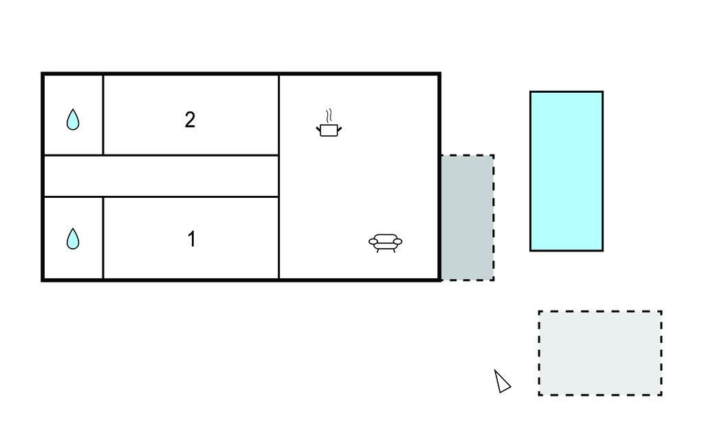 Opholdsstue/køkken 30m2 - 2 Sovepladser. (Sofa, madras eller lignende).