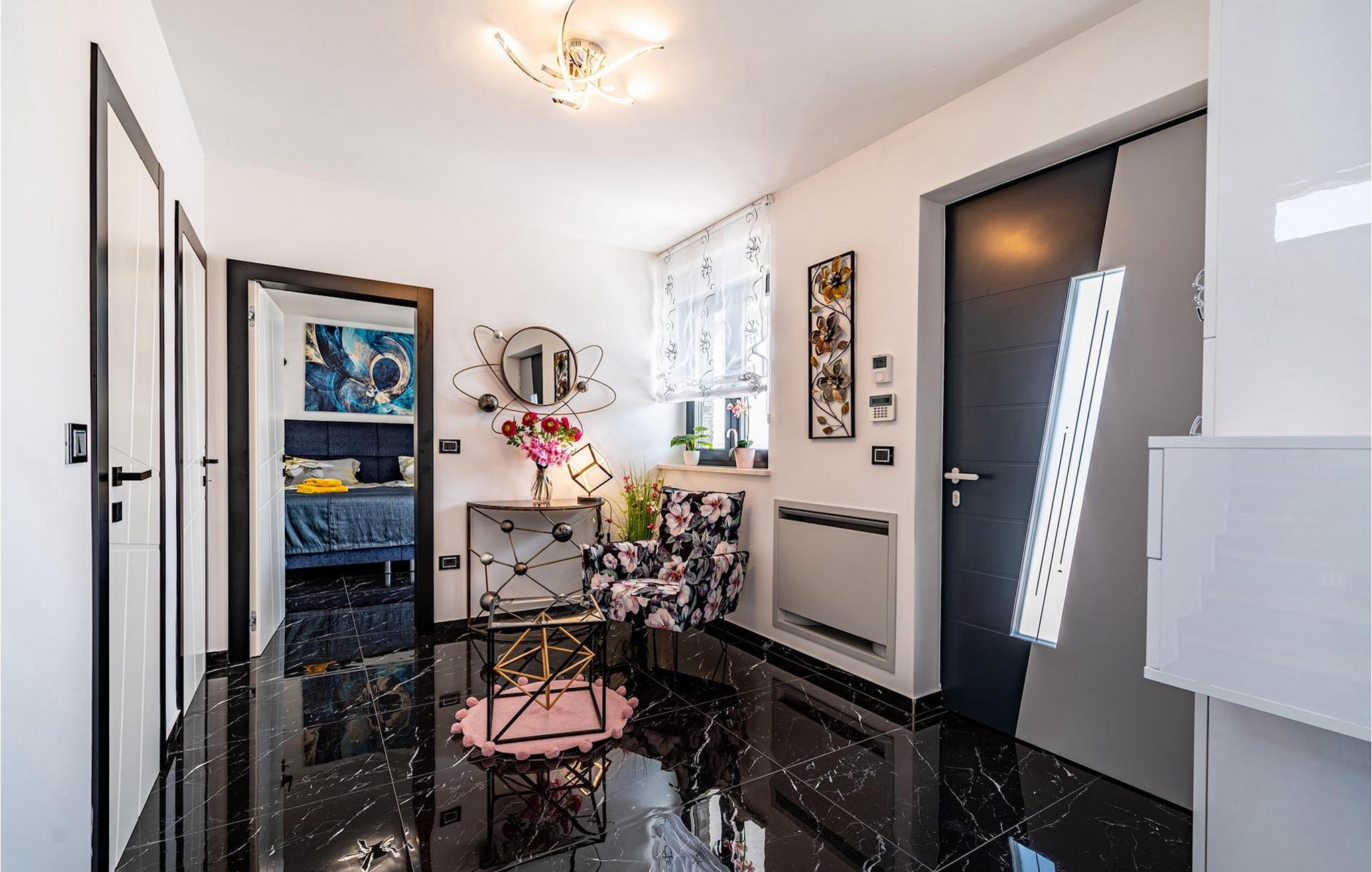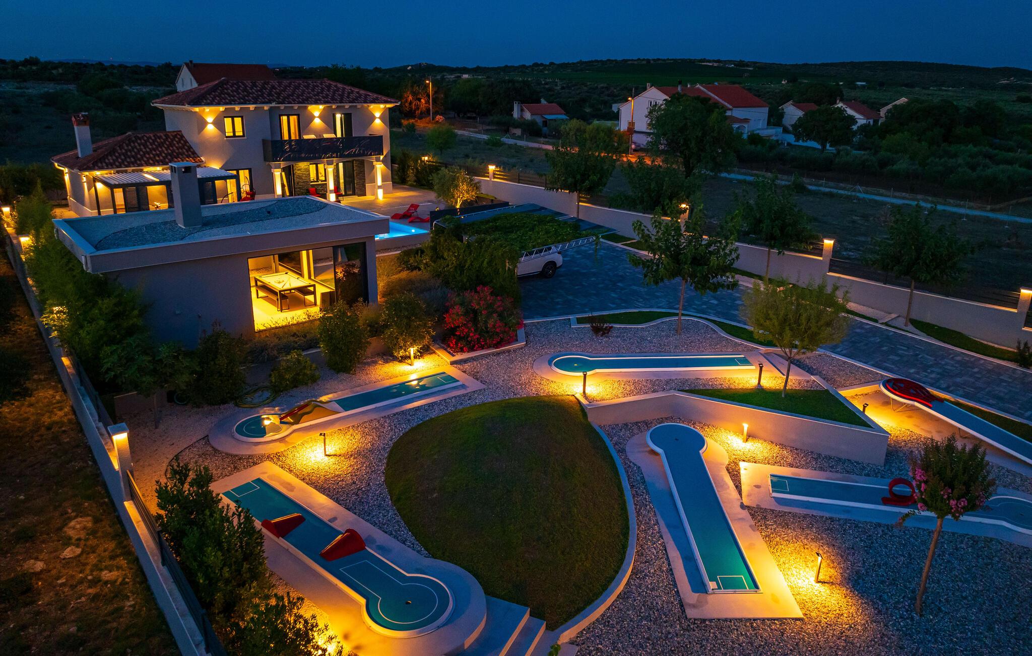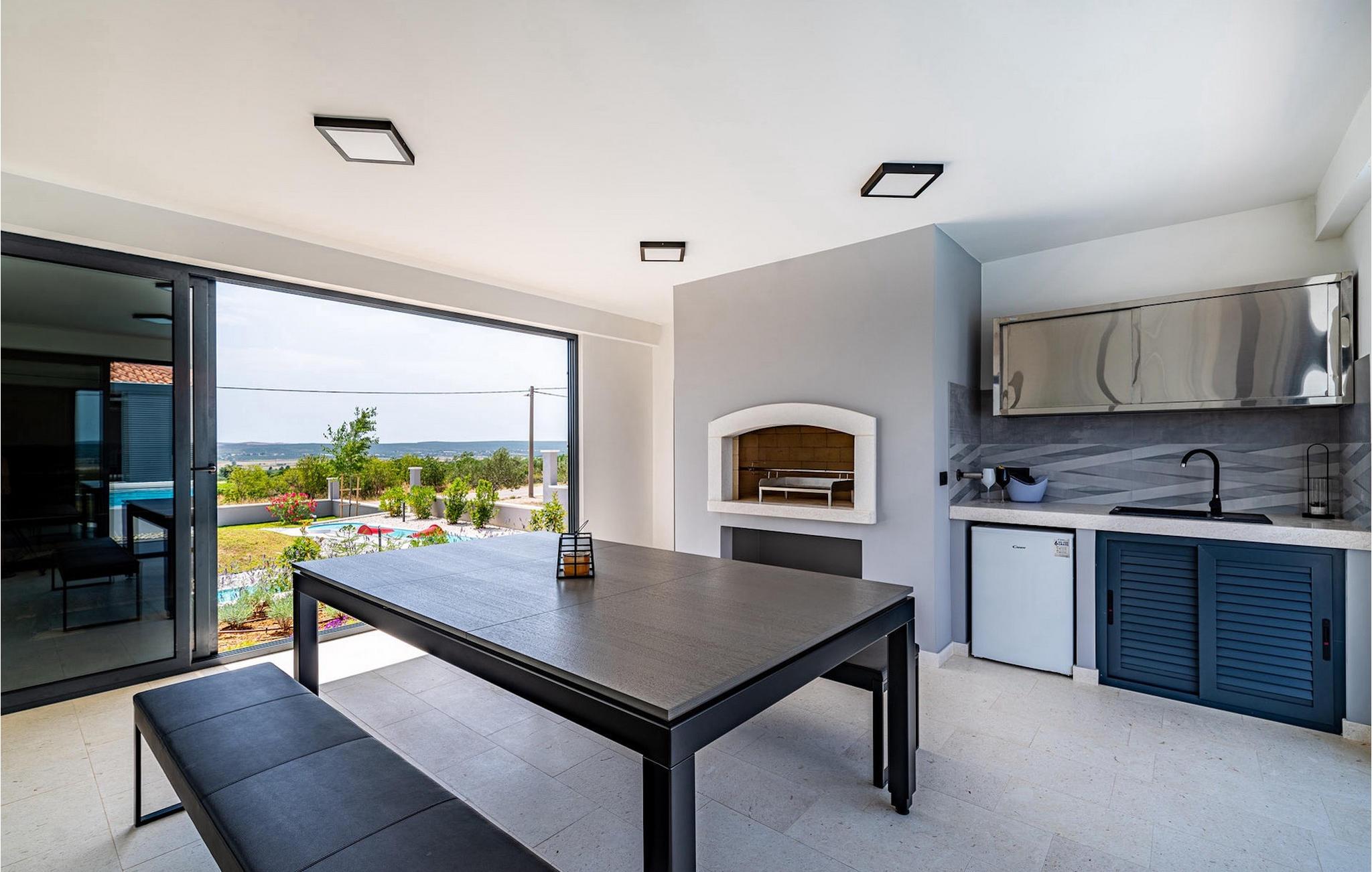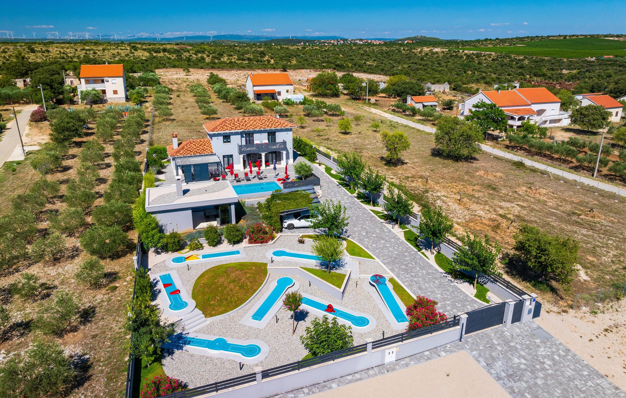 Står hvile, afslapning og en spændende ferie med dine kære højt på din ønskeliste? Så vil denne drømmeejendom fortrylle dig. Villa Casa Grigia ligger midt i en idyllisk beliggenhed tæt på kystbyen Biograd na Moru. Med sit mangfoldige underholdningstilbud, samt de maleriske omgivelser, er villaen utvivlsomt en helt unik ferievilla. Du vil nyde selv de varmeste sommerdage med at slappe af, da en vidunderlig forfriskende pool med hydromassage er centrum af ejendommen. Rundt om poolen er der liggestole, hvor du kan slappe af med en forfriskende drink. Hvis du kan lide at spille minigolf, er der en privat minigolfbane til din rådighed. Den separate 40m2 ejendom med grill, spiseplads og et poolbord er også tilgængelig for dig at samles med dine kære og tilbringe uforglemmelige aftener. Benyt lejligheden til at tilberede lækre måltider ved grillen. Når du kommer ind i villaens indre fra udendørsområdet, finder du en åben, smagfuldt indrettet opholdsstue med spisebord og fuldt udstyret køkken. Villaen kan rumme i alt 6 personer med 3 komfortable soveværelser. Et af soveværelserne ligger på første sal, mens 3 andre soveværelser ligger på anden sal. Hvert af de smarte møblerede værelser har sit eget moderne badeværelse, aircondition og tv. Du vil næsten ikke vente med at tilbringe din ferie på Villa Casa Grigia!Villa Casa Grigia ligger i en lille landsby kaldet Tinj, nær kystbyen Biograd na Moru. Den "hvide by ved havet" byder på smukke strande og bugter, talrige restauranter og taverner, hvor du kan nyde det fremragende dalmatiske køkken, samt Fun Park Mirnovec, hvis du ønsker yderligere aktiviteter for din familie. Placeringen af villaen giver et glimrende udgangspunkt for udflugter. Kystbyerne Zadar og Sibenik, hver kun en kort køretur væk, inviterer dig til at tage på en dagstur med deres rige historie og adskillige seværdigheder. Zadar er en historisk by og byder på en kombination af sightseeing, gastronomi og strand. Helt speciel er den gamle bydel som ligger på en halvø, adskilt fra den nye by. Velkendt er "Havorgelet" og den såkaldte "Hilsen til Solen"-pladsen, som ligger direkte på promenaden. Book den særlige Villa Casa Grigia og lad Dalmatien fortrylle dig!