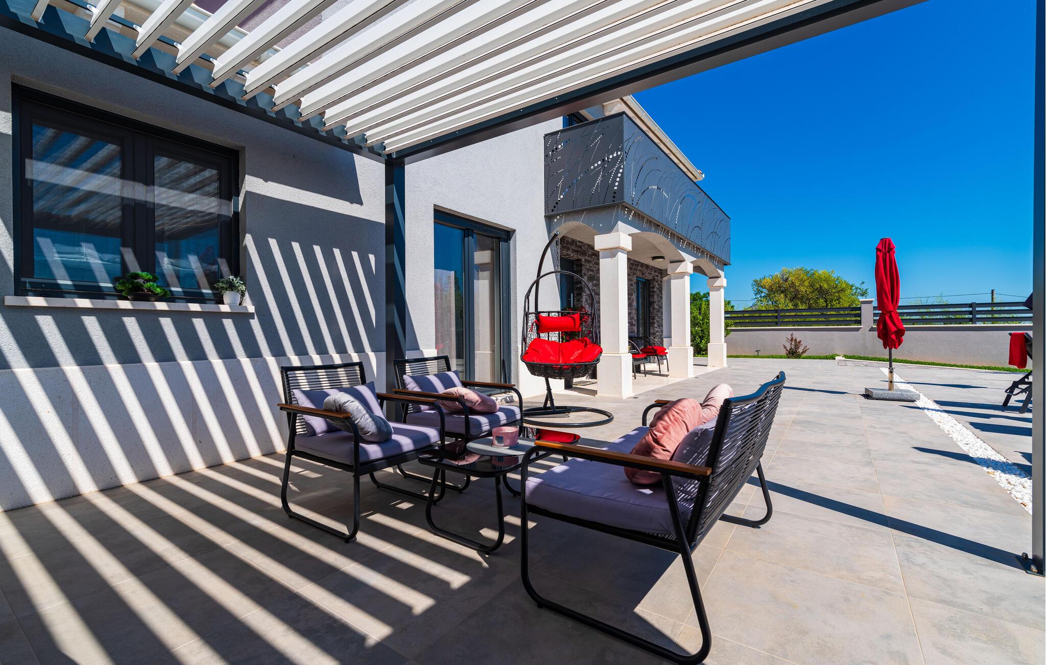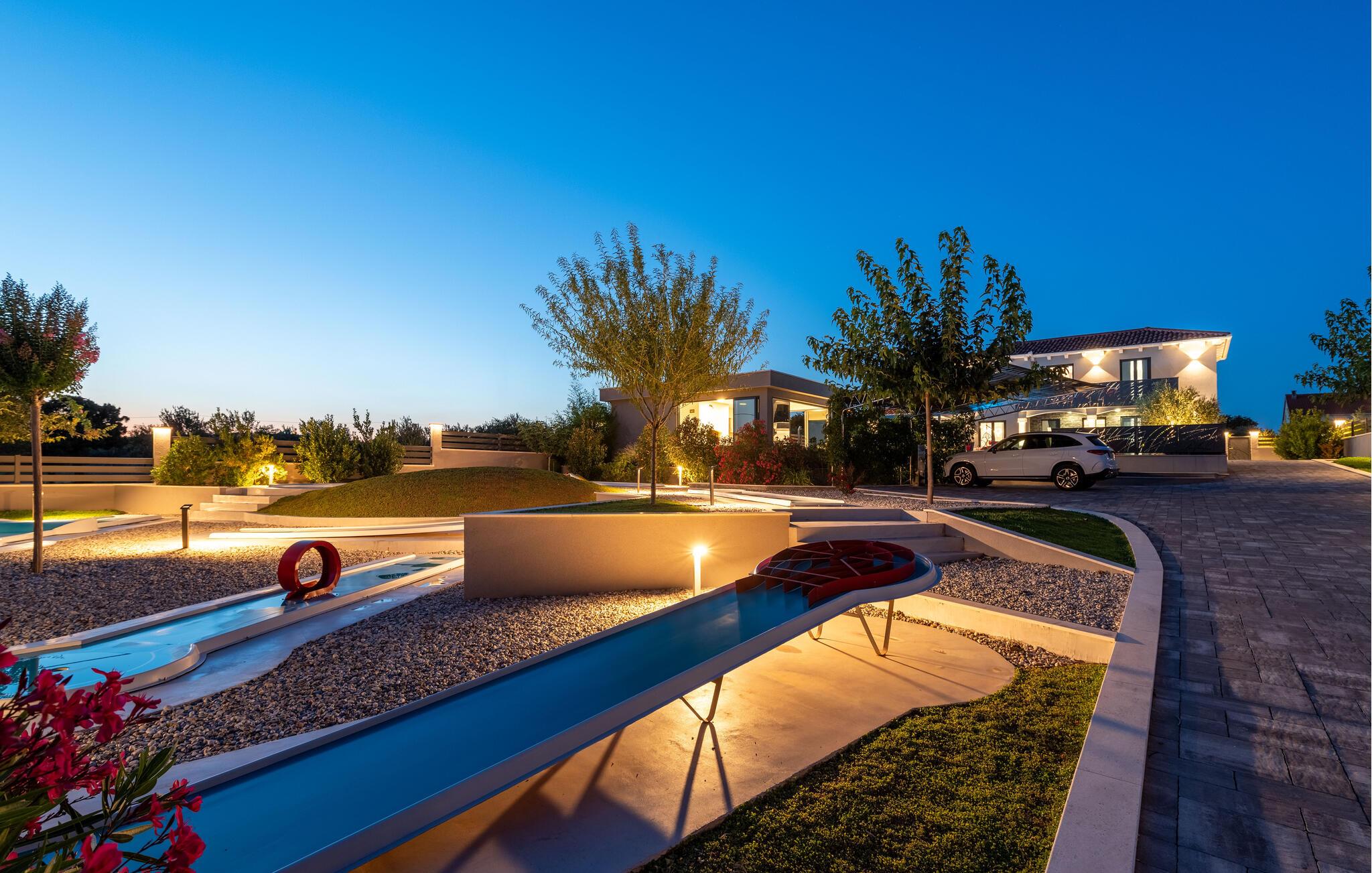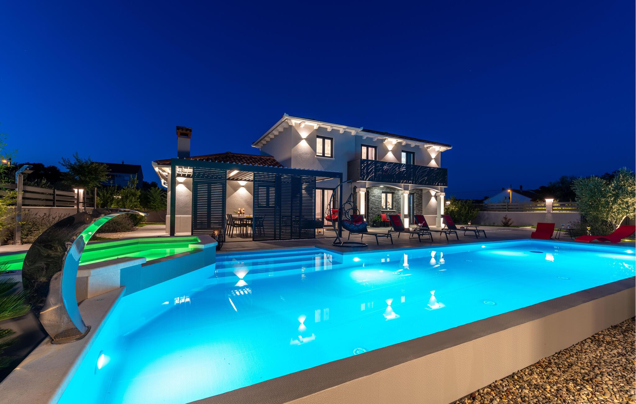 Står hvile, afslapning og en spændende ferie med dine kære højt på din ønskeliste? Så vil denne drømmeejendom fortrylle dig. Villa Casa Grigia ligger midt i en idyllisk beliggenhed tæt på kystbyen Biograd na Moru. Med sit mangfoldige underholdningstilbud, samt de maleriske omgivelser, er villaen utvivlsomt en helt unik ferievilla. Du vil nyde selv de varmeste sommerdage med at slappe af, da en vidunderlig forfriskende pool med hydromassage er centrum af ejendommen. Rundt om poolen er der liggestole, hvor du kan slappe af med en forfriskende drink. Hvis du kan lide at spille minigolf, er der en privat minigolfbane til din rådighed. Den separate 40m2 ejendom med grill, spiseplads og et poolbord er også tilgængelig for dig at samles med dine kære og tilbringe uforglemmelige aftener. Benyt lejligheden til at tilberede lækre måltider ved grillen. Når du kommer ind i villaens indre fra udendørsområdet, finder du en åben, smagfuldt indrettet opholdsstue med spisebord og fuldt udstyret køkken. Villaen kan rumme i alt 6 personer med 3 komfortable soveværelser. Et af soveværelserne ligger på første sal, mens 3 andre soveværelser ligger på anden sal. Hvert af de smarte møblerede værelser har sit eget moderne badeværelse, aircondition og tv. Du vil næsten ikke vente med at tilbringe din ferie på Villa Casa Grigia!Villa Casa Grigia ligger i en lille landsby kaldet Tinj, nær kystbyen Biograd na Moru. Den "hvide by ved havet" byder på smukke strande og bugter, talrige restauranter og taverner, hvor du kan nyde det fremragende dalmatiske køkken, samt Fun Park Mirnovec, hvis du ønsker yderligere aktiviteter for din familie. Placeringen af villaen giver et glimrende udgangspunkt for udflugter. Kystbyerne Zadar og Sibenik, hver kun en kort køretur væk, inviterer dig til at tage på en dagstur med deres rige historie og adskillige seværdigheder. Zadar er en historisk by og byder på en kombination af sightseeing, gastronomi og strand. Helt speciel er den gamle bydel som ligger på en halvø, adskilt fra den nye by. Velkendt er "Havorgelet" og den såkaldte "Hilsen til Solen"-pladsen, som ligger direkte på promenaden. Book den særlige Villa Casa Grigia og lad Dalmatien fortrylle dig!