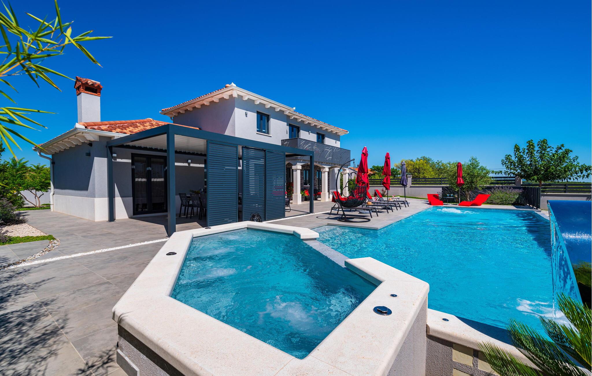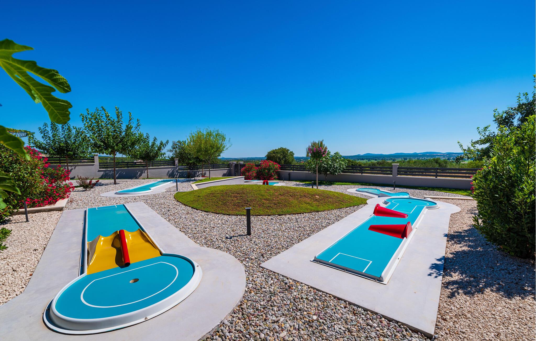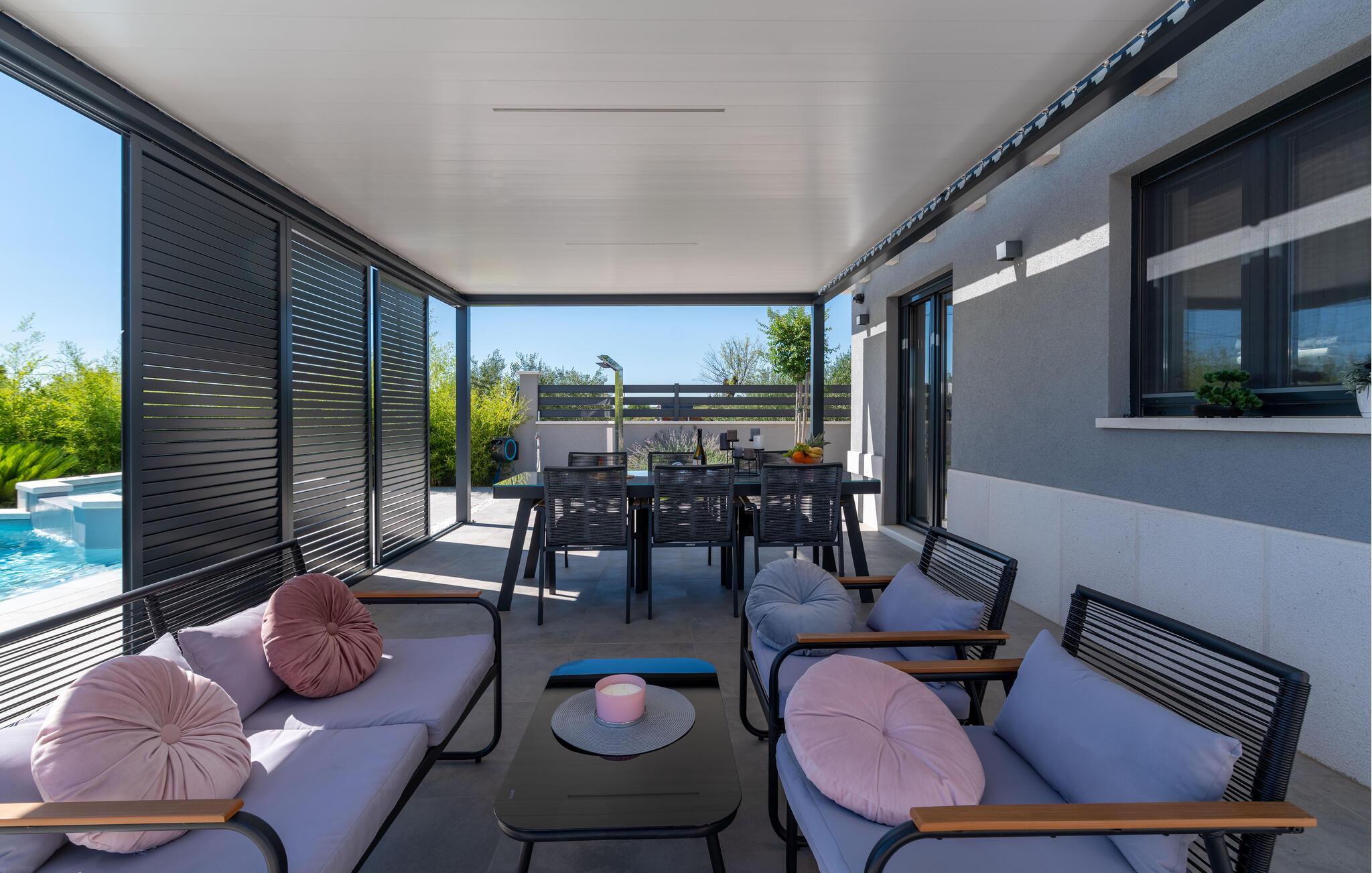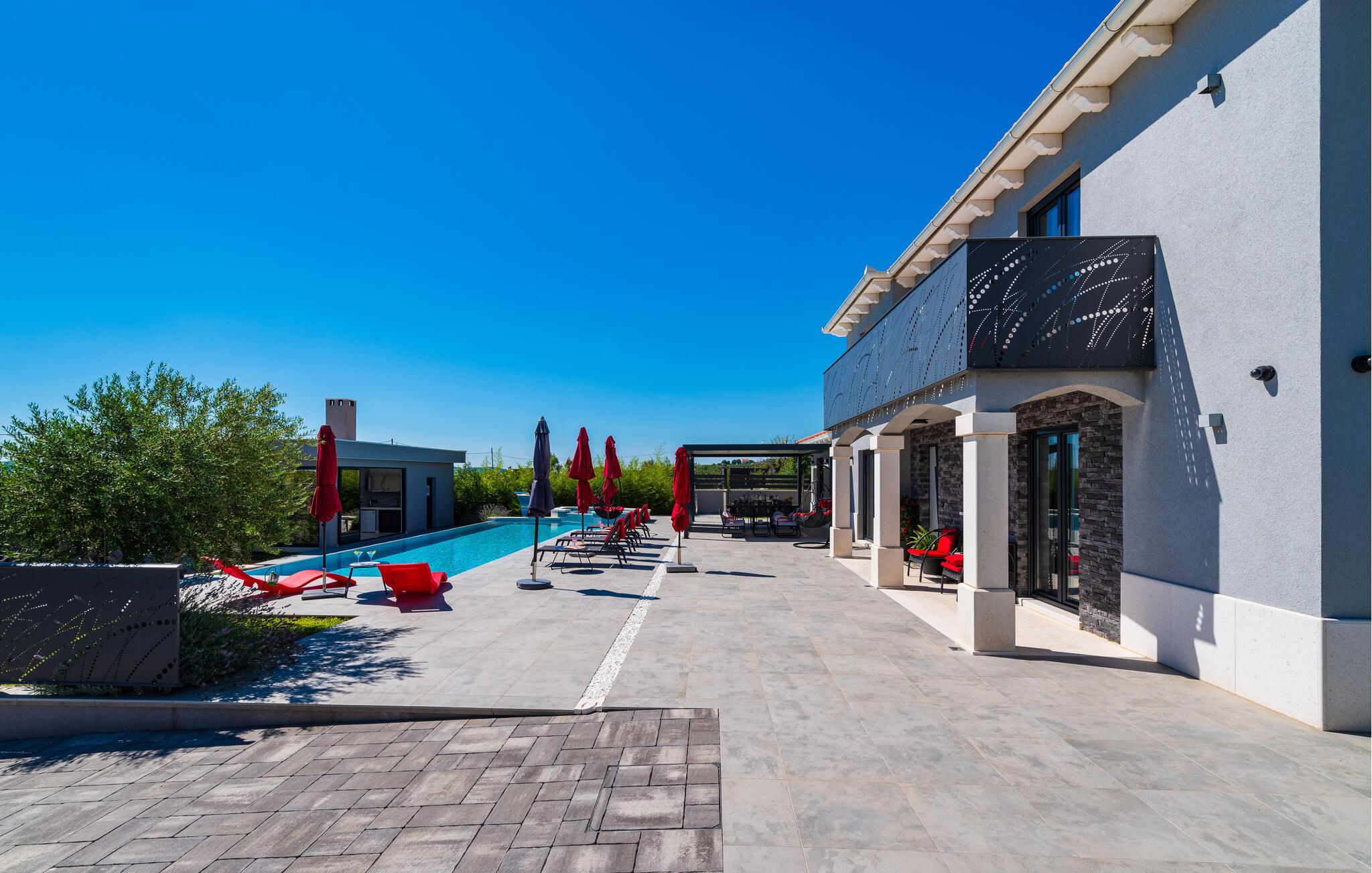 Står hvile, afslapning og en spændende ferie med dine kære højt på din ønskeliste? Så vil denne drømmeejendom fortrylle dig. Villa Casa Grigia ligger midt i en idyllisk beliggenhed tæt på kystbyen Biograd na Moru. Med sit mangfoldige underholdningstilbud, samt de maleriske omgivelser, er villaen utvivlsomt en helt unik ferievilla. Du vil nyde selv de varmeste sommerdage med at slappe af, da en vidunderlig forfriskende pool med hydromassage er centrum af ejendommen. Rundt om poolen er der liggestole, hvor du kan slappe af med en forfriskende drink. Hvis du kan lide at spille minigolf, er der en privat minigolfbane til din rådighed. Den separate 40m2 ejendom med grill, spiseplads og et poolbord er også tilgængelig for dig at samles med dine kære og tilbringe uforglemmelige aftener. Benyt lejligheden til at tilberede lækre måltider ved grillen. Når du kommer ind i villaens indre fra udendørsområdet, finder du en åben, smagfuldt indrettet opholdsstue med spisebord og fuldt udstyret køkken. Villaen kan rumme i alt 6 personer med 3 komfortable soveværelser. Et af soveværelserne ligger på første sal, mens 3 andre soveværelser ligger på anden sal. Hvert af de smarte møblerede værelser har sit eget moderne badeværelse, aircondition og tv. Du vil næsten ikke vente med at tilbringe din ferie på Villa Casa Grigia!Villa Casa Grigia ligger i en lille landsby kaldet Tinj, nær kystbyen Biograd na Moru. Den "hvide by ved havet" byder på smukke strande og bugter, talrige restauranter og taverner, hvor du kan nyde det fremragende dalmatiske køkken, samt Fun Park Mirnovec, hvis du ønsker yderligere aktiviteter for din familie. Placeringen af villaen giver et glimrende udgangspunkt for udflugter. Kystbyerne Zadar og Sibenik, hver kun en kort køretur væk, inviterer dig til at tage på en dagstur med deres rige historie og adskillige seværdigheder. Zadar er en historisk by og byder på en kombination af sightseeing, gastronomi og strand. Helt speciel er den gamle bydel som ligger på en halvø, adskilt fra den nye by. Velkendt er "Havorgelet" og den såkaldte "Hilsen til Solen"-pladsen, som ligger direkte på promenaden. Book den særlige Villa Casa Grigia og lad Dalmatien fortrylle dig!