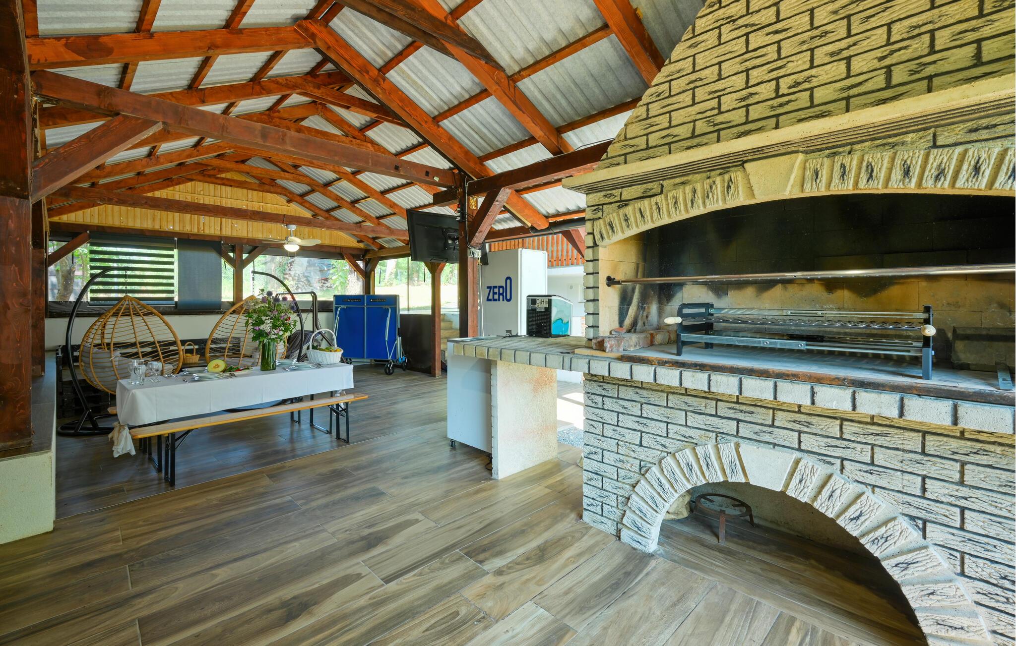 Tilbring en afslappende ferie i dette charmerende feriehus med pool og spabad. I finder hurtigt fred og ro i dette hyggelige hus. Det moderne trælook, de indbydende sofaer og pejsen skaber en afslappende atmosfære, hvor I kan genoplade batterierne. Hyg jer sammen, mens I lytter til musik eller ser tv, og tryl lækre måltider frem i det praktiske køkken. Tag en forfriskende dukkert i poolen om morgenen, eller slap af i spabadet om eftermiddagen. Nyd roen i den grønne have med en kølig drink, inden I samles til grillfest og afslutter dagen med et glas vin. Udforsk de bølgende bakker og de vide marker omkring Curlovac på en vandretur eller en afslappende cykeltur gennem naturen. Besøg lokale gårde og prøv friske, hjemmelavede specialiteter fra Bjelovar-regionen. Oplev den rolige side af Kroatien med autentiske landsbyer, traditionelle markeder og varm gæstfrihed. Tag en dagstur til søen eller kysten, og nyd det klare vand og den smukke natur.