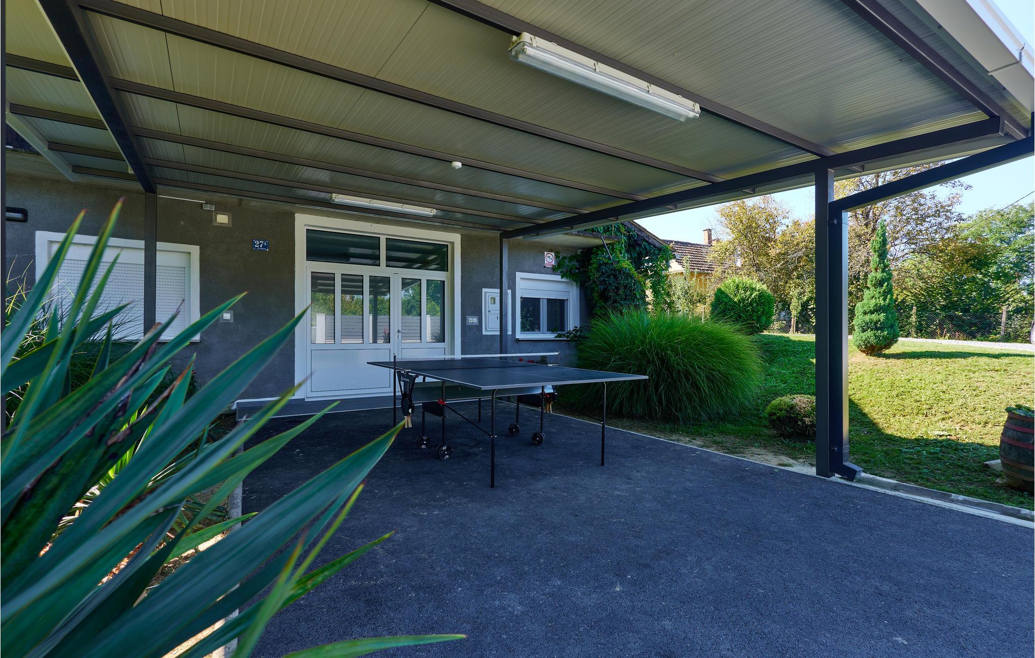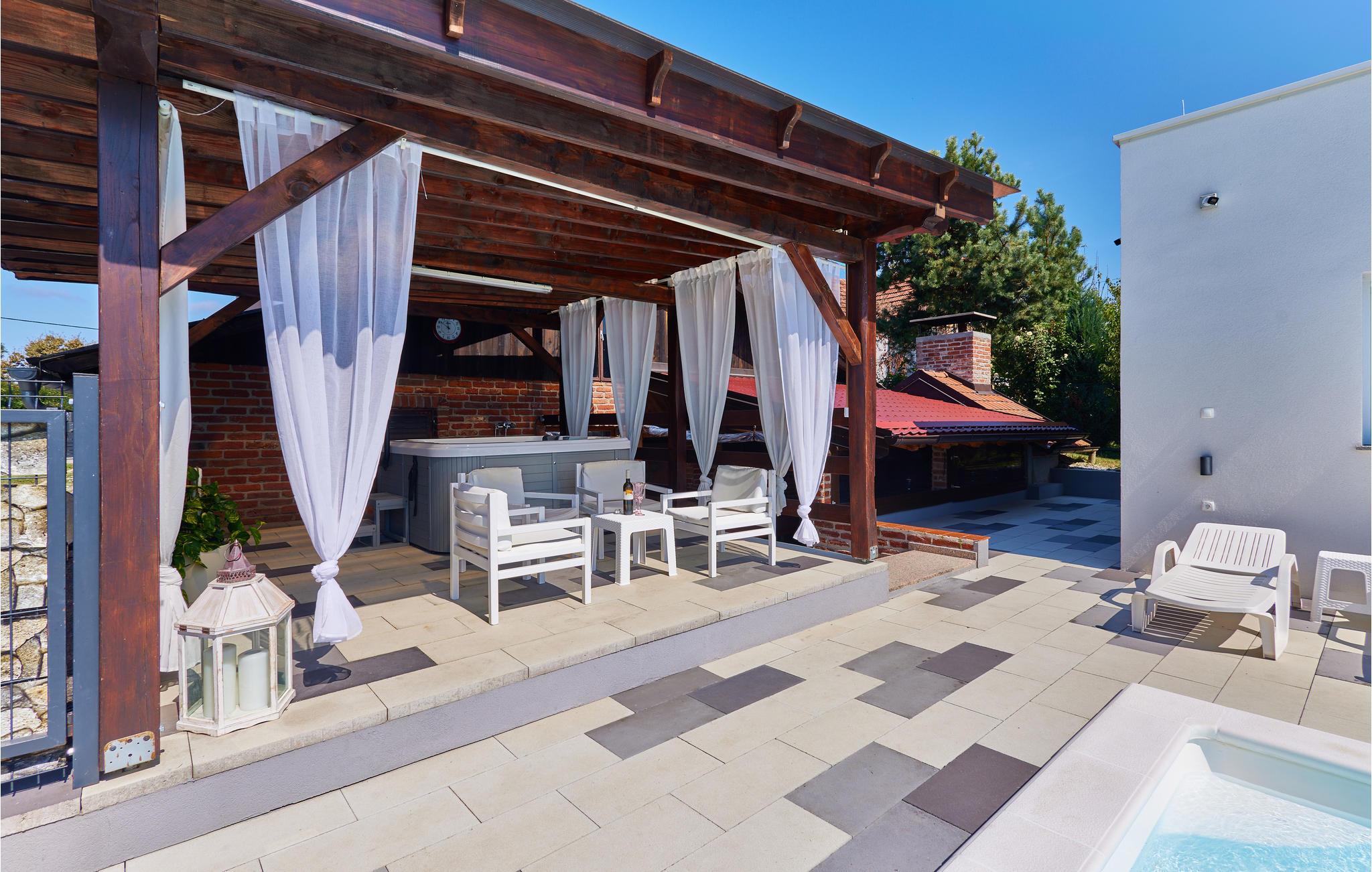 Hold en dejlig ferie i dette rummelige feriehus, som ligger i en smuk beliggenhed og er det optimale sted for en ferie med børn. Så snart I træder ind, vil I blive charmeret af den nyrustikke indretning, der gør huset så indbydende. Glæd jer til familiedueller ved poolbordet og skøn afslapning i hotellets sauna. Tilbring skønne timer udendørs, udendørsområdet byder på aktiviteter for store og små familiemedlemmer. Lange solbade, en god bog i liggestolen og friske dukkerter i poolen får alle tanker om hektisk hverdag til at forsvinde, måltider sammen under åben himmel runder ferieoplevelsen af.