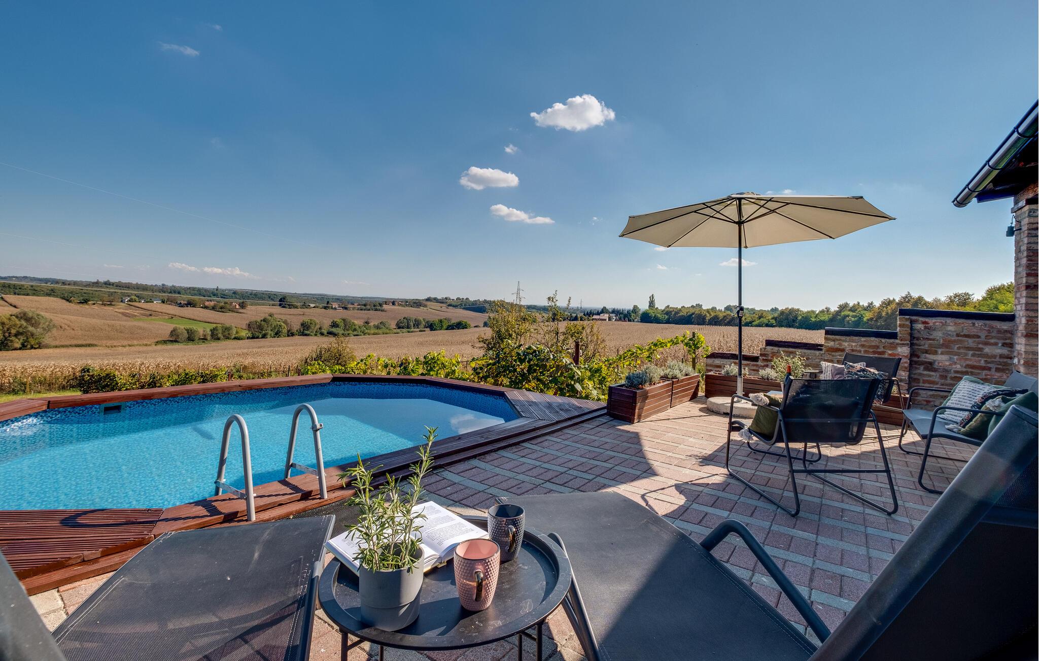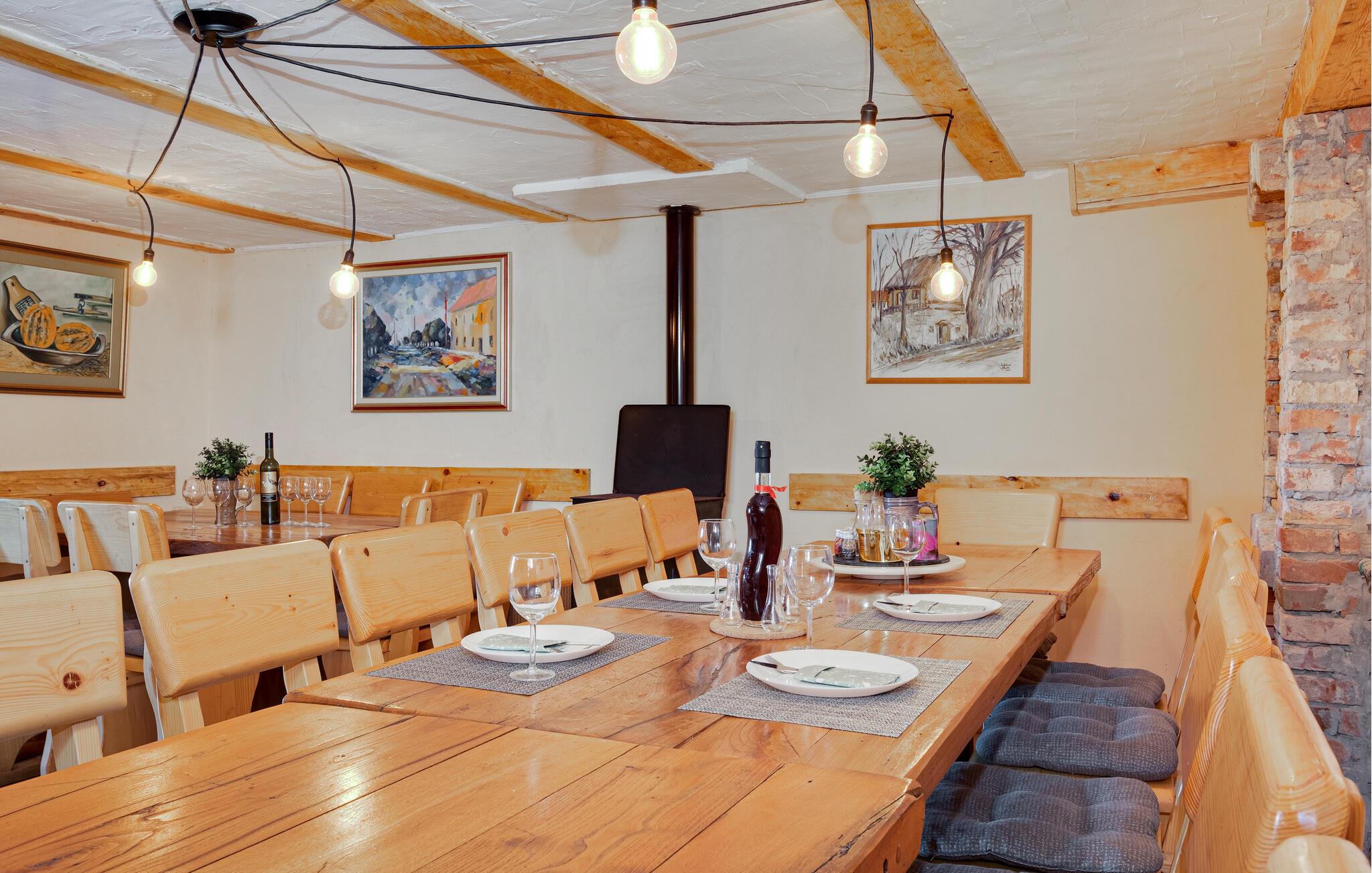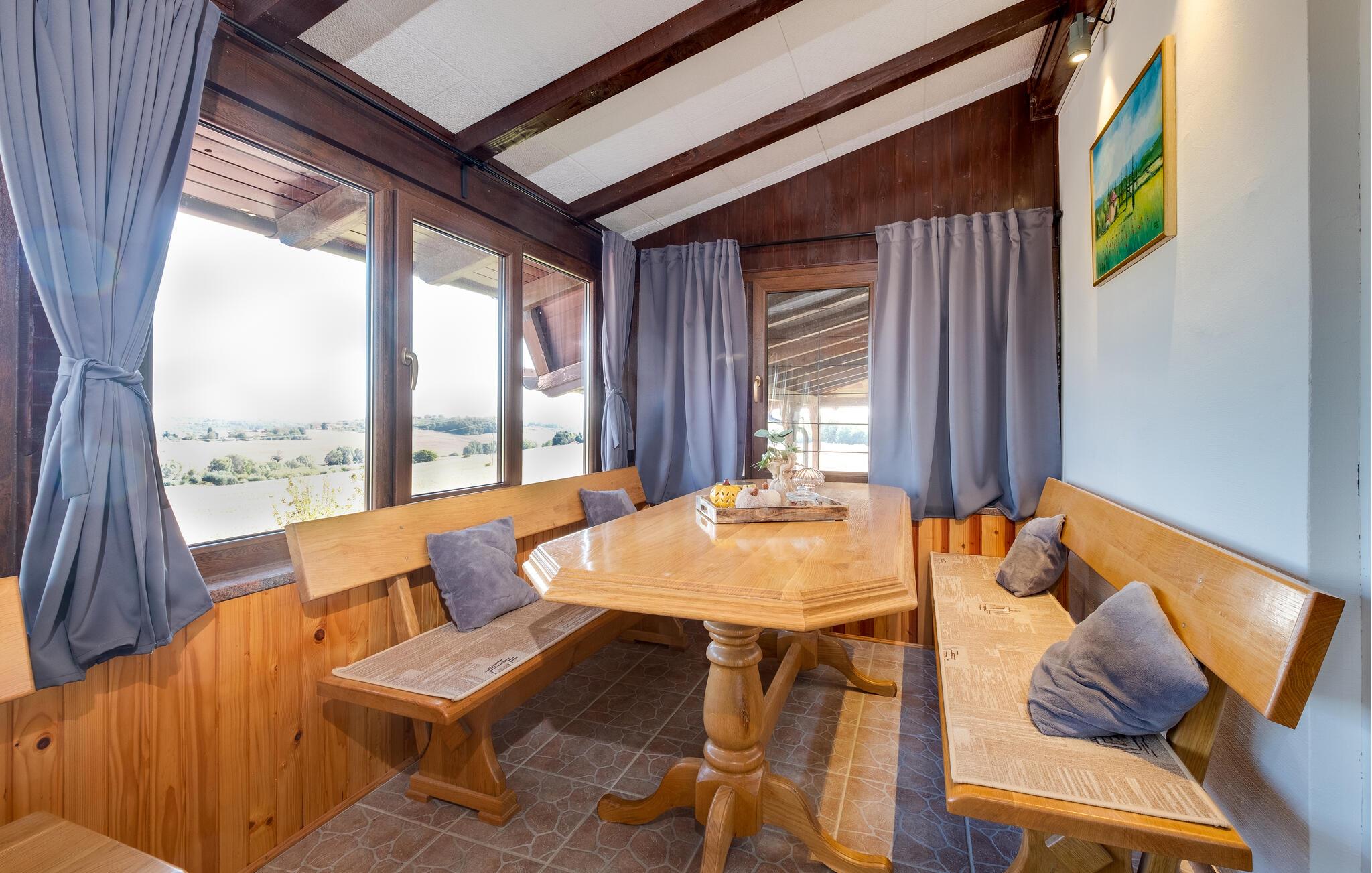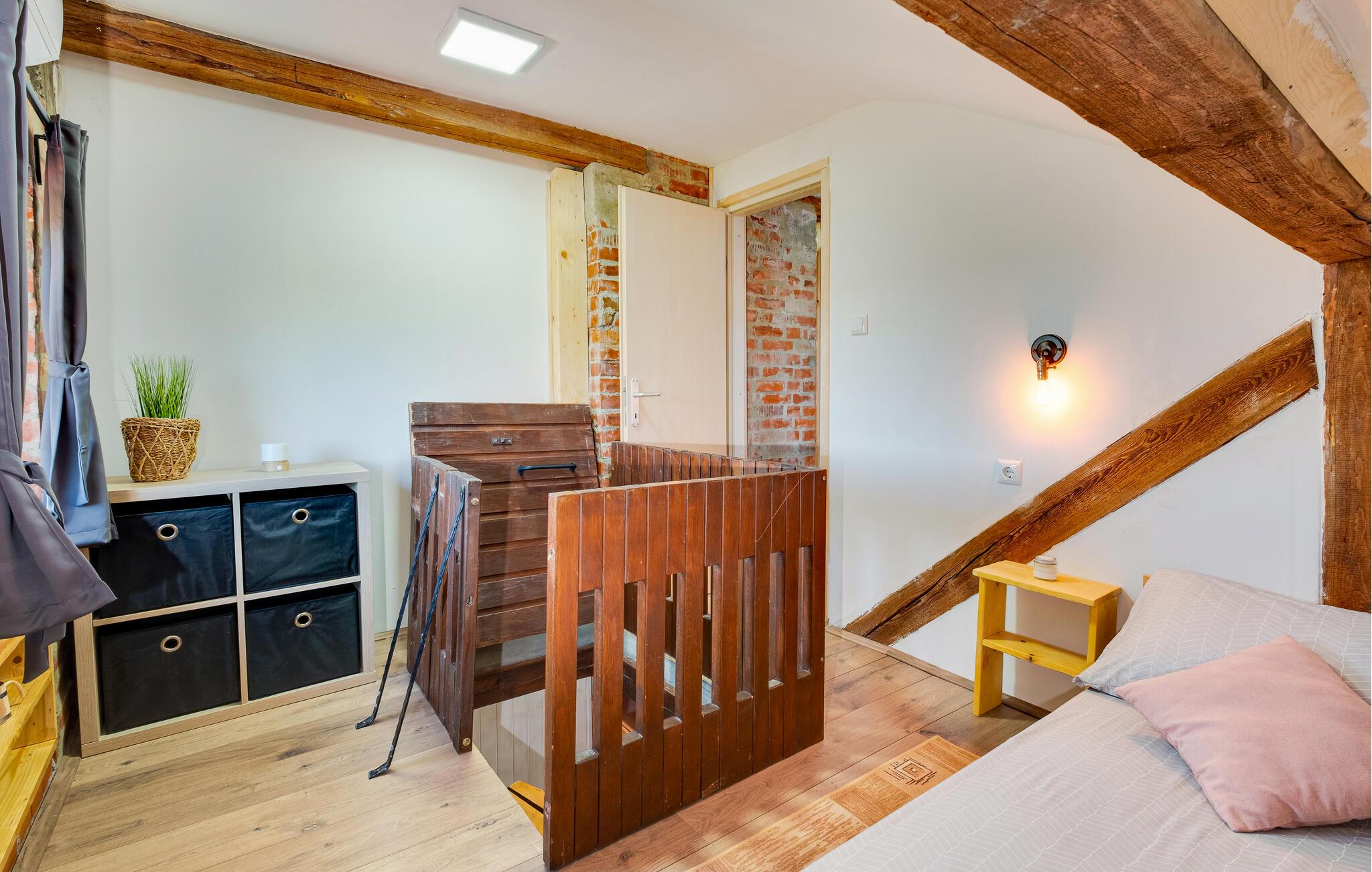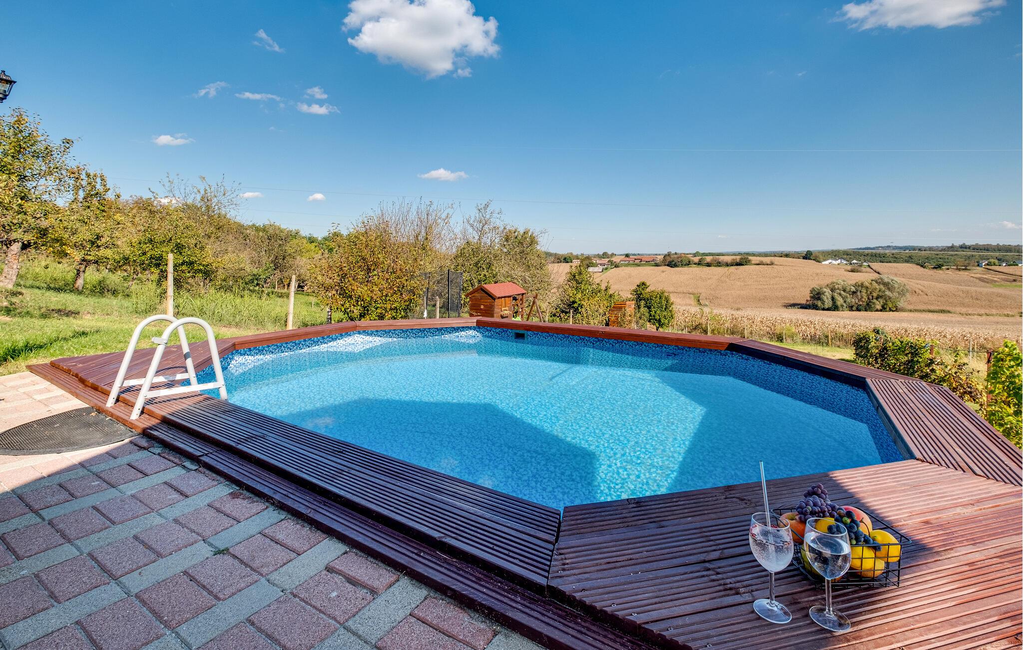 Slap af i dette komfortable og skønne hus med jacuzzi, pool og udsigt over landskabet. Dette unikke feriehus kombinerer moderne komfort med rustik charme. Et rummeligt værelse til hele familien eller venner venter jer på tre etager, ideelt til fælles oplevelser. De stilfulde møbler, kombineret med traditionelt træ og varme accenter, skaber en hyggelig atmosfære for jer. Nyd spabadet eller poolen med en betagende panoramaudsigt over den omkringliggende natur. En stor udendørs grill lægger op til hyggelige aftener. Se børnene rende rundt og lege i den store have og nyd den vellykkede familietid i dette smukke hus. Kapela er det perfekte udgangspunkt for at opleve det maleriske landskab omkring Bjelovar. De rolige omgivelser lover jer adskillige vandre- og cykelstier gennem idylliske skove og bølgende bakker. Friluftsmennesker vil få noget for pengene her. Tag på udflugter til historiske steder eller besøg regionens charmerende landsbyer. I nærheden finder I også små restauranter, der serverer lokale specialiteter. For de mere eventyrlystne er der fiskeri, ridning og udforskning af den uberørte natur.