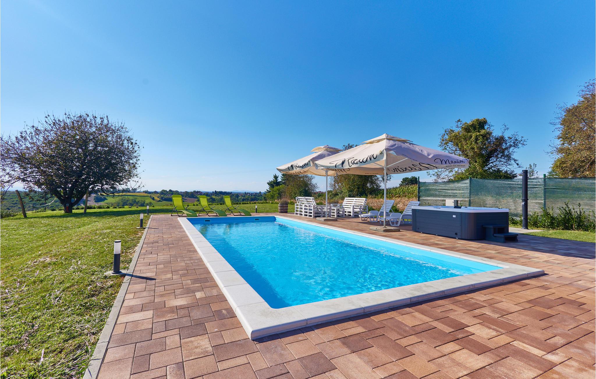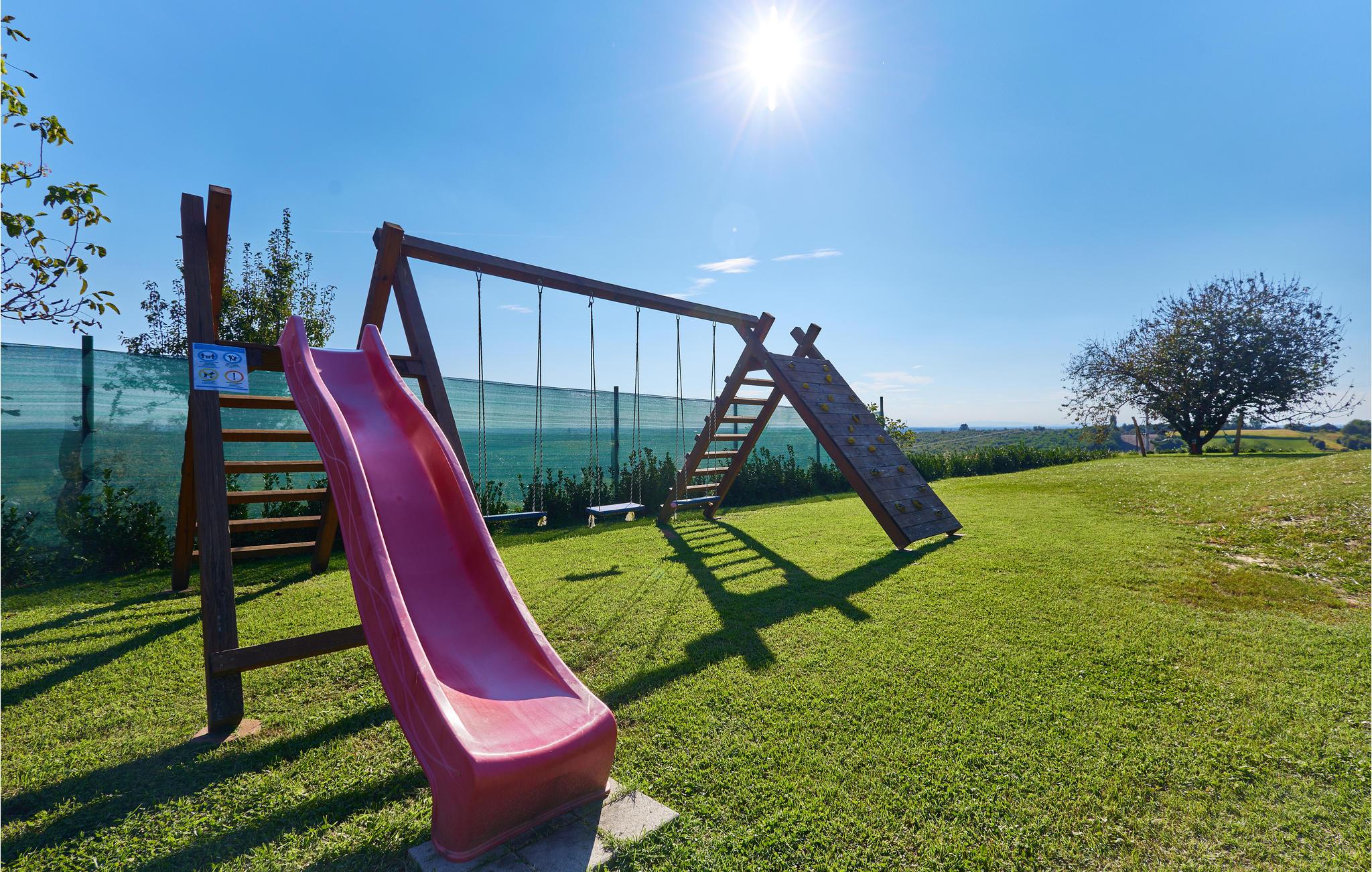 Glæd jer til en afslappende ferie på landet. Dette skønne feriehus med moderne og rustikke elementer byder på dejlige rammer for at slappe af og tilberede lækre måltider på murstensgrillen. Haven er husets højdepunkt, for her kan man tilbringe mange timer uden at kede sig. Børnene kan boltre sig og lege på de mange legeredskaber, mens I slapper af med en kølig drink i spabadet og kigger ud over landskabet.