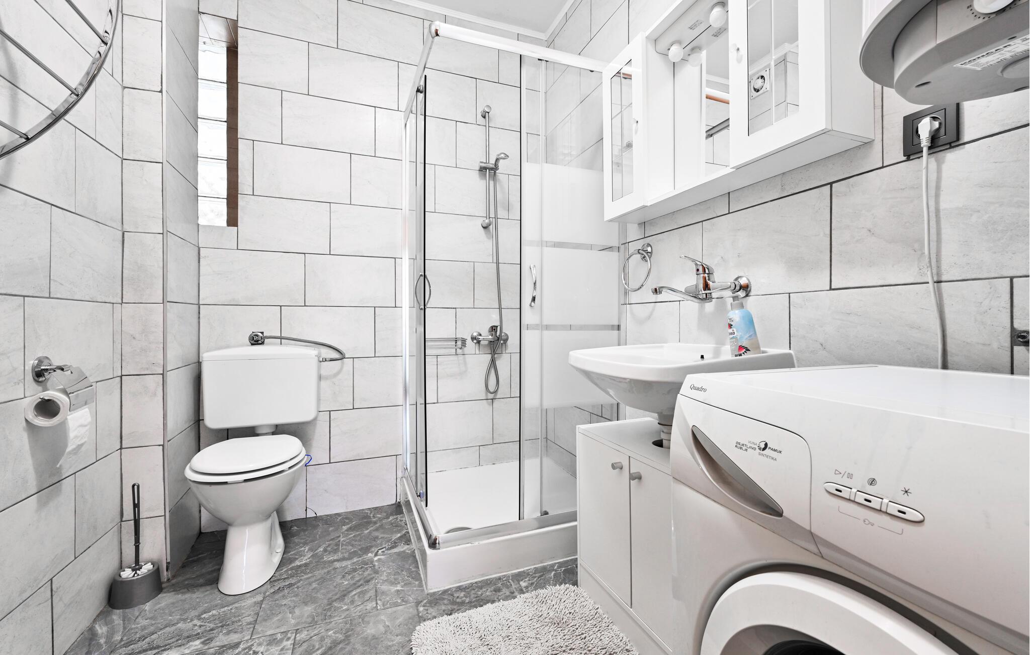 Badeværelse (nr. 1) - WC. Varmt og koldt vand. Bruser