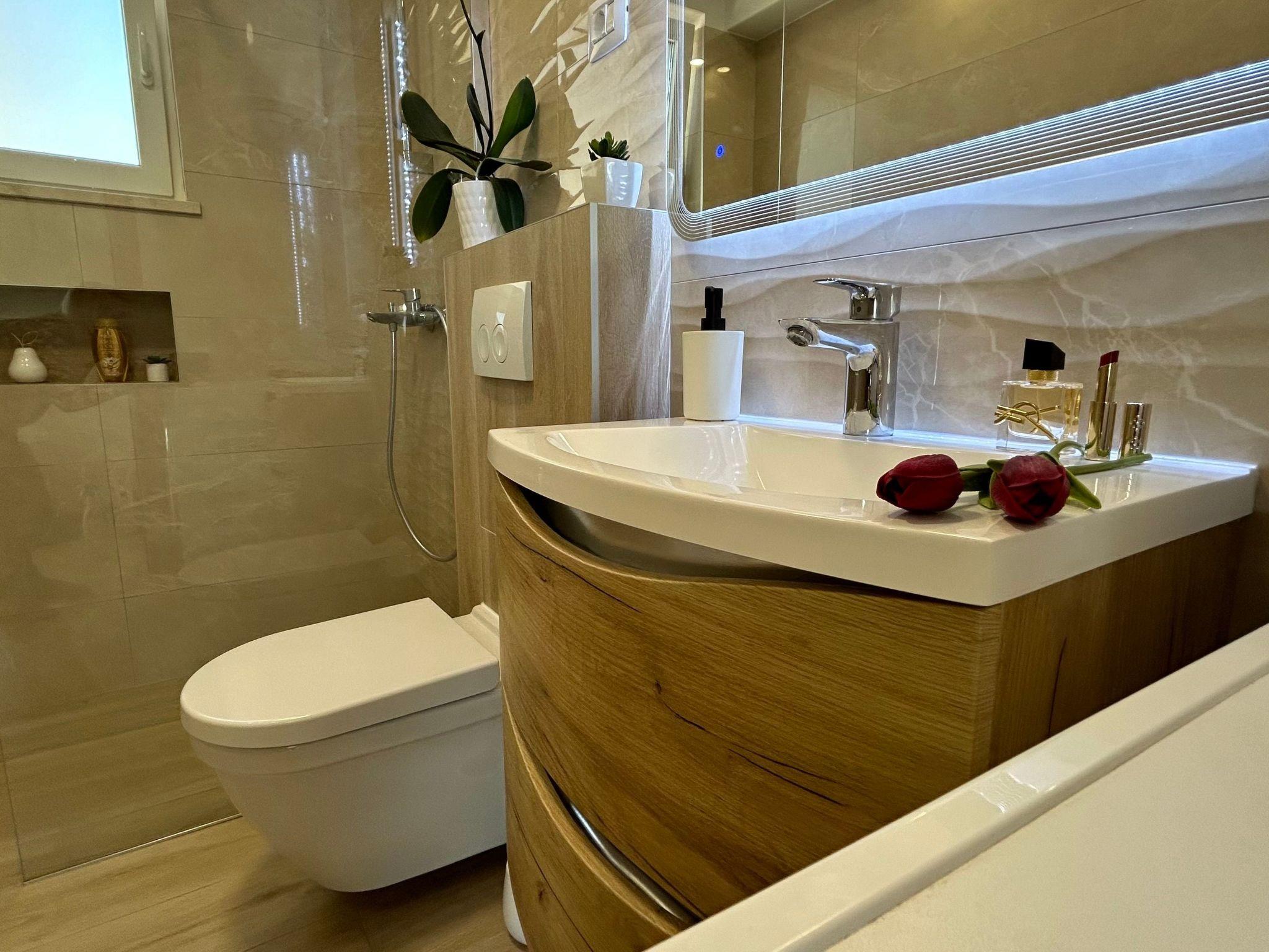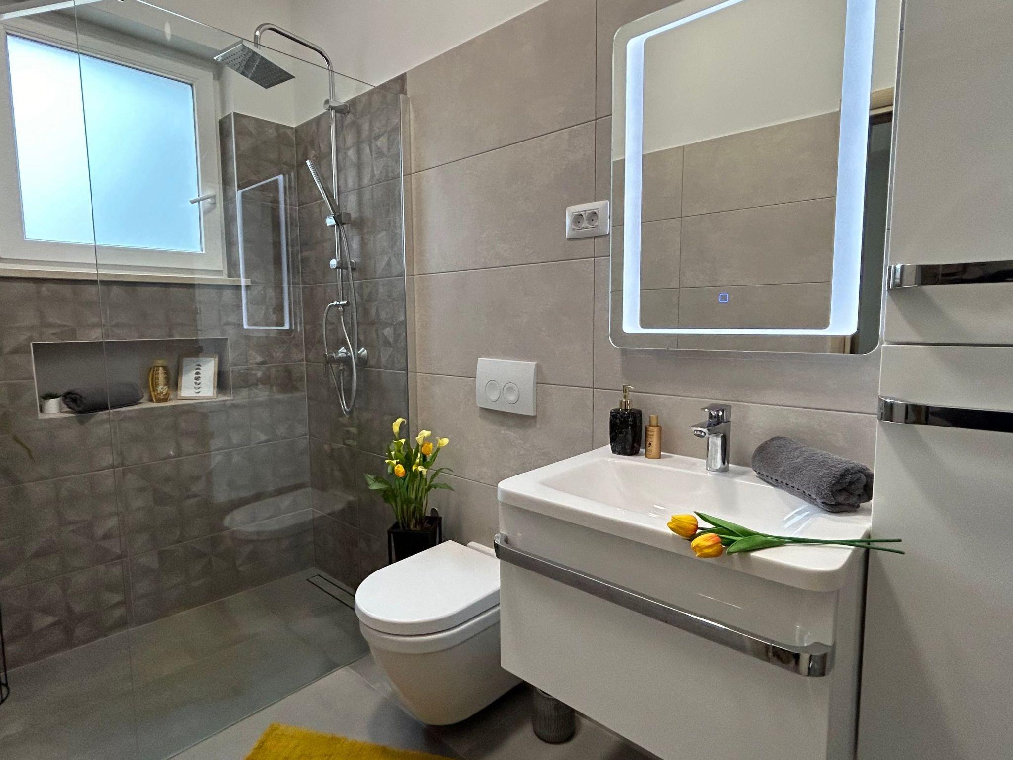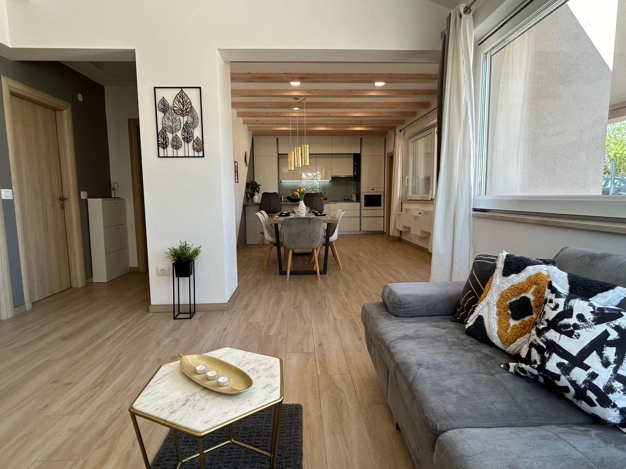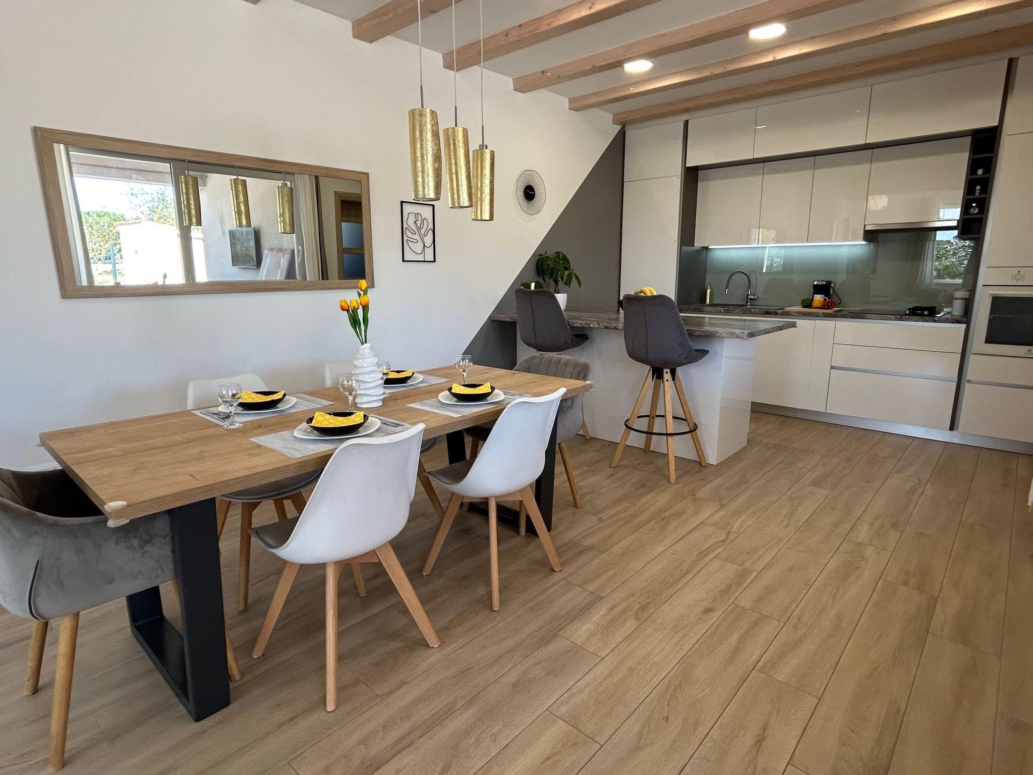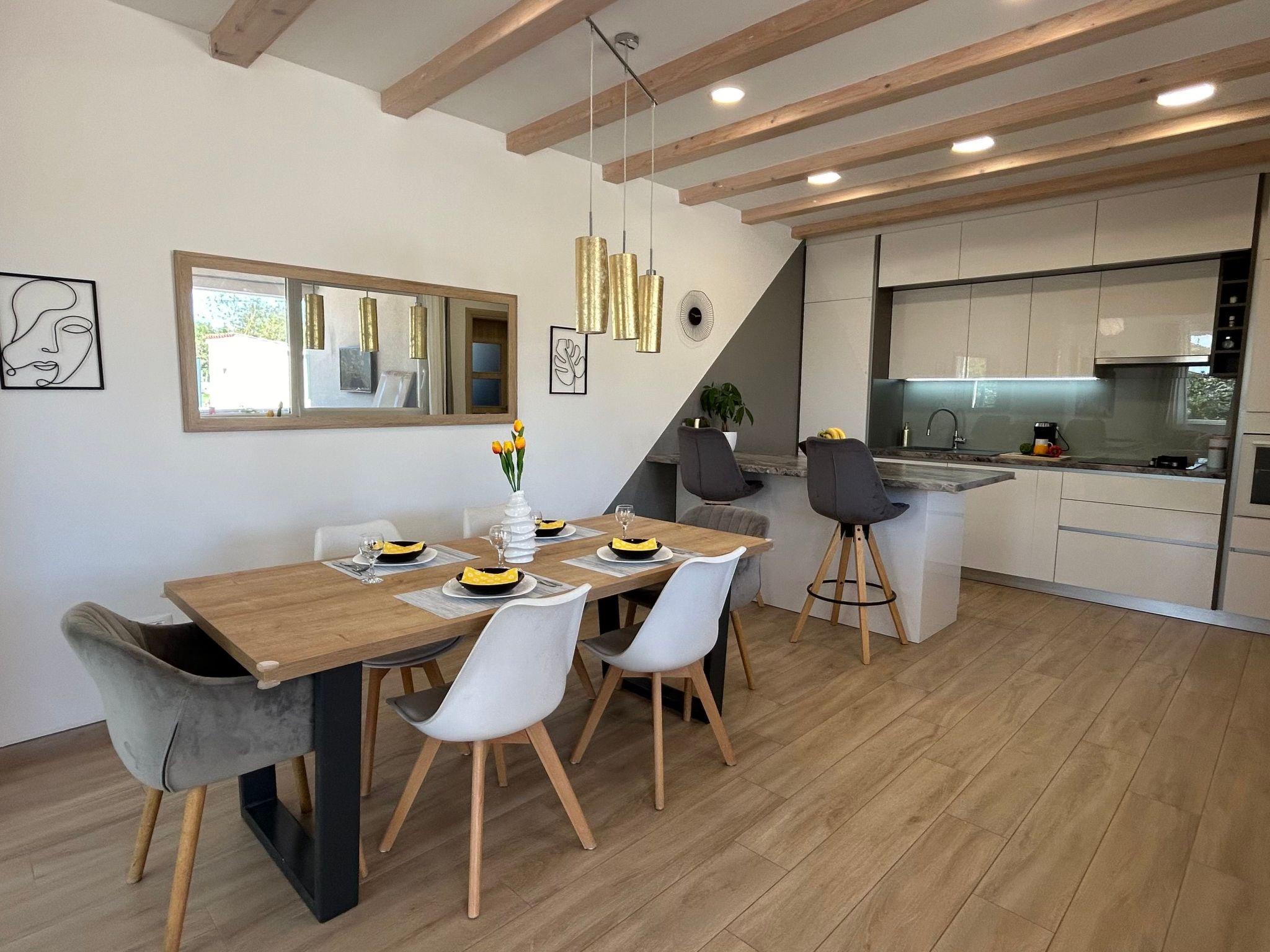 The holiday house Diva with a surface of 89 m2 it is ideal for a couples and a families that want to spend their vacation in our lovely Istria and relax. The house consists of 2 bedrooms and 2 bathrooms, living, dining room and a kitchen with an exit to a lovely terrace where you will enjoy mornings and evenings with a view to the nice swimming pool. The garden and a pool are private and you have also on a disposal a grill. There are also sun loungers and sun shades on a disposal. The parking place is in front also private. Give a chance and come at out lovely holiday house Diva in the heart of Istrian peninsula. The swimming pool will be finished unil June 01st!!