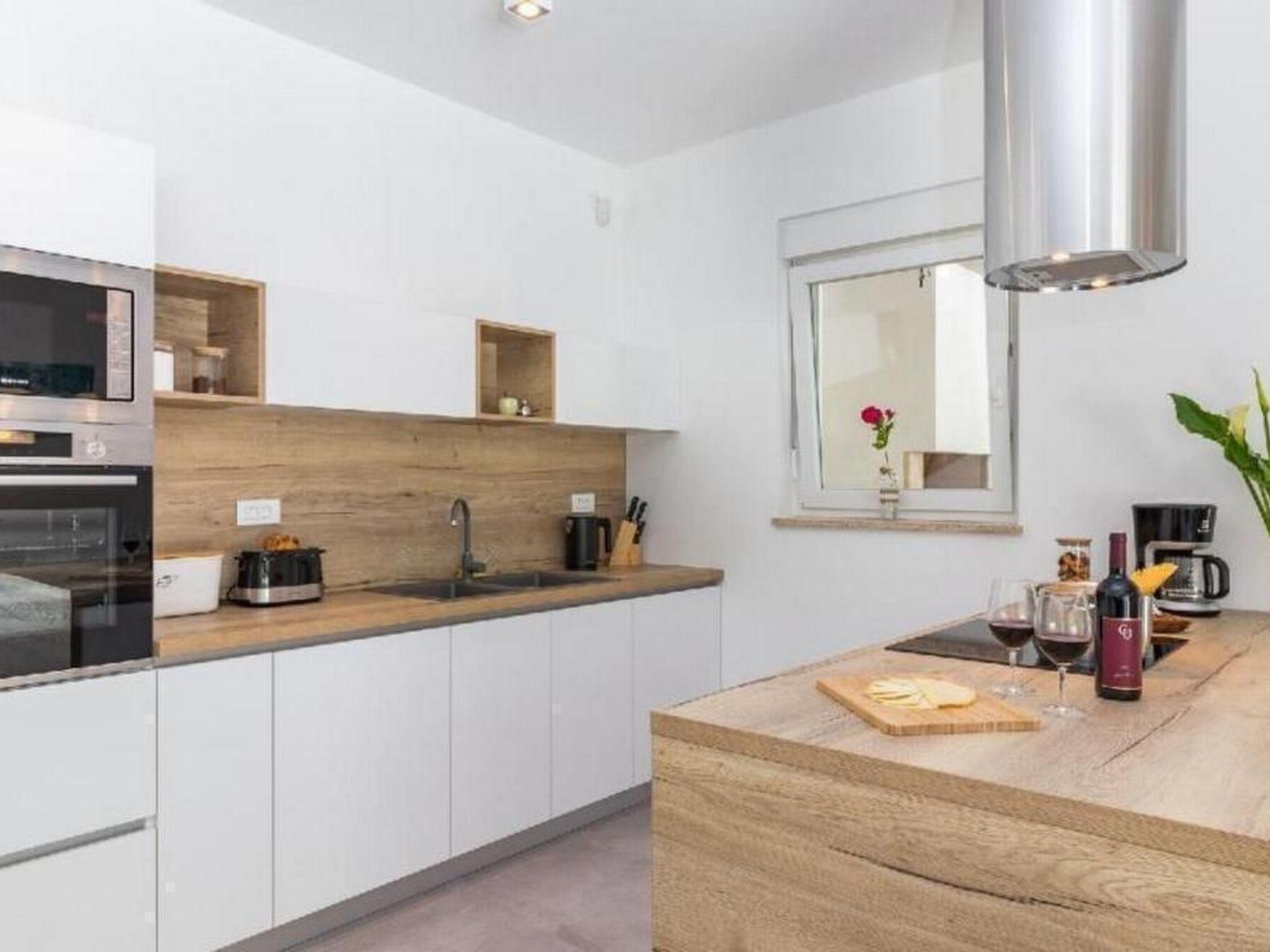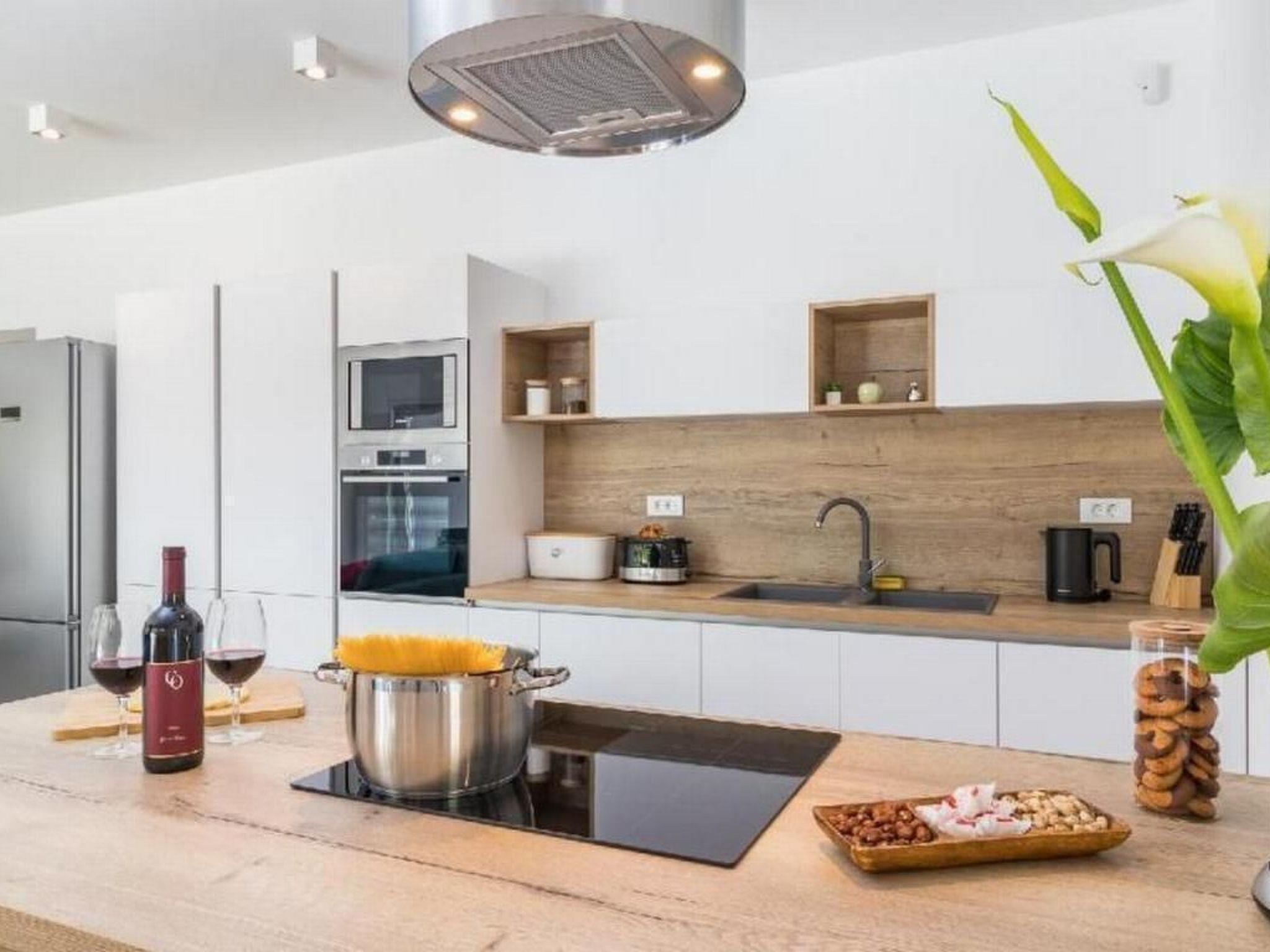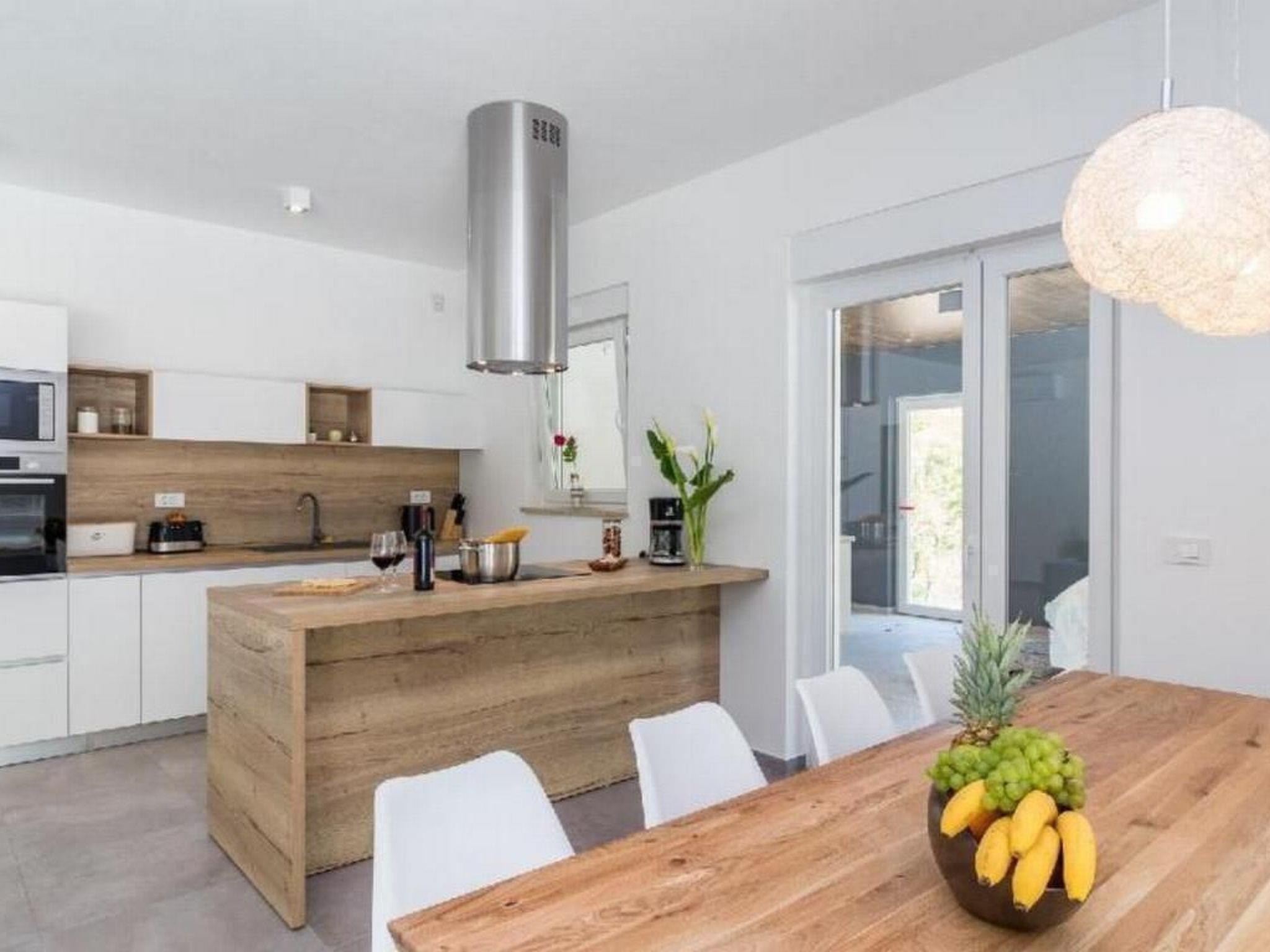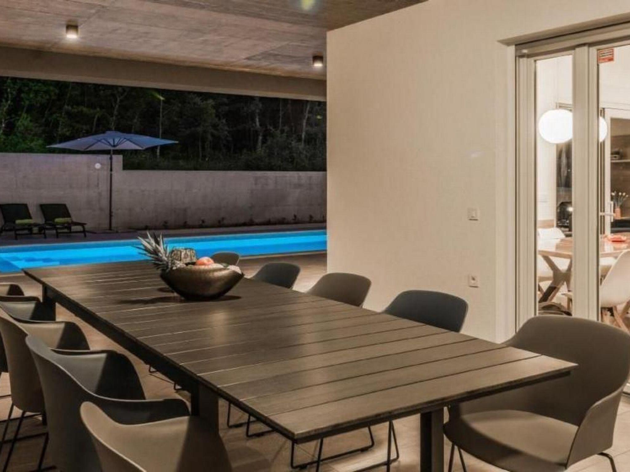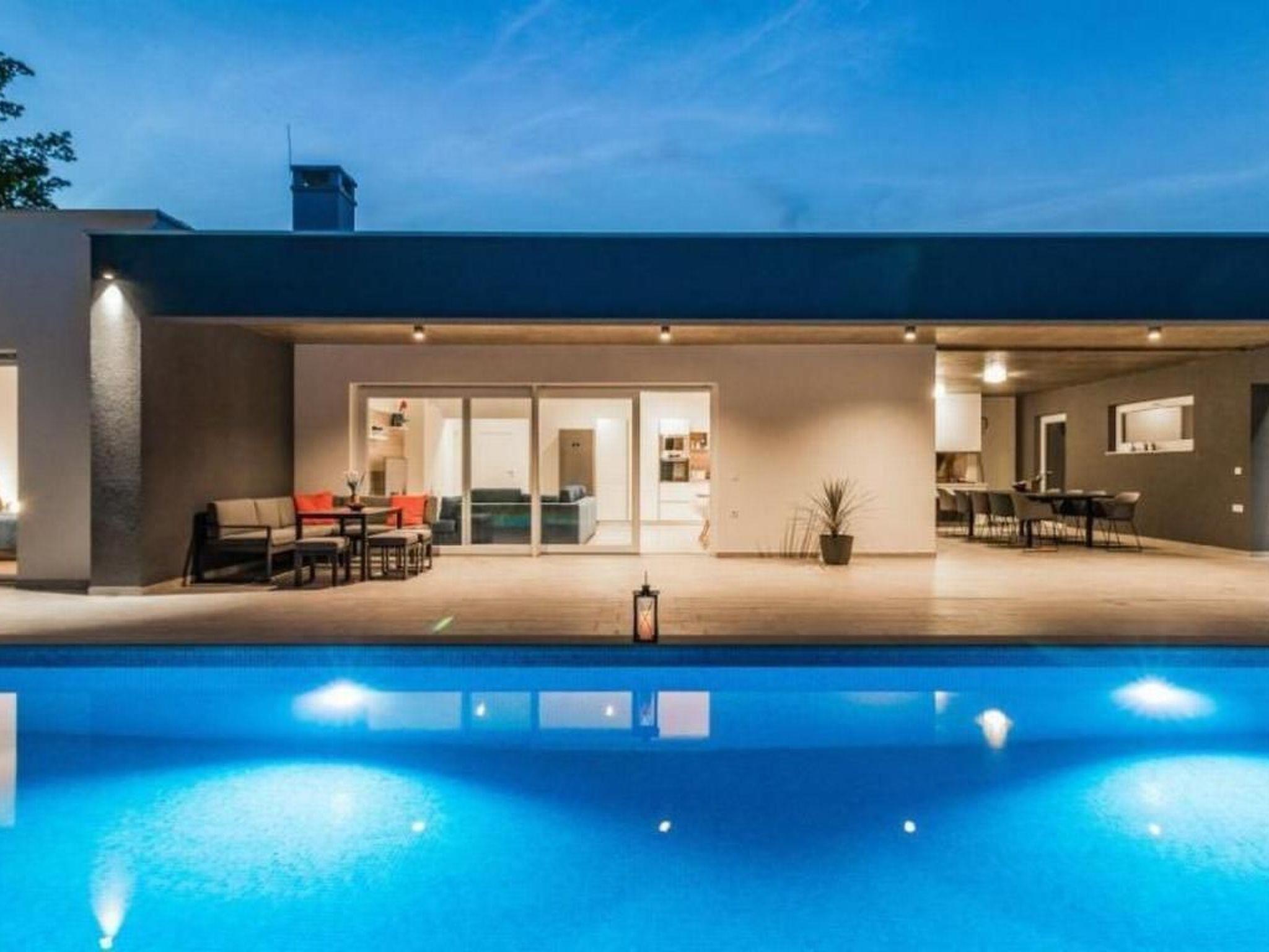 Vila SANIVARO is a luxury and modern house build in 2019, furnished with love, enthusiasm and care about the details, which brings feel of home to her guests. Location of this luxury villa is at the end of the village, in a quite and untouched part of the nature at the beginning of beautiful oak forest, surrounded with wild flowers.This villa ensures unrepeatable experience of peace and privacy away from everyday busy way of life. Natural scent of the forest and meadows is something that is unforgettable in this unrepeatable beauty. Spectacular night view on the sky full of stars, away of everyday noise and light pollution is another „small“ thing that enriches romantic moments of your stay. Interior of the villa offers luxury and spacious living room with modern big kitchen and dining place, which is fulfilled by daily light coming through big balcony door. From the daily part of the house there's a view to the pool and sun terrace which allows to the parents to watch their little ones while enjoying in it. Villa has 4 comfort and fully A/C rooms at the same level as other part of the house. Rooms are equipped with double beds, and in case of need, the bed can be divided in two rooms. On request there is a kinder bed too. Wi-Fi is available in the whole house. The whole living space is situated on the same level, and is adapted to movement of disabled persons in wheel chair.