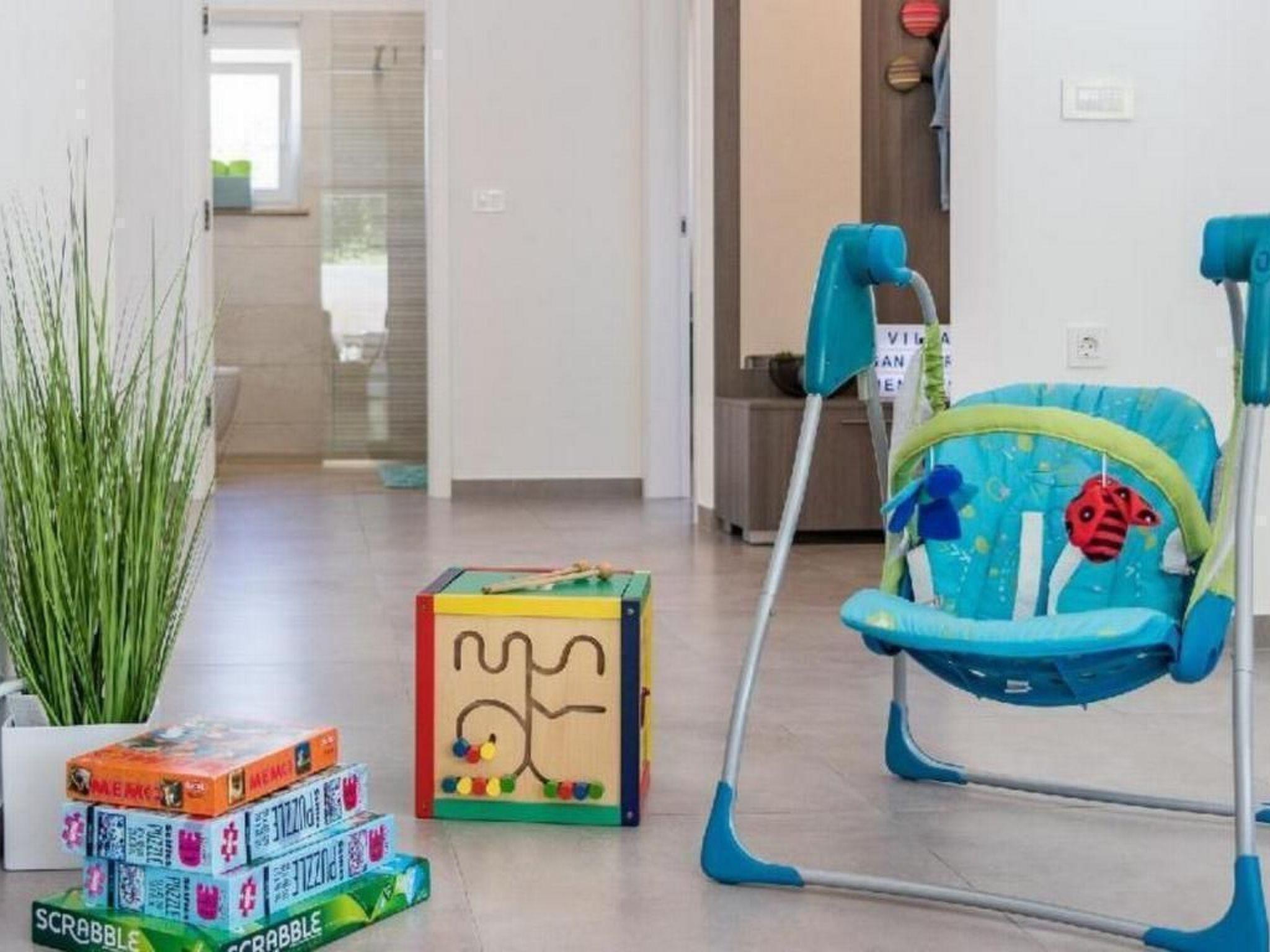 Villa is full of sport contents in open space where beside the pool your children can enjoy on the swing, slide or trampolin. In case you are more fan of indoor sports, there is a big room with table tennis, table football, darts or fitness (multifunctional excercise machine and orbitrek). This villa is ideal starting point for active vacation in the nature, because there is a direct entrance to the 40km bike route, and quiet pathways are ideal for jogging or long walks. Vila SANIVARO is only 20 min drive by car to the beautiful Adriatic sea beaches in all directions – Pula, Bale, Duga Uvala, Medulin... At the same time from vila you can departure to the daily excursions to the famous touristic destinations as Pula, Rovinj, Porec, Opatija, National Park Brijuni, or to spend an active day in a fun water park as Aquacolors (Porec), Istralandia (Novigrad) or Glavani adrenaline park (Barban).