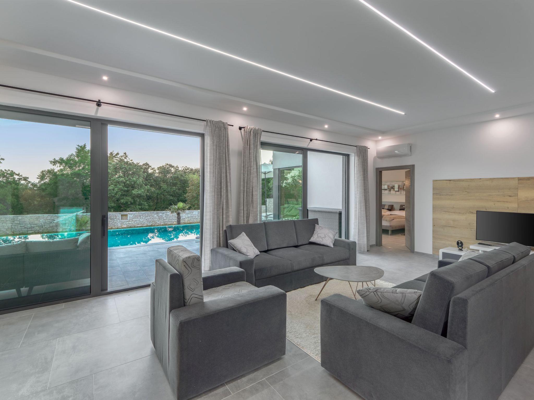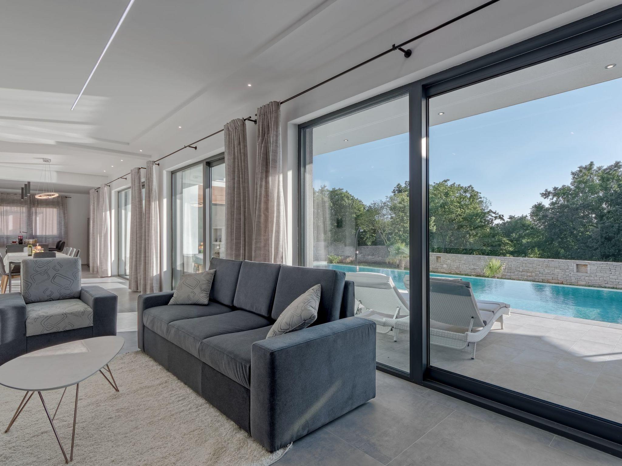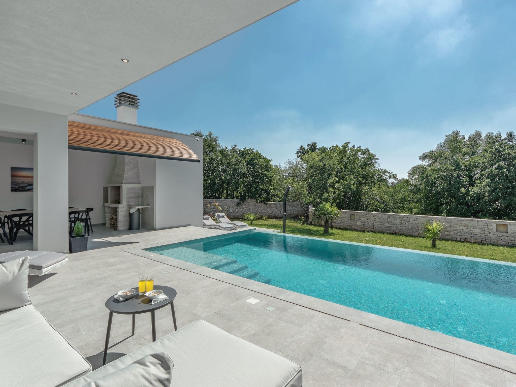 This stylish villa with a large infinity pool is situated on a wonderful plot in a quiet location on the outskirts of the Istrian village of Stokovci, municipality of Svetvincenat.