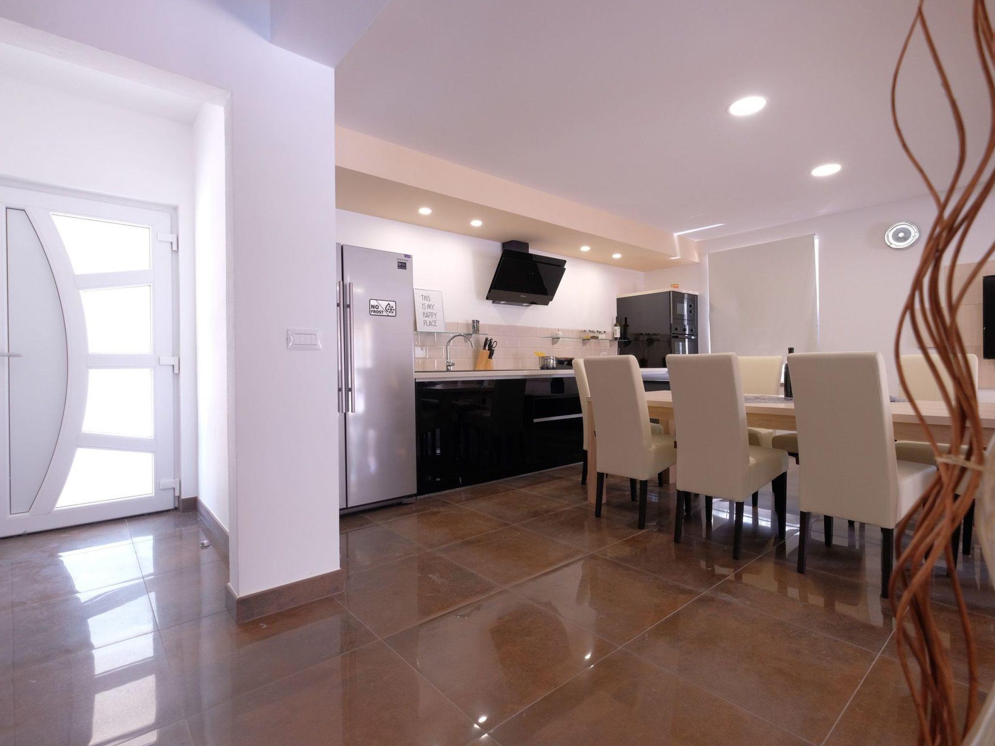 The two-storey villa features four bedrooms and three bathrooms. It can acommodate up to ten persons: the four bedrooms have a double bed each and two more persons can sleep on the sofa bed in the living area. Additional Supplements: Oven, Stove, Coffee Maker, Dishwasher, Refrigerator, Freezer, Gas, Toaster, Kettle, Cooking Table, Patio / Terrace / BBQ Grill, Shower, Smoking Allowed, Private Garden, Bathroom, Toilets , Bed, Bedroom, property, living room, sitting area, dining room, living room, electricity, water.