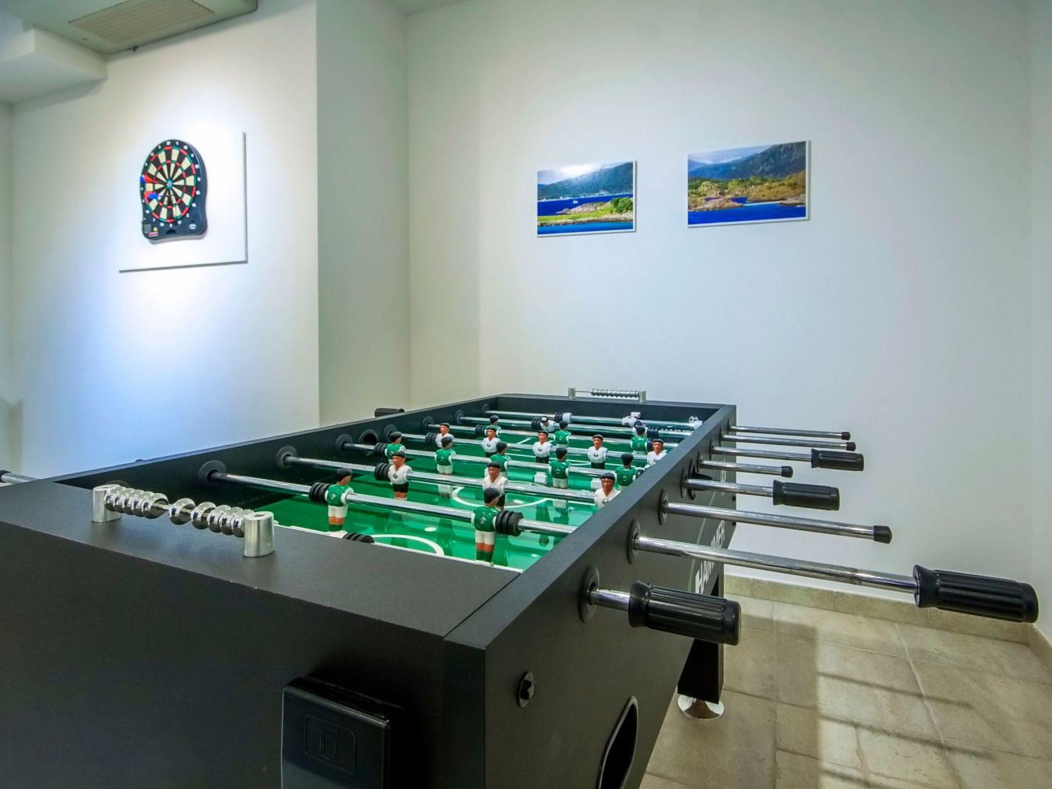 Inside, the house boasts a thoughtful array of amenities to ensure a comfortable and convenient stay. With four bedrooms and five bathrooms, guests can enjoy privacy and comfort. The house is equipped with air conditioning throughout, ensuring a pleasant environment regardless of the season. Entertainment is readily available with a smart TV, a billiards table, a games console, table football, and table tennis, catering to a variety of interests and ages. For added convenience, the house features underfloor heating in parts, a dishwasher, and an electric kettle, making everyday tasks effortless.