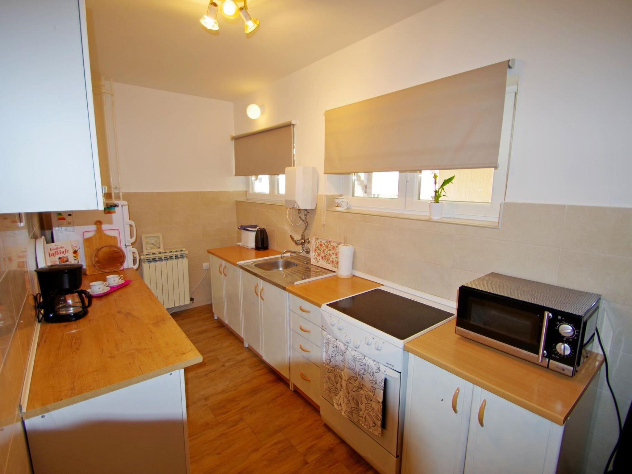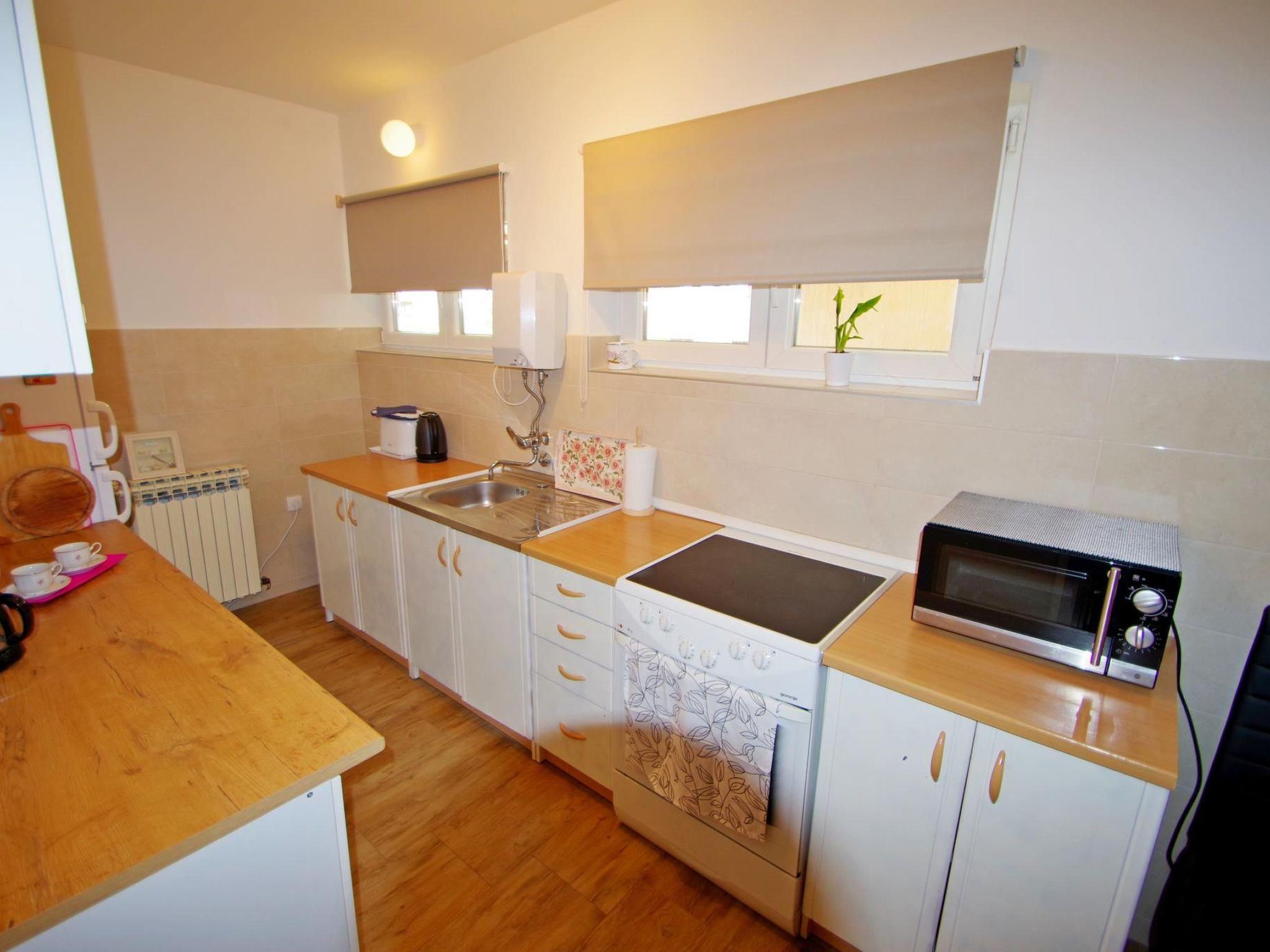 The apartment is situated in Valdebek, a quiet suburb on the outskirts of Pula, just 3 km from the city center and 4 km from various beautiful beaches. The house is set in a peaceful area and is surrounded by a spacious, enclosed garden of 500 sqm, providing privacy and tranquility.