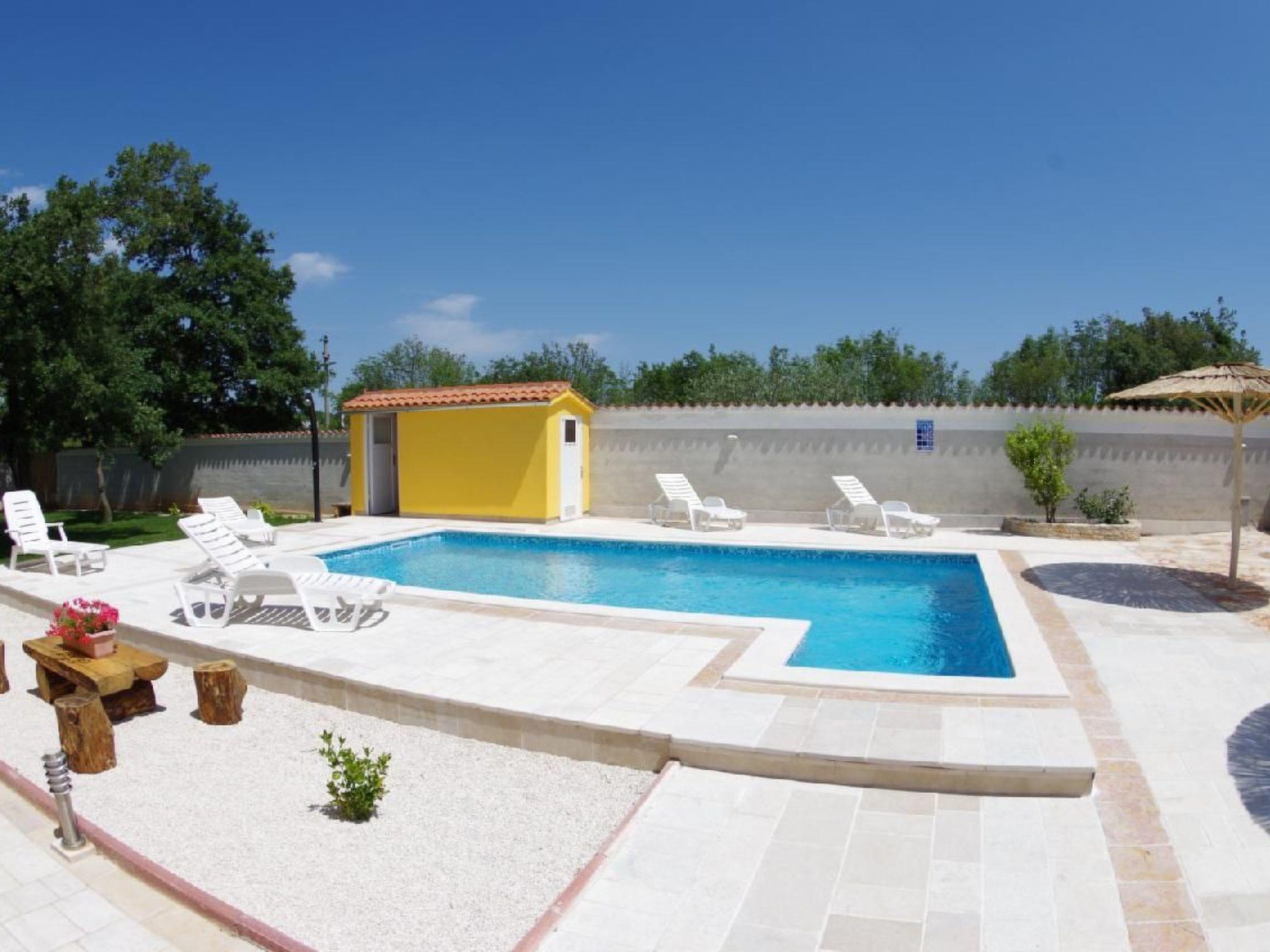 Step into the serene ambiance of our comfortable, self-standing ground-floor house located at the entrance of the quaint Istrian village of St. Kirin. This property is an ideal retreat for groups of friends or two families who seek a vacation away from the hustle and bustle of city life, offering a private oasis with its own pool measuring 8x4 meters. For those who crave urban excitement, the vibrant city life and colorful sites of Pula are just 15 kilometers to the south, making it easily accessible for day trips or evening outings.