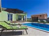 The exterior of Villa Laganini is as impressive as its interior. Set within an 800m² fenced garden, the villa guarantees privacy and a peaceful atmosphere. The highlight is a 30m² heated saltwater swimming pool, perfect for both leisure and relaxation. Guests can enjoy sunbathing on the four sunbeds, seek shade under the sun umbrellas, or use the outdoor shower for convenience. For evenings filled with joy and delicious food, there's a barbecue area. Besides, the children's trampoline adds a fun touch for younger guests, ensuring the villa's appeal to families.