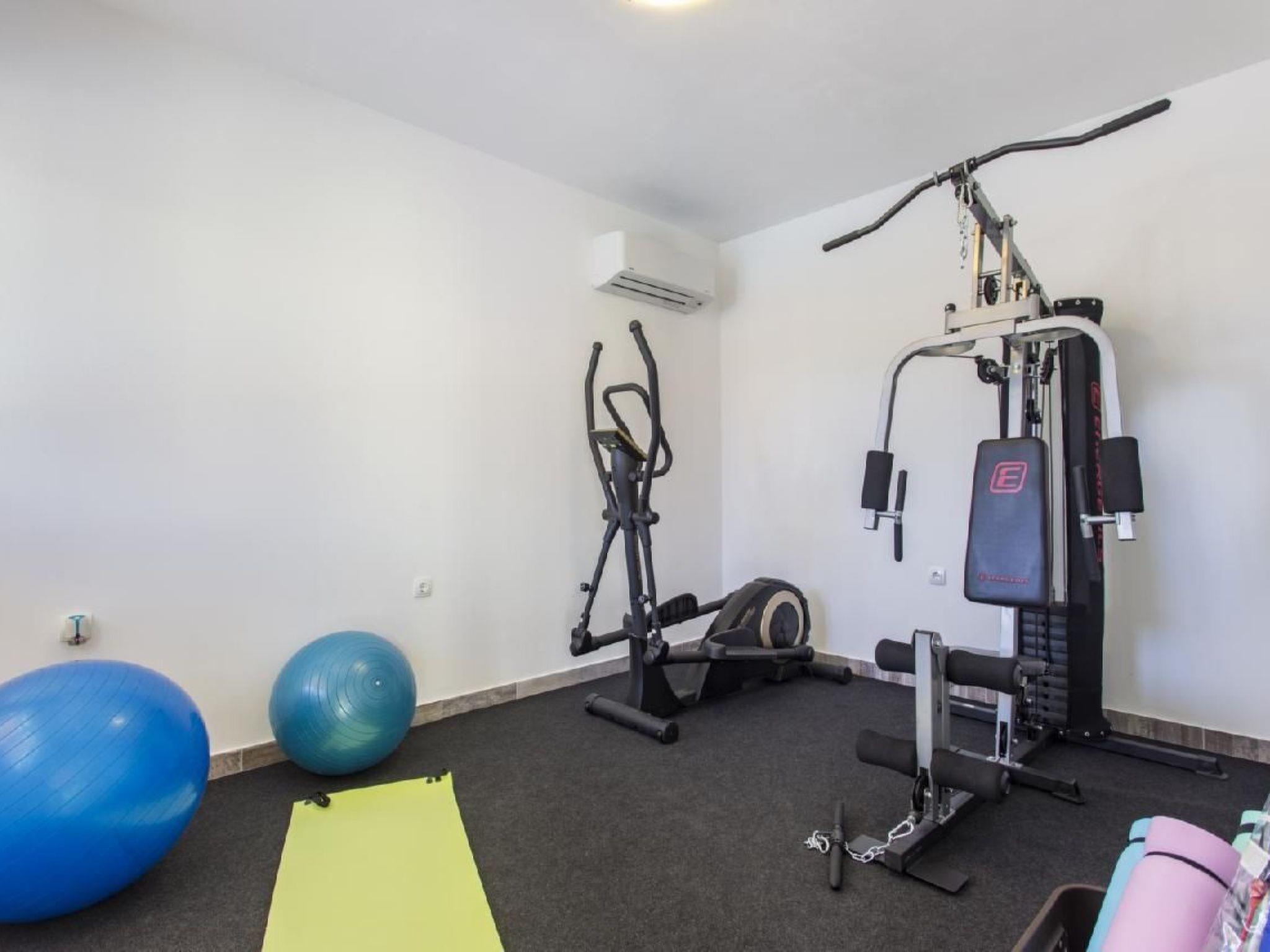 Inside the villa, modernity meets comfort in a seamless blend. The ground floor spans 125 m², featuring a living room combined with a kitchen and dining room. This space is equipped with everything needed for a comfortable stay, including a refrigerator with a freezing section, coffee machine, dishwasher, kitchen utensils, water boiler, and toaster. The villa boasts three bedrooms, each with its own private bathroom, air conditioning, and safe. The living room is complete with satellite TV, ensuring entertainment for everyone. Additionally, the villa offers a fitness room, bringing the convenience of staying active even while on holiday.