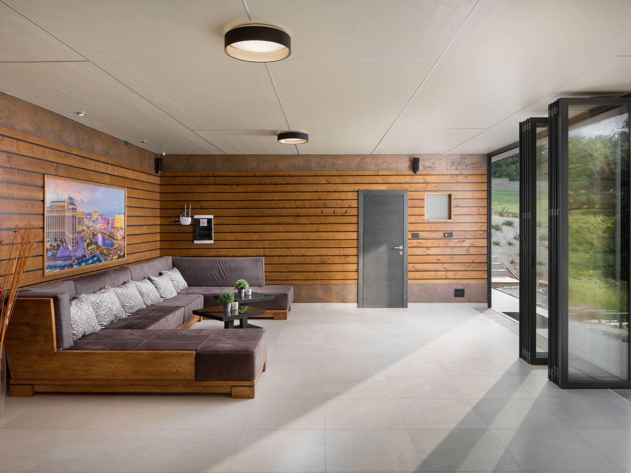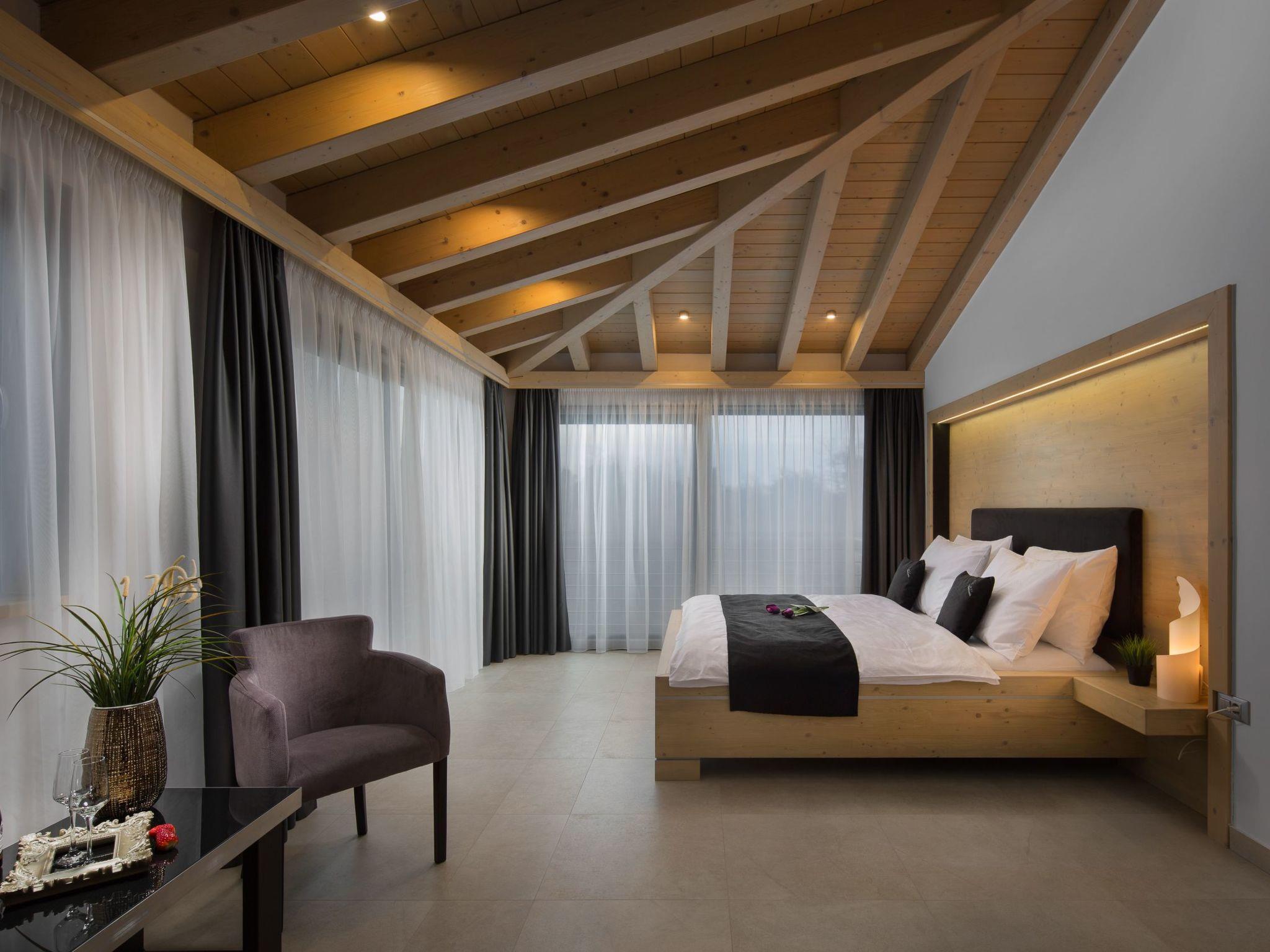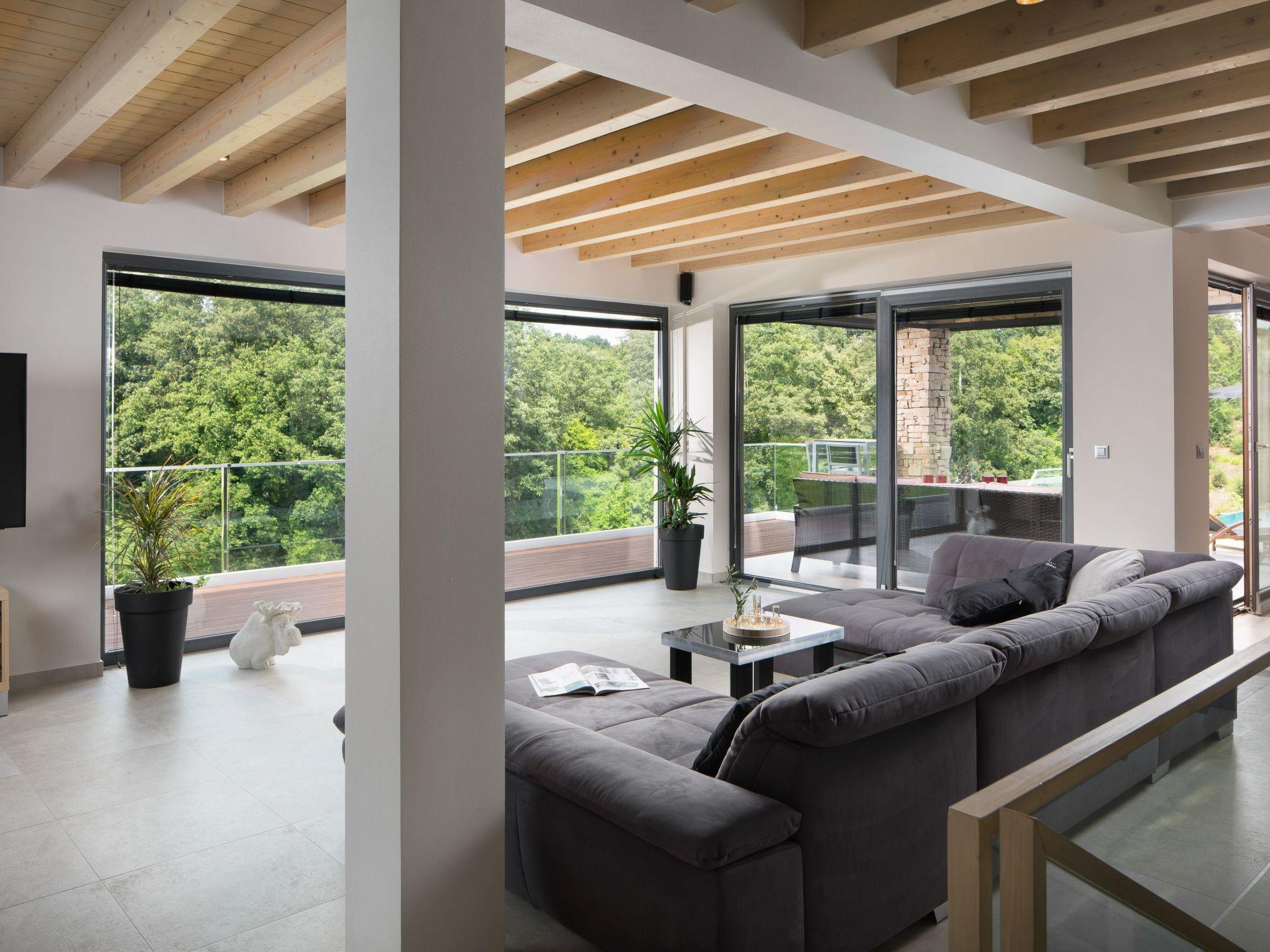 Every detail inside the villa is a testament to quality awareness and style: warm wood and stone décor create a modern country house atmosphere, while the solid furniture, some of which is exclusively made, comfortable wood-burning stoves and the three fully equipped luxury kitchens leave nothing to be desired. Large window fronts not only offer an uninterrupted view of the garden, but also bathe the rooms in a friendly, natural light. The tasteful furnishings and soft tones emphasise the unique ambience and make your stay unforgettable.
