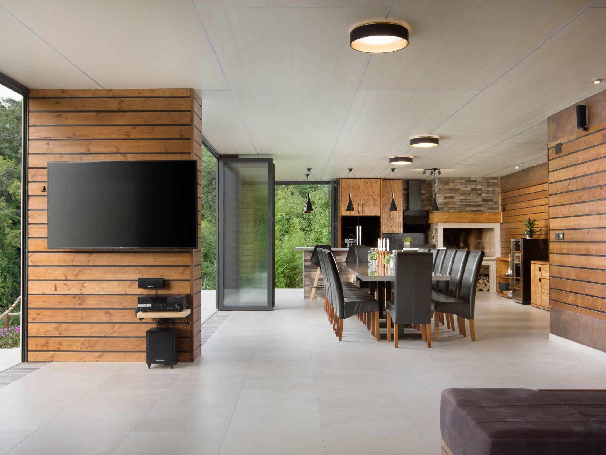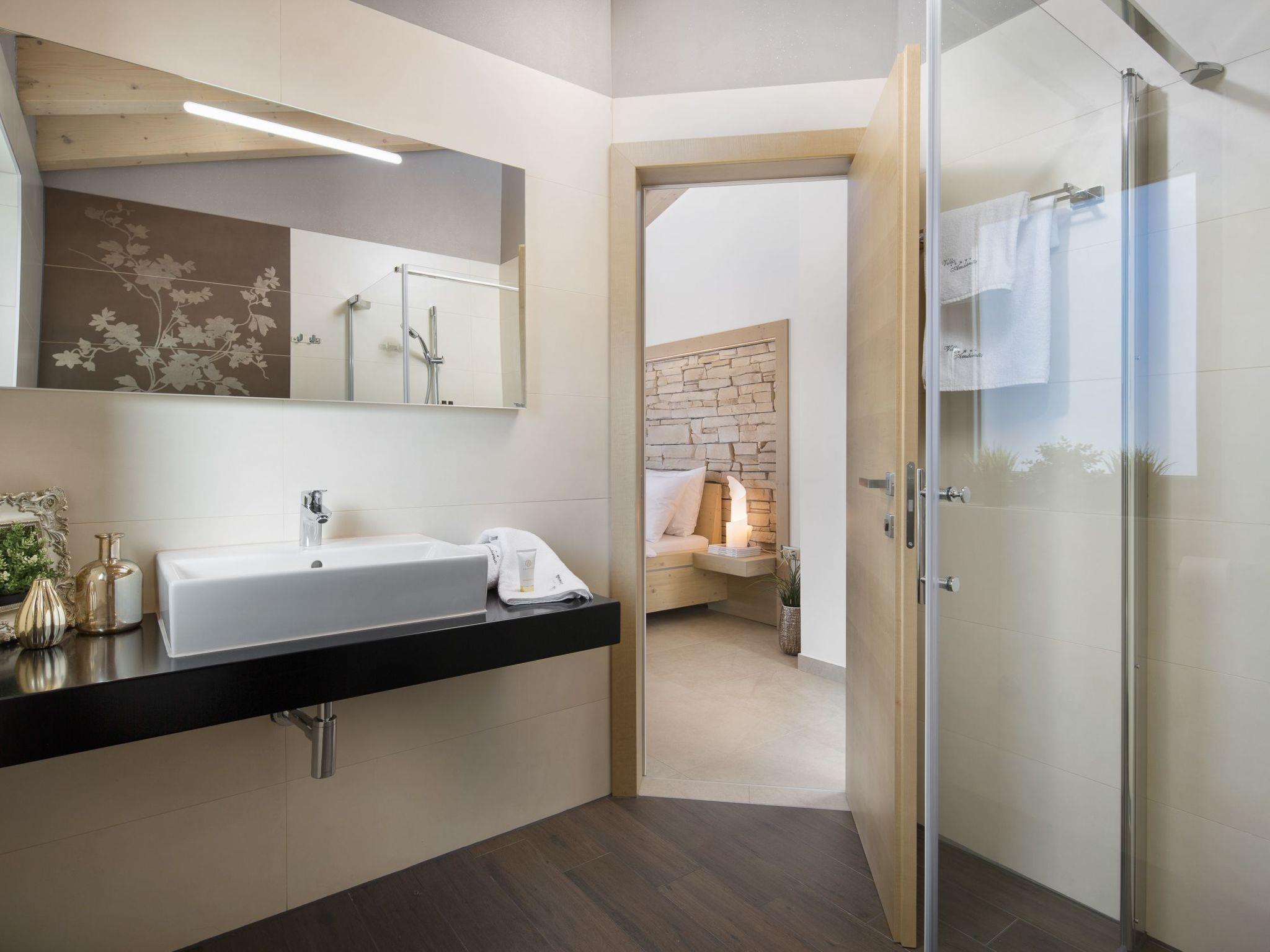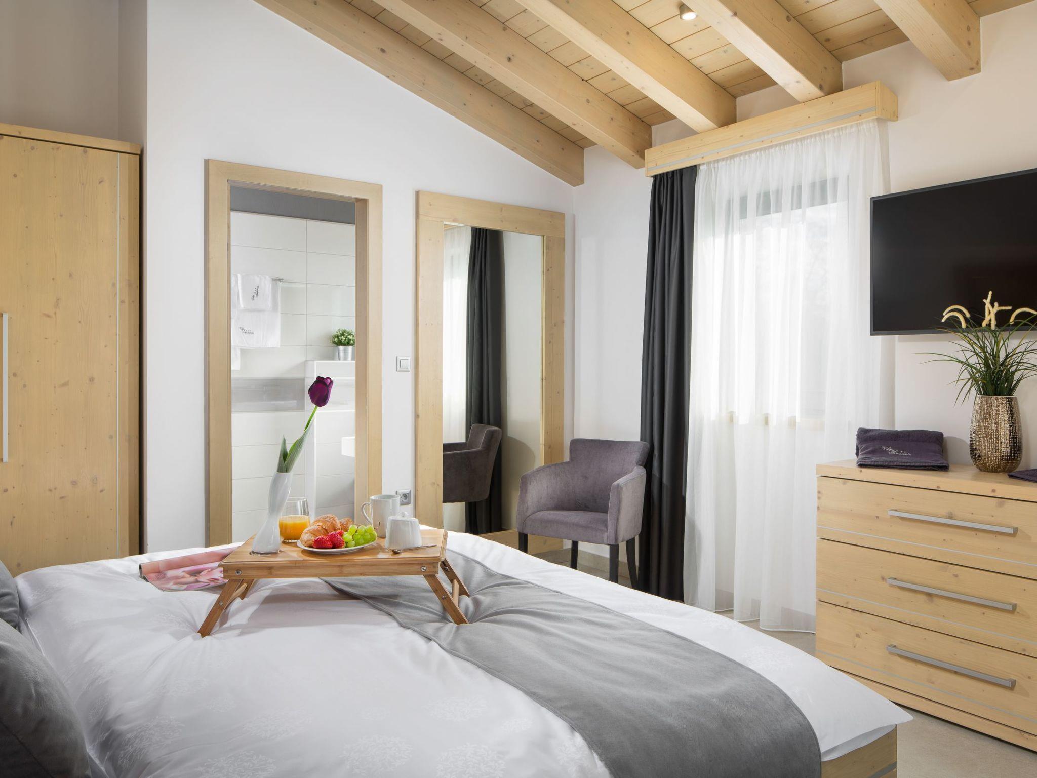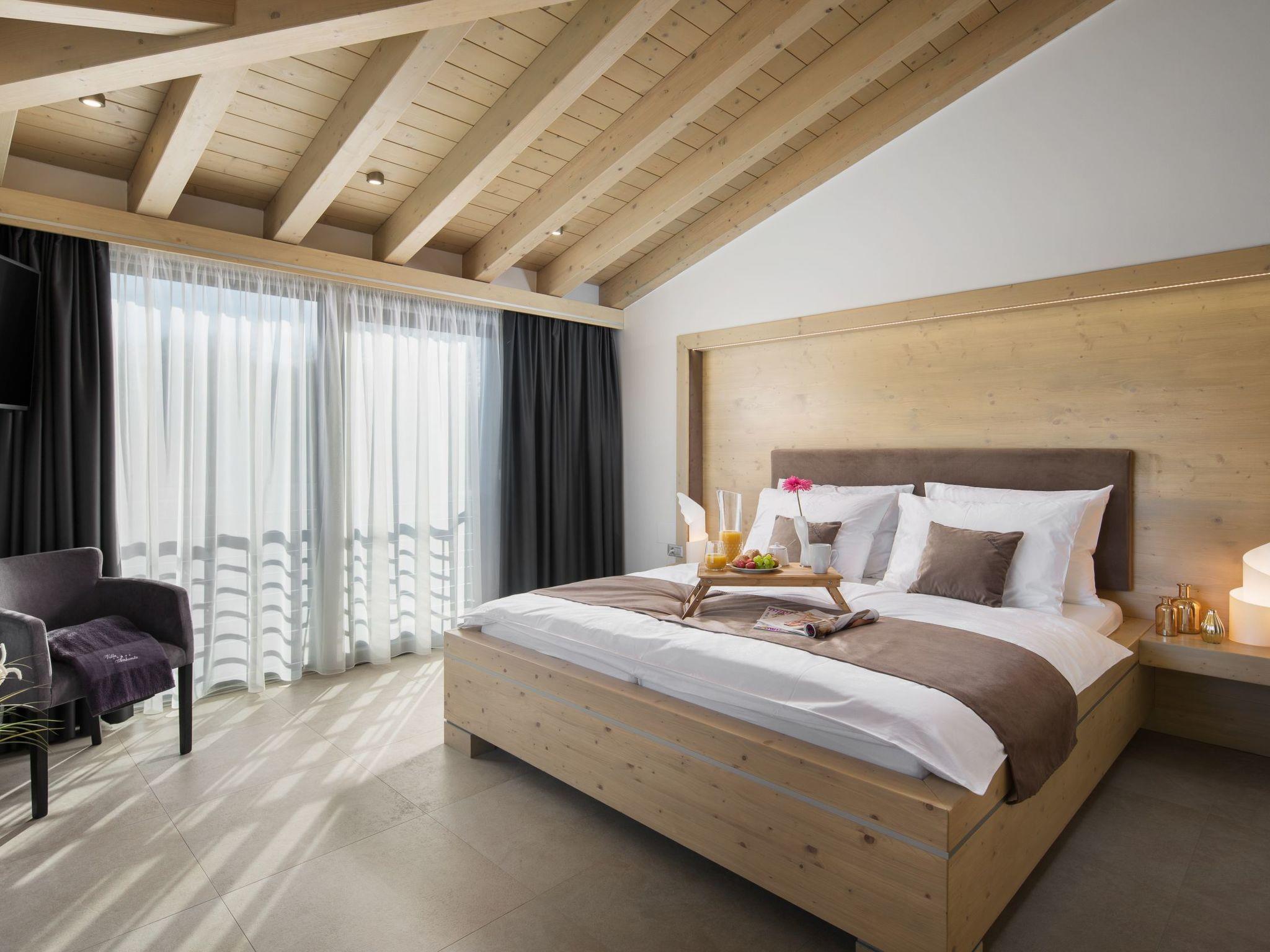 Every detail inside the villa is a testament to quality awareness and style: warm wood and stone décor create a modern country house atmosphere, while the solid furniture, some of which is exclusively made, comfortable wood-burning stoves and the three fully equipped luxury kitchens leave nothing to be desired. Large window fronts not only offer an uninterrupted view of the garden, but also bathe the rooms in a friendly, natural light. The tasteful furnishings and soft tones emphasise the unique ambience and make your stay unforgettable.