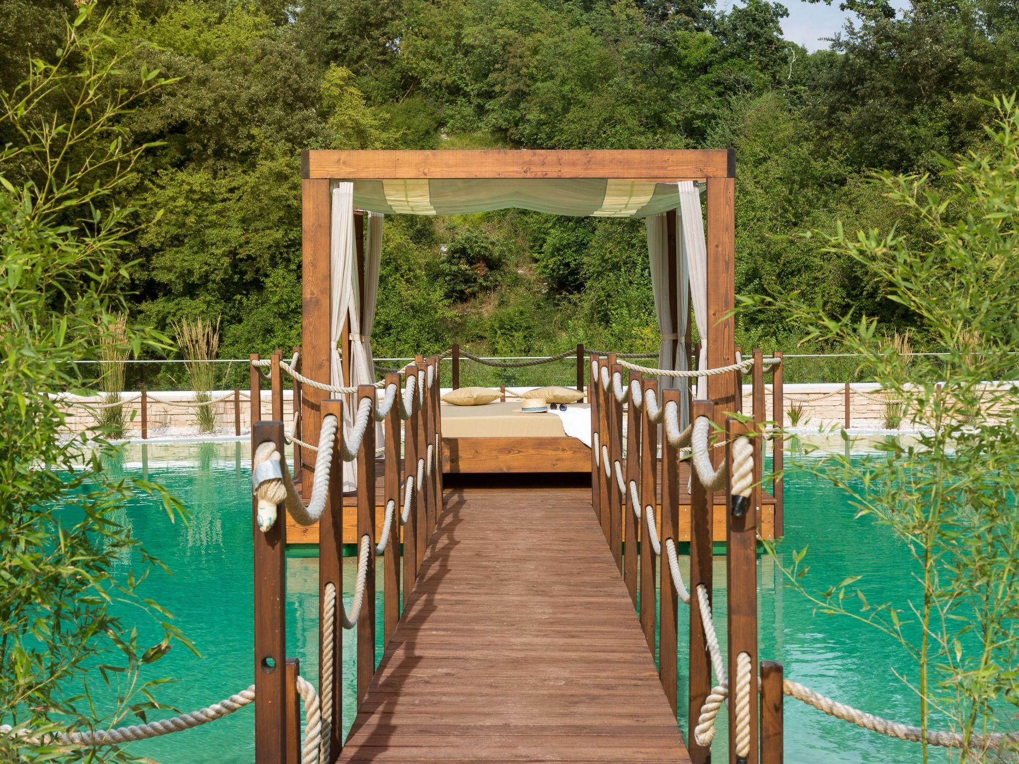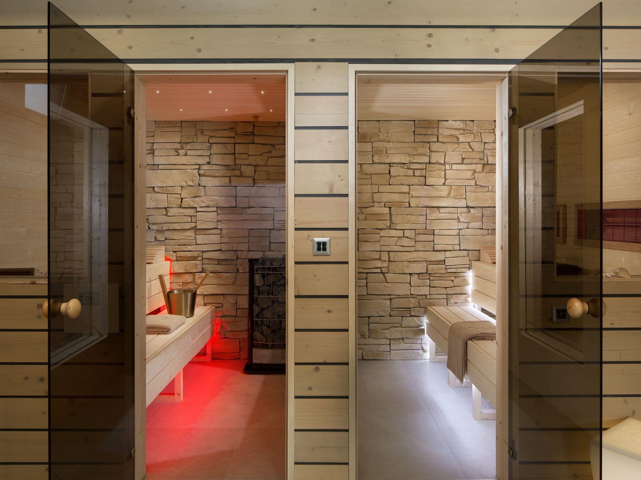 The outdoor area is a dream come true for those seeking relaxation. A spacious chill-out area awaits you with a 72 square metre pool, chic sun loungers and a private pond. A small house with a large feel-good zone, accessible via a bridge, offers a marvellous garden view and invites you to dream, read and relax. The indoor spa oasis completes the wellness experience with Turkish and Finnish saunas, a whirlpool and a heated swimming pool, complemented by a fitness room for sporting activities.