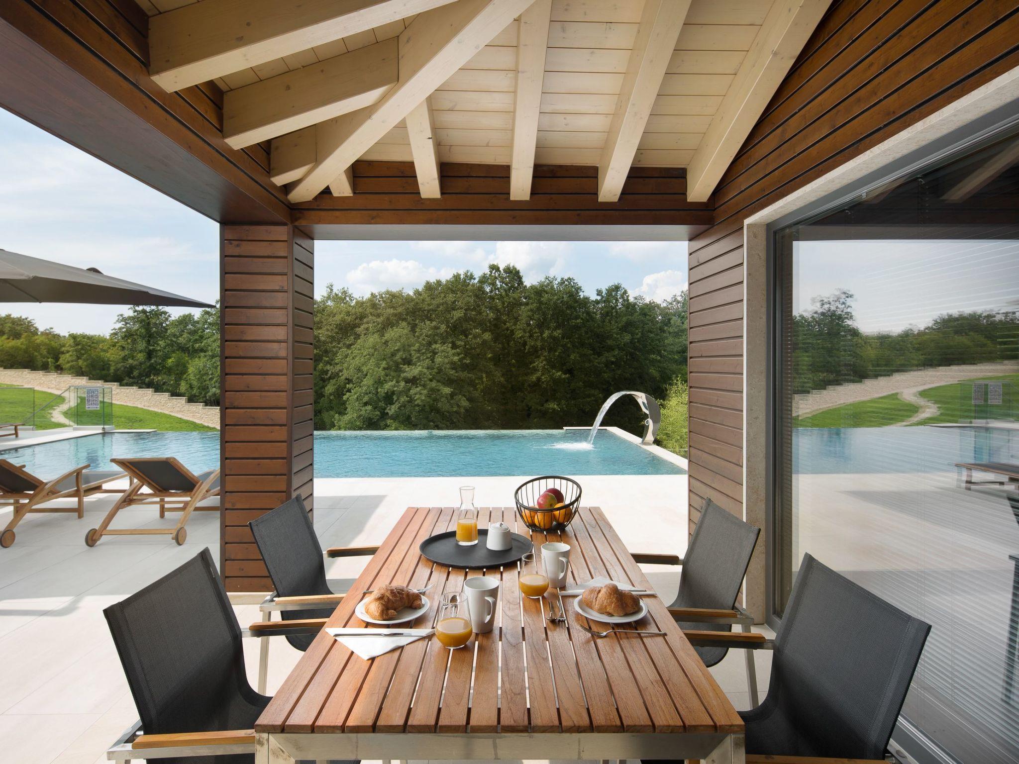 Let yourself be enchanted by Villa Ambiente, a private wellness paradise in the heart of Istria. Enjoy luxury, wellness and complete privacy in this exclusive accommodation. Open since January 2018, our property invites you and your loved ones to experience moments of paradise in holiday homes equipped to a high standard. They can accommodate up to 14 people in seven air-conditioned bedrooms, each with its own en-suite luxury bathroom, ideal for larger groups or several families.