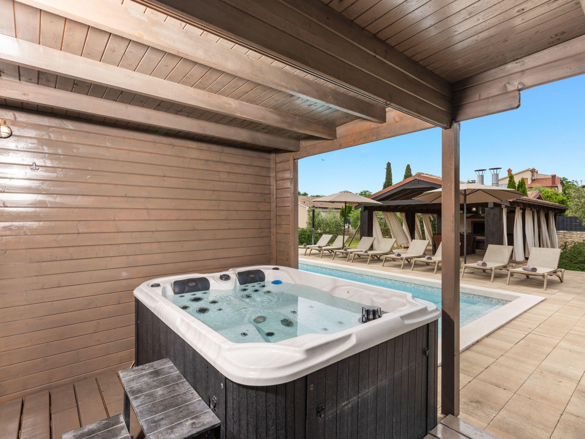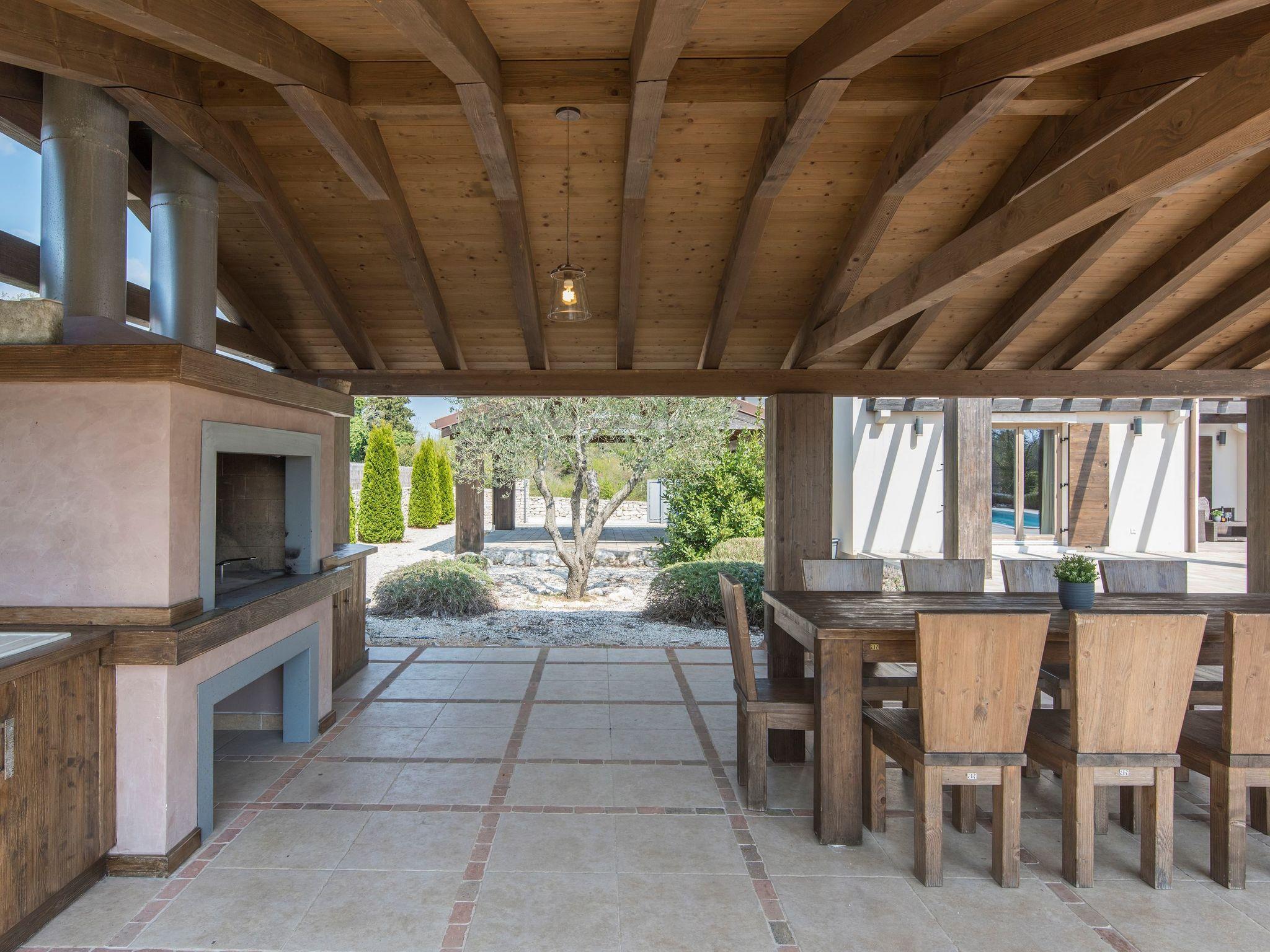 Outside, a private pool surrounded by a wrap-around wooden terrace offers plenty of space for sun loungers and enjoying the surrounding green forests. A 45 square metre covered terrace with an outdoor kitchen and a spacious table for convivial dinners underlines the luxurious holiday experience. The villa not only offers an exquisite interior, but also a relaxing outdoor area that leaves nothing to be desired.