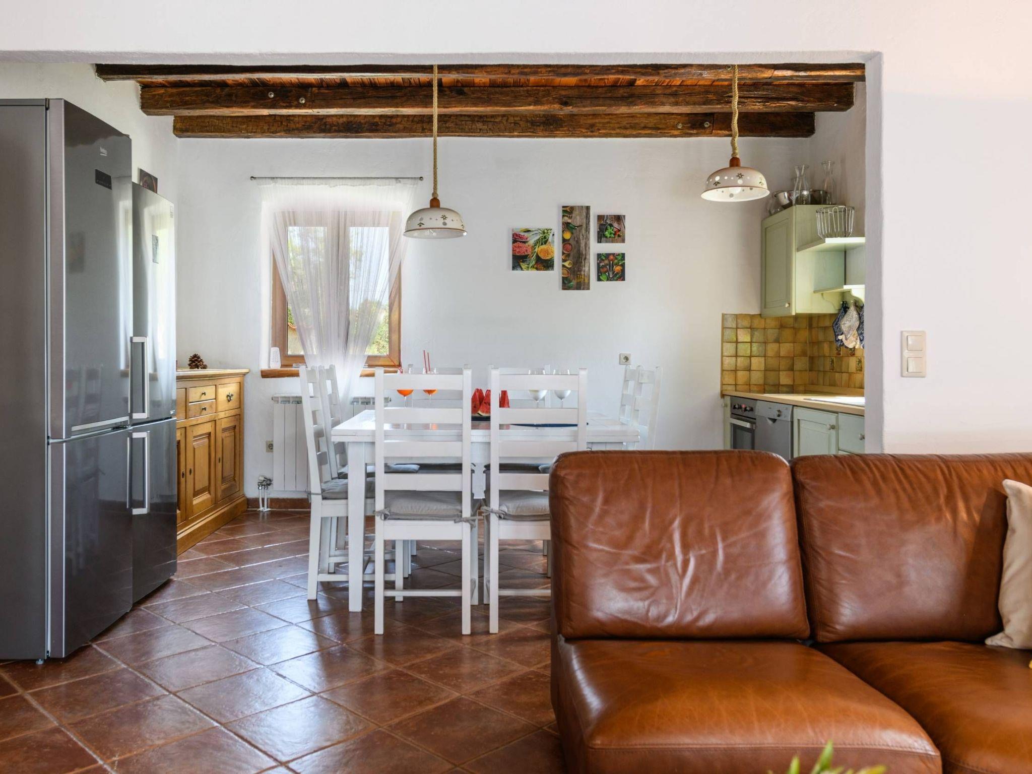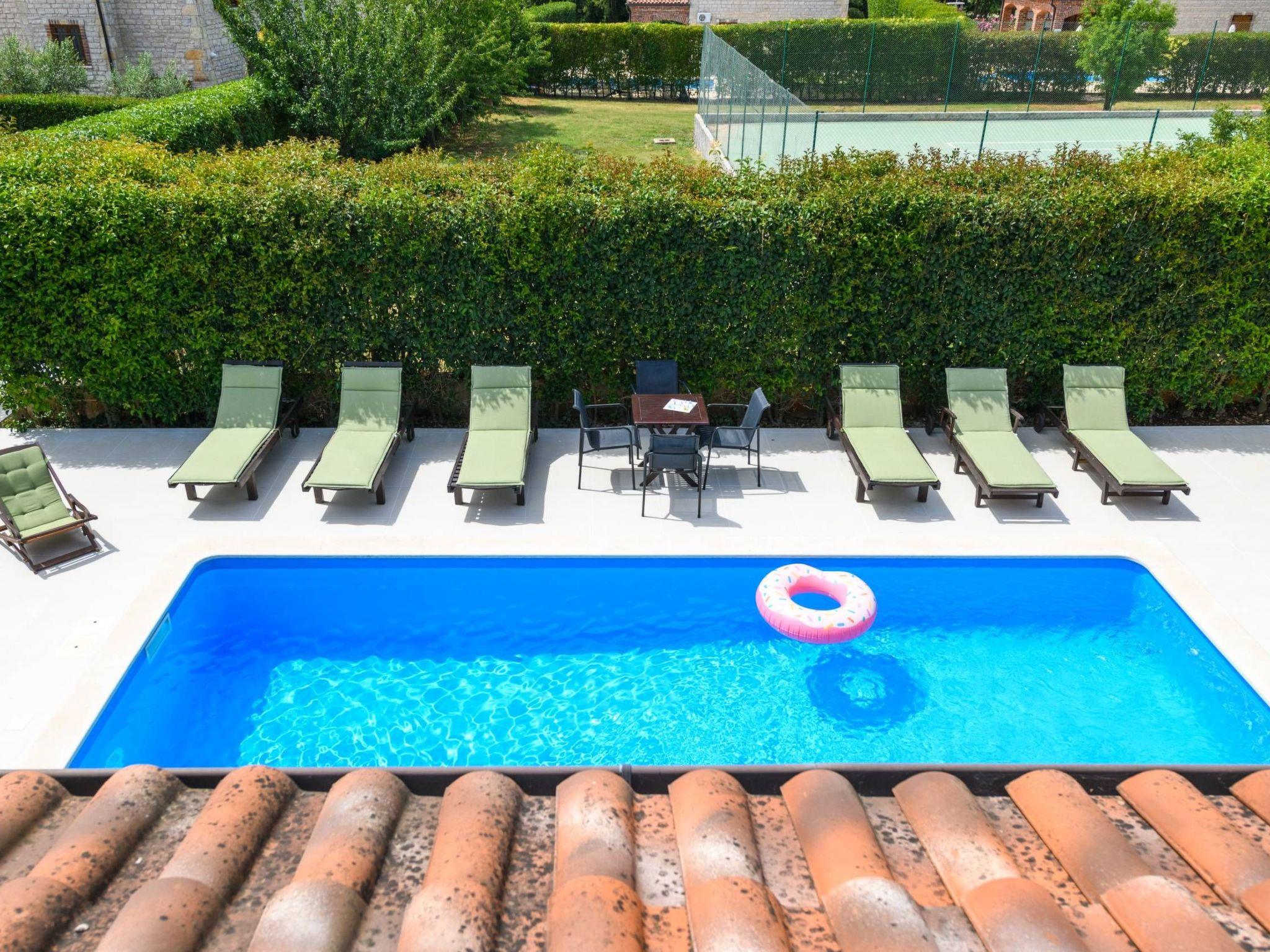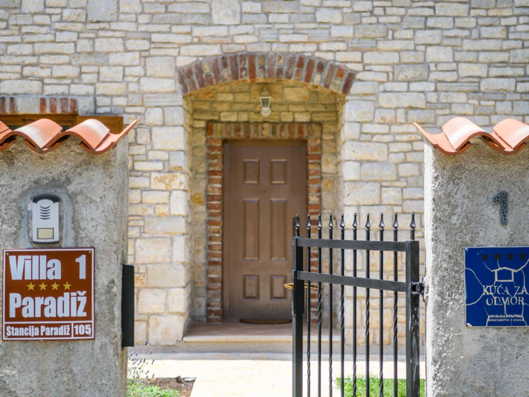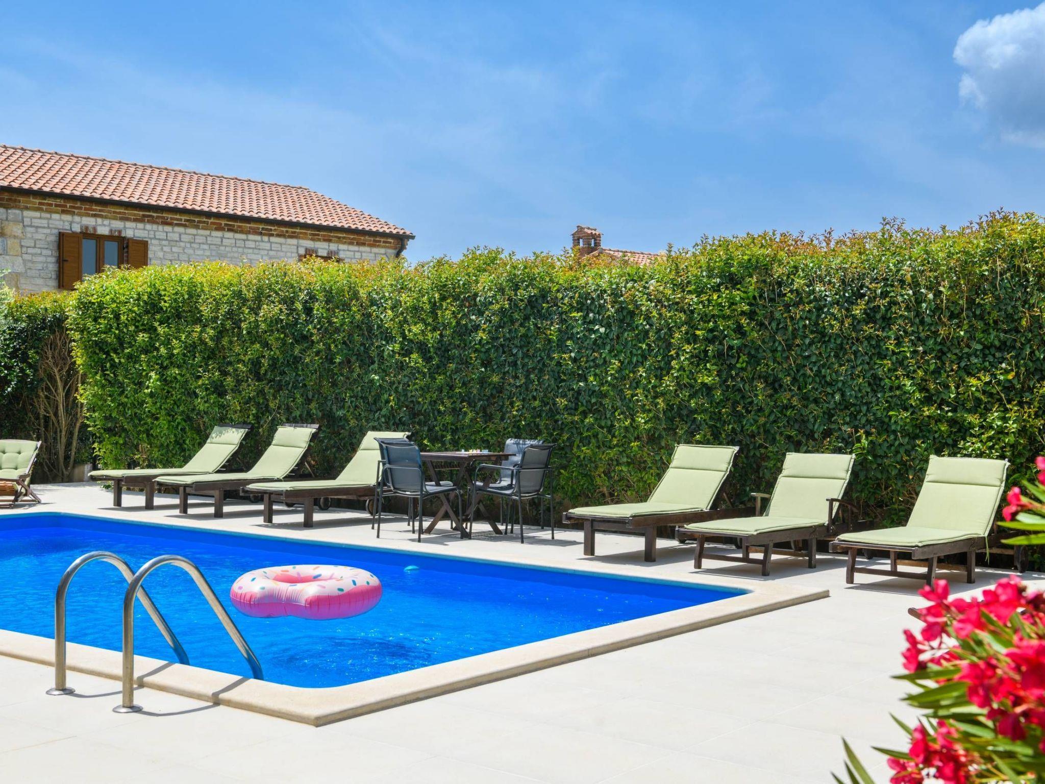 Villa Amani is a four-room holiday home with a private pool. It is located in the quiet tourist resort of Paradiž, near Vodnjan. Villa Amani is in the neighborhood of numerous holiday villas, and is completely fenced.The outdoor area of ??the house offers a private pool, barbecue and covered terrace.Out of a total of four rooms, three bedrooms have double beds. The fourth room contains two single beds. Two rooms have access to the balcony.Two bathrooms are equipped with a shower, toilet and sink.In the fully equipped kitchen there is also a table where 8 people can dine comfortably.Among the kitchen appliances, we would highlight the dishwasher, oven and two large refrigerators.The living room has a corner sofa, an indoor fireplace and a TV with satellite channels.The living room leads to the terrace, which contains a large table for eight people and a small table for afternoon coffee with four chairs.The house is equipped with 2 air conditioners, a washing machine, WiFi internet connection and satellite television.