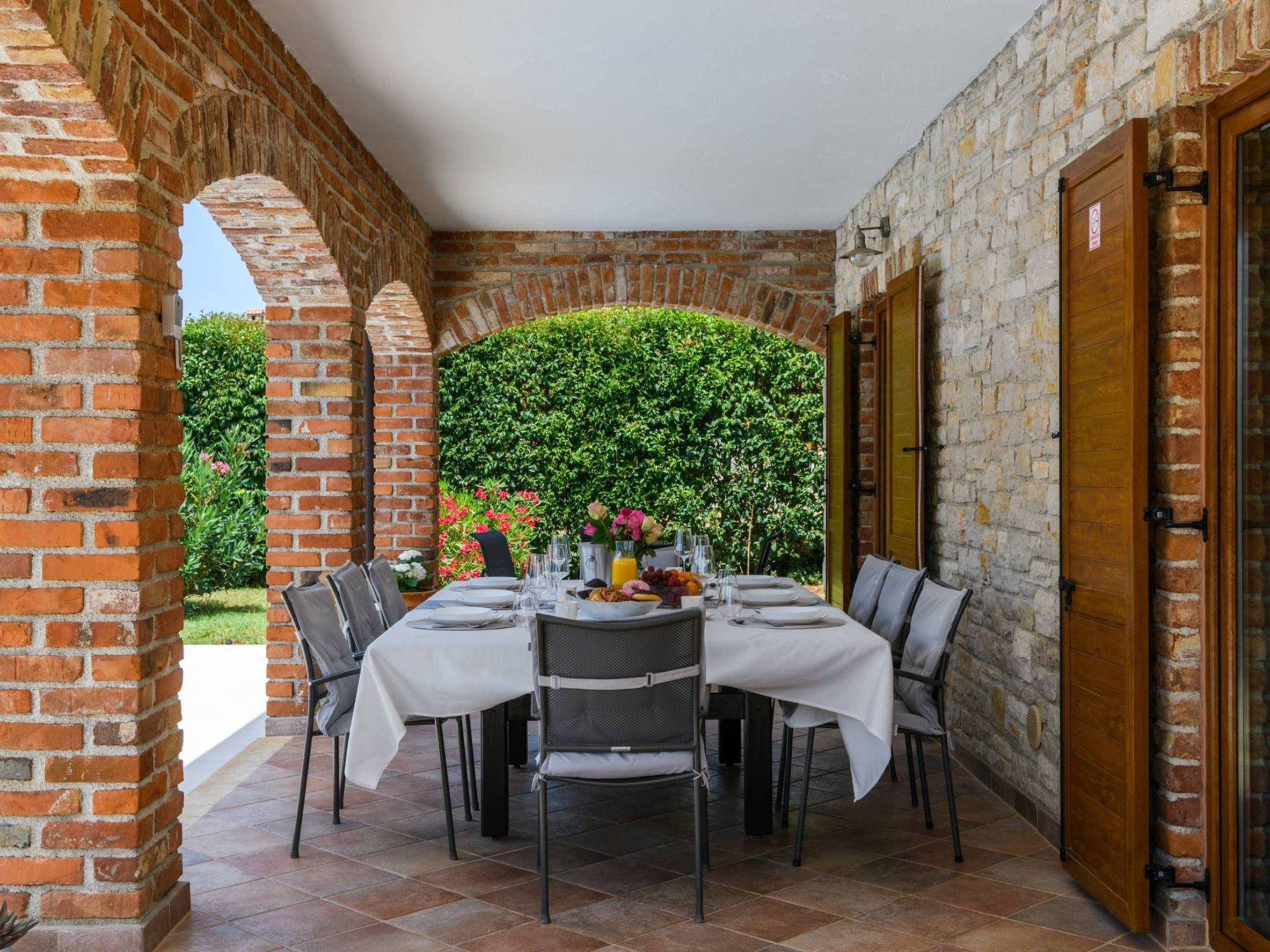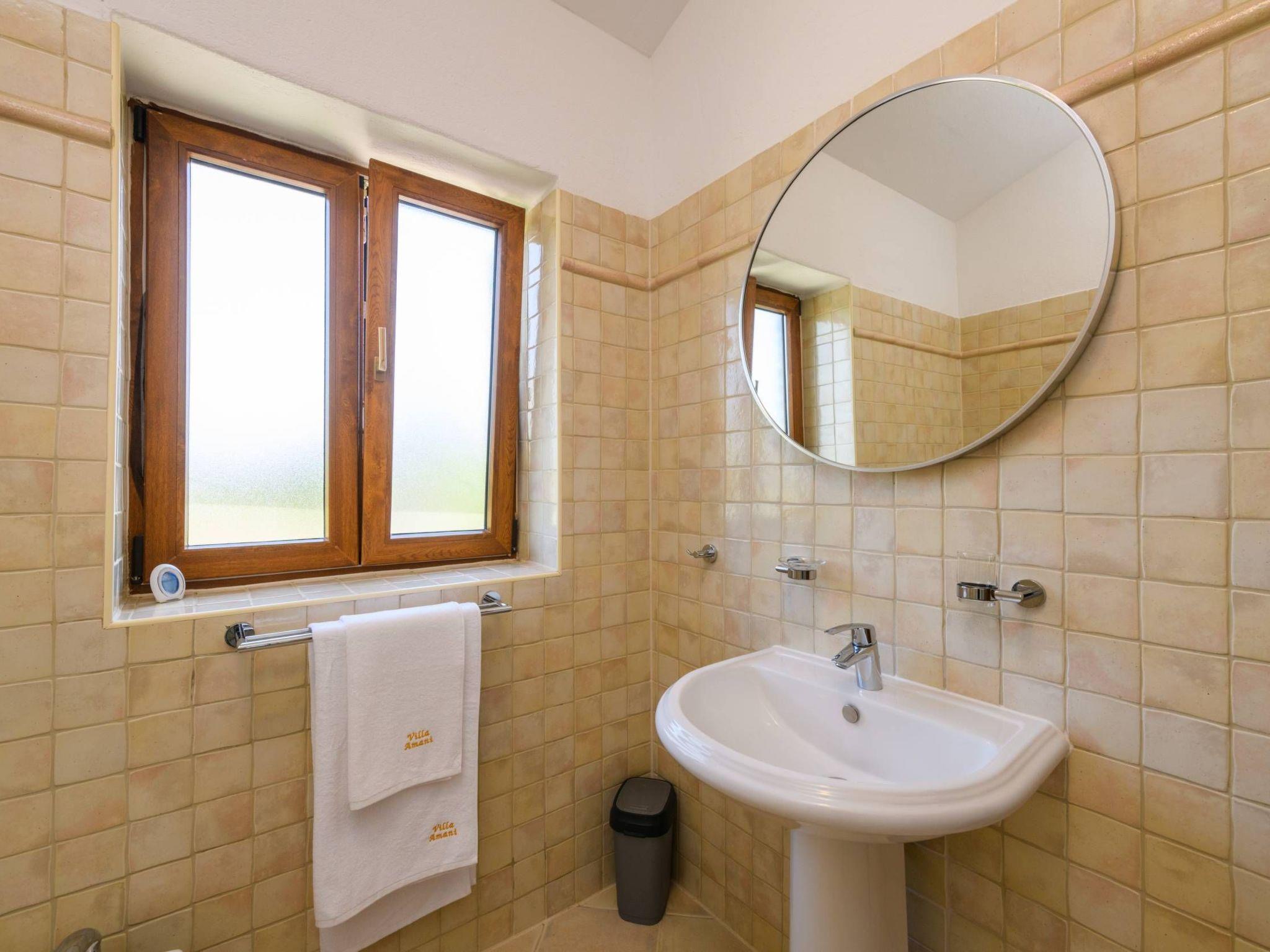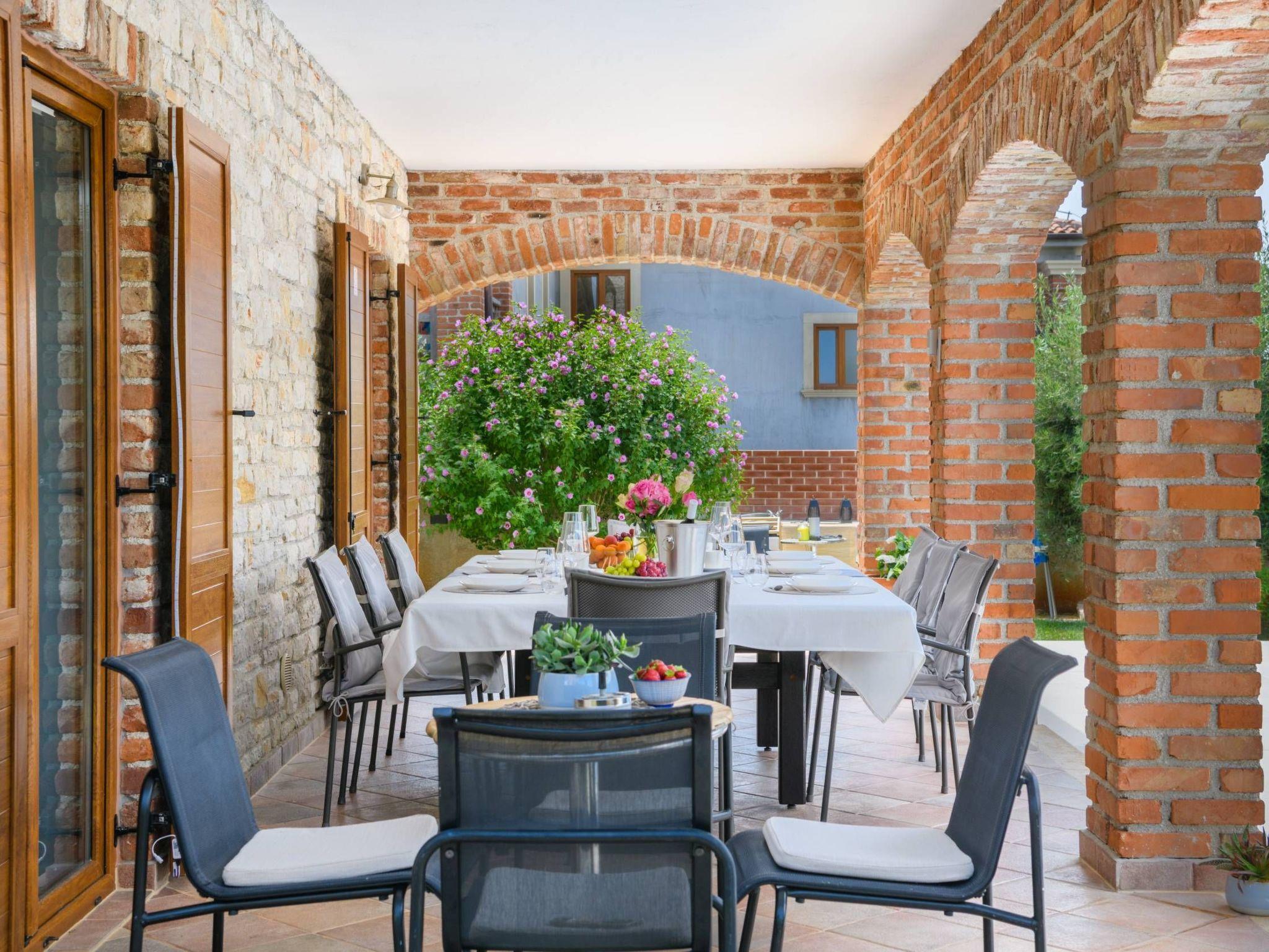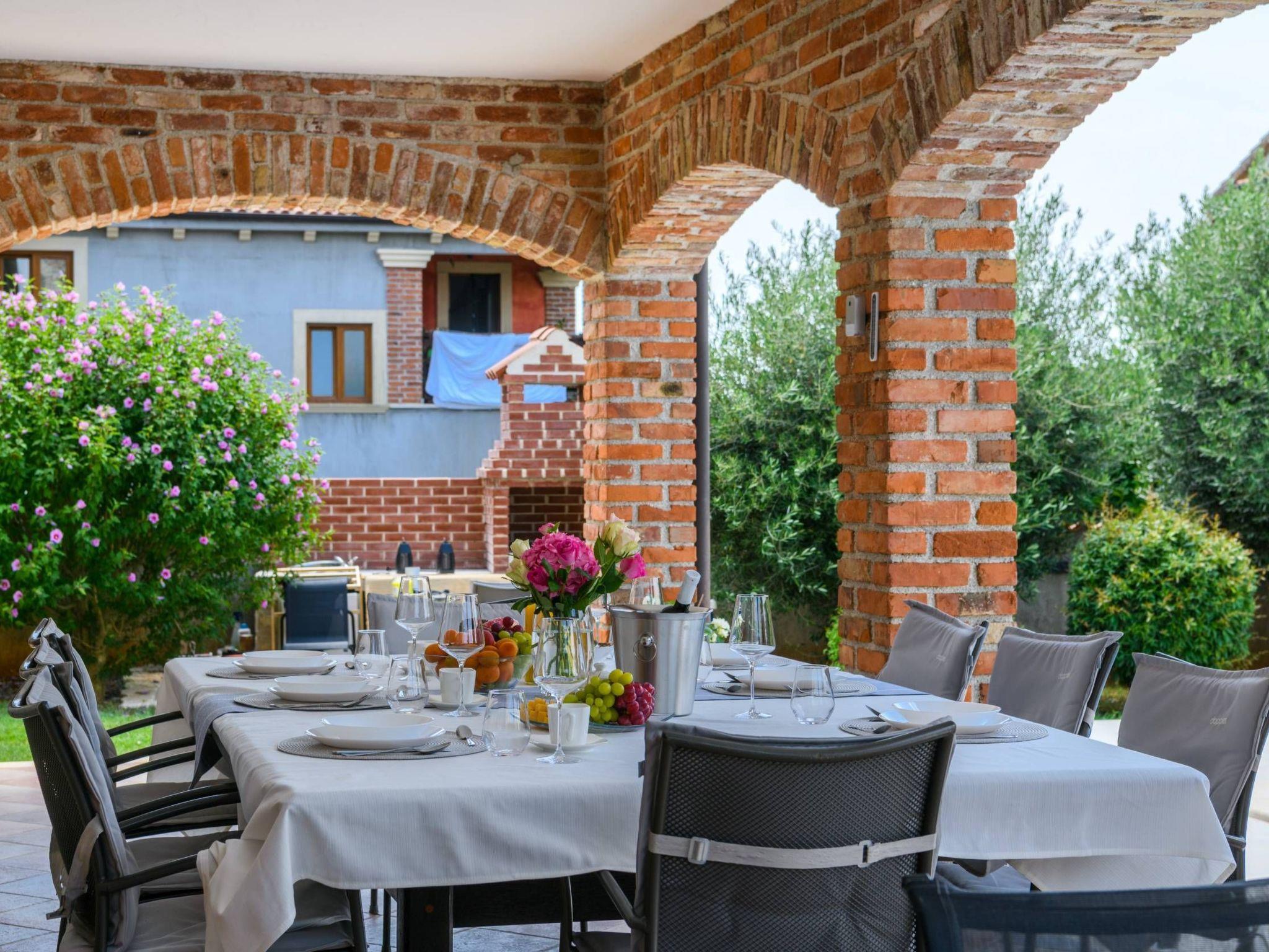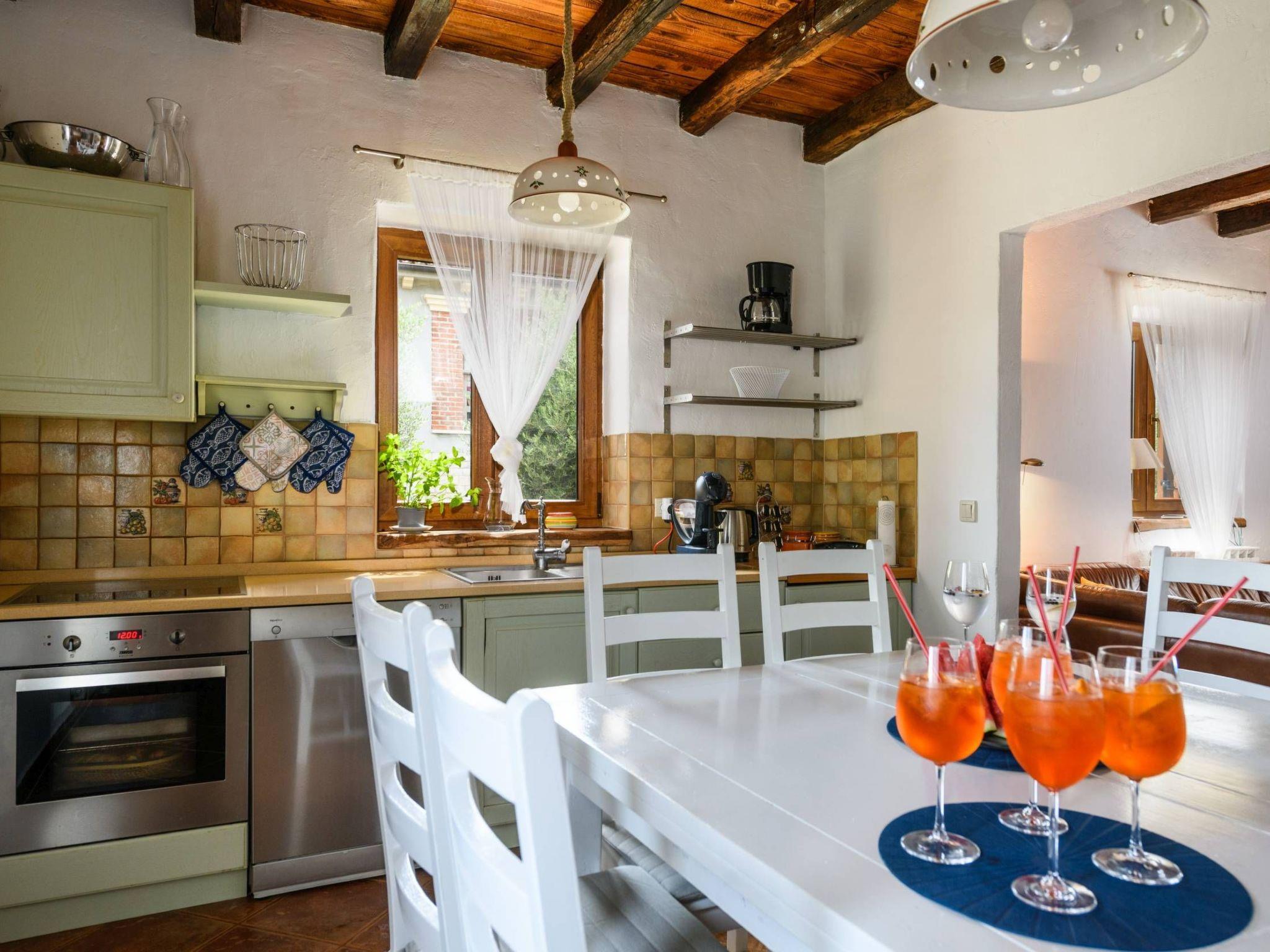 Villa Amani is a four-room holiday home with a private pool. It is located in the quiet tourist resort of Paradiž, near Vodnjan. Villa Amani is in the neighborhood of numerous holiday villas, and is completely fenced.The outdoor area of ??the house offers a private pool, barbecue and covered terrace.Out of a total of four rooms, three bedrooms have double beds. The fourth room contains two single beds. Two rooms have access to the balcony.Two bathrooms are equipped with a shower, toilet and sink.In the fully equipped kitchen there is also a table where 8 people can dine comfortably.Among the kitchen appliances, we would highlight the dishwasher, oven and two large refrigerators.The living room has a corner sofa, an indoor fireplace and a TV with satellite channels.The living room leads to the terrace, which contains a large table for eight people and a small table for afternoon coffee with four chairs.The house is equipped with 2 air conditioners, a washing machine, WiFi internet connection and satellite television.