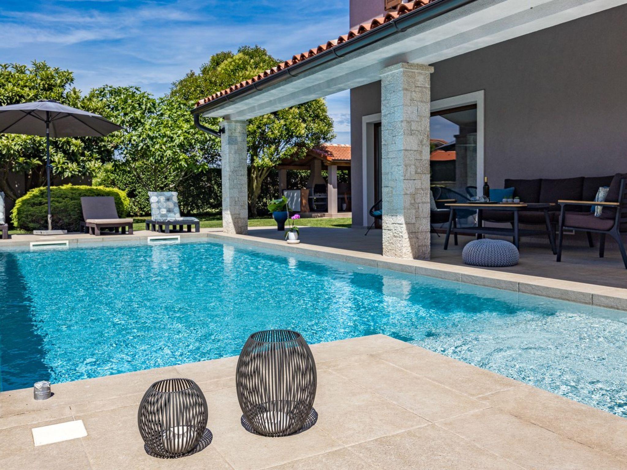 Beautiful newly built villa Roma is located not far from Pula in Jadreški. This beautiful villa offers accommodation for six people in three fully equipped bedrooms. The interior of pleasant, soothing tones extends over two floors. The living area with a fully equipped kitchen is located on the ground floor, while on the first floor there are spacious bedrooms with en suite bathrooms. The fully fenced plot guarantees the privacy of the villa Roma, so you can enjoy the summer days by the pool. Villa Roma in Jadreški is an ideal choice for families with children so a cot and high chair are available. If you have a pet, don't worry as he also is welcome in this beautiful villa without additional charge.