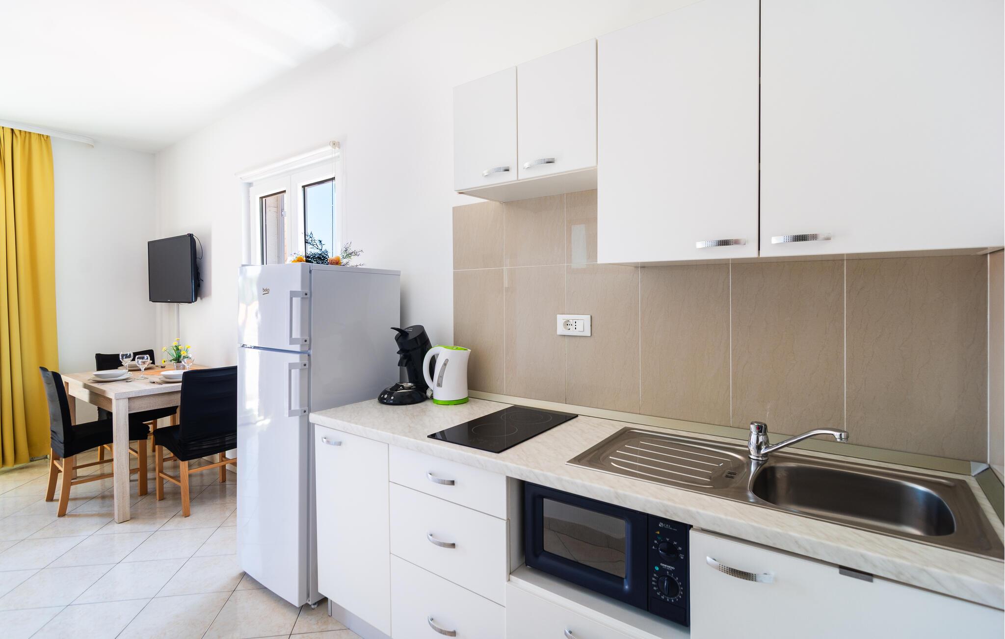 Denne charmerende ferielejlighed byder jer velkommen med en lys og indbydende atmosfære, der lægger op til en solrig ferie lige ved stranden. Server middelhavsretter, og lad den behagelige havbrise blæse gennem værelserne, mens I spiser. Planlæg jeres aktiviteter her, og slap af om aftenen med et brætspil eller en god bog.