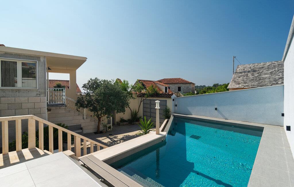 Dette dalmatiske feriehus på øen Brac, i den rolige landsby Selca, tilbyder jer en drømmende kulisse til jeres ferie. De smagfuldt indrettede indendørsrum forener traditionelle elementer med moderne komfort. Den åbne stue skaber en behagelig, afslappet atmosfære, ideel til afslappende dage.