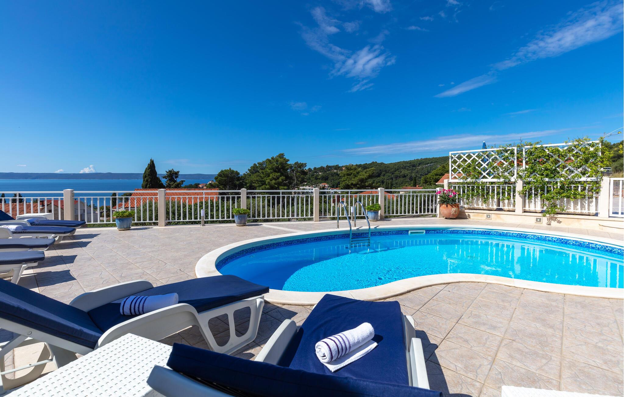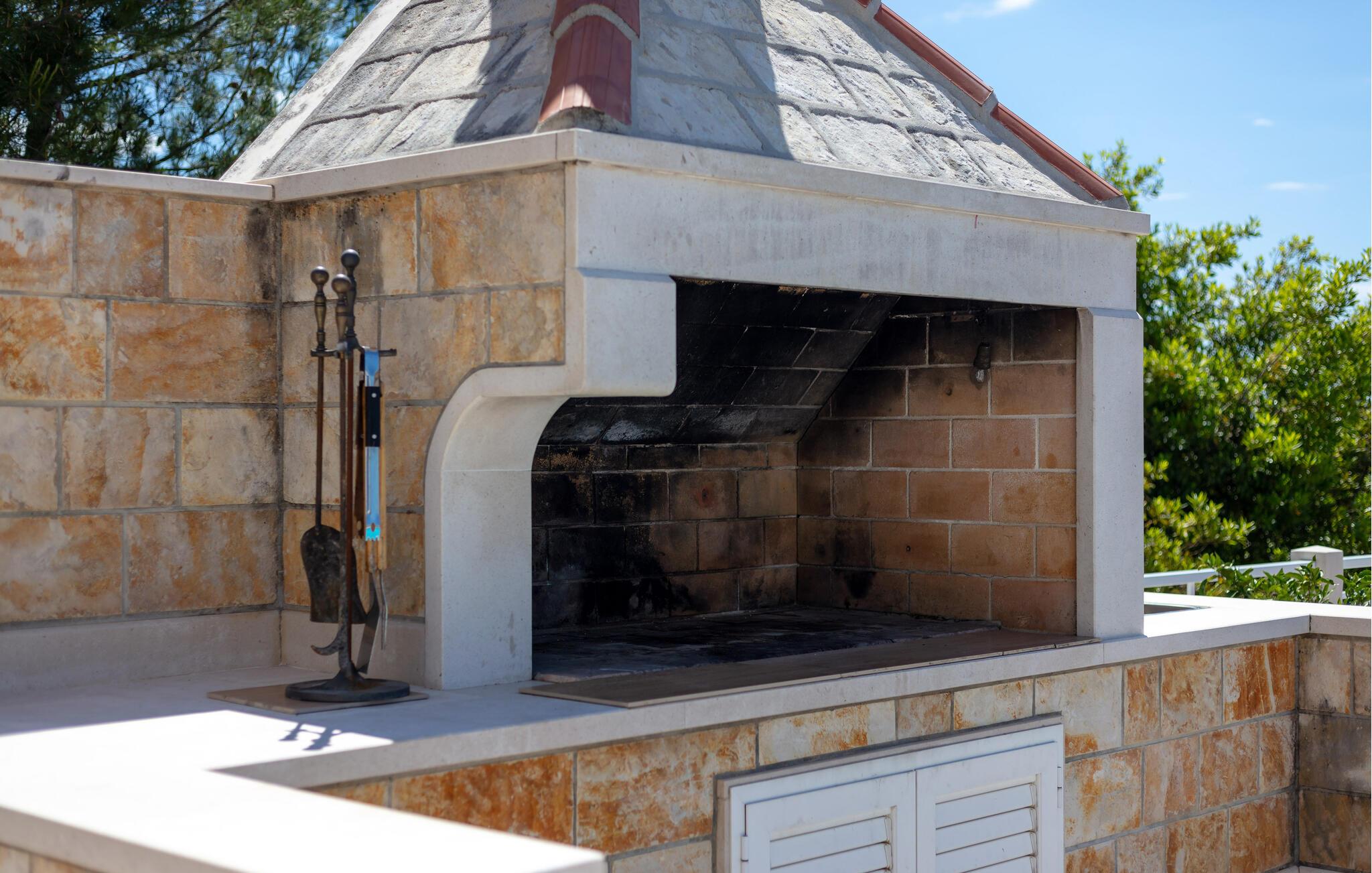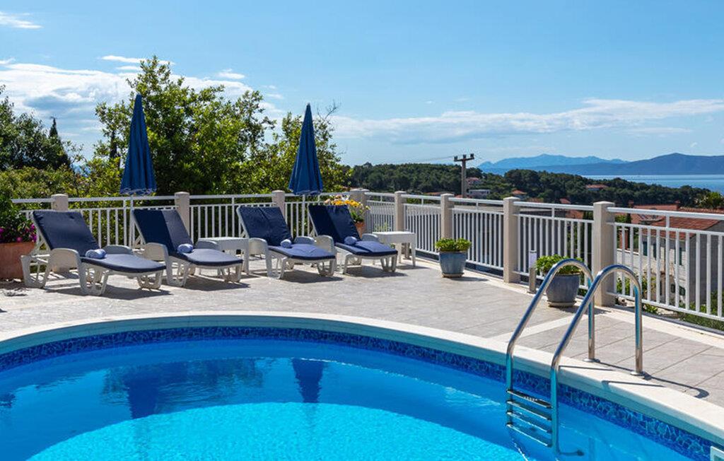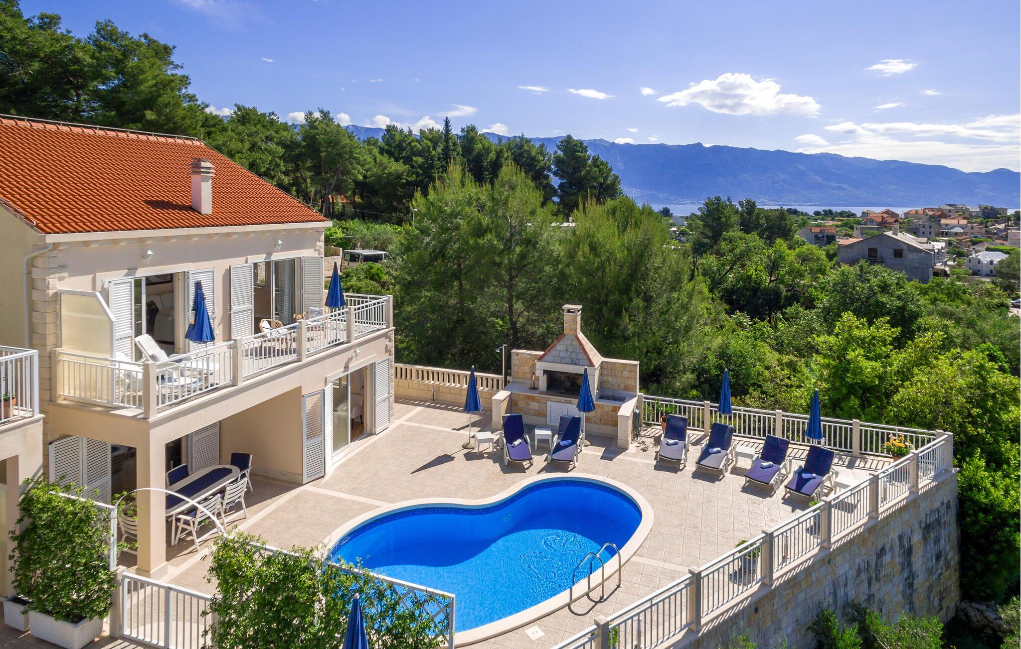 Nyd en afslappende pause i Sumartin midt i det maleriske landskab i Brac. jeres feriehus byder på masser af plads til hele familien og er det optimale tilflugtssted for en afslappende ferie. Nyd solen først om morgenen på liggestolene ved poolen eller ovenpå på balkonen. I kan spise morgenmad ved det elegante indendørs spisebord. Nyd den storslåede havudsigt fra den rummelige terrasse, der er udstyret med en privat pool og en hyggelig pejs, mens I stirrer ud på det glitrende hav.