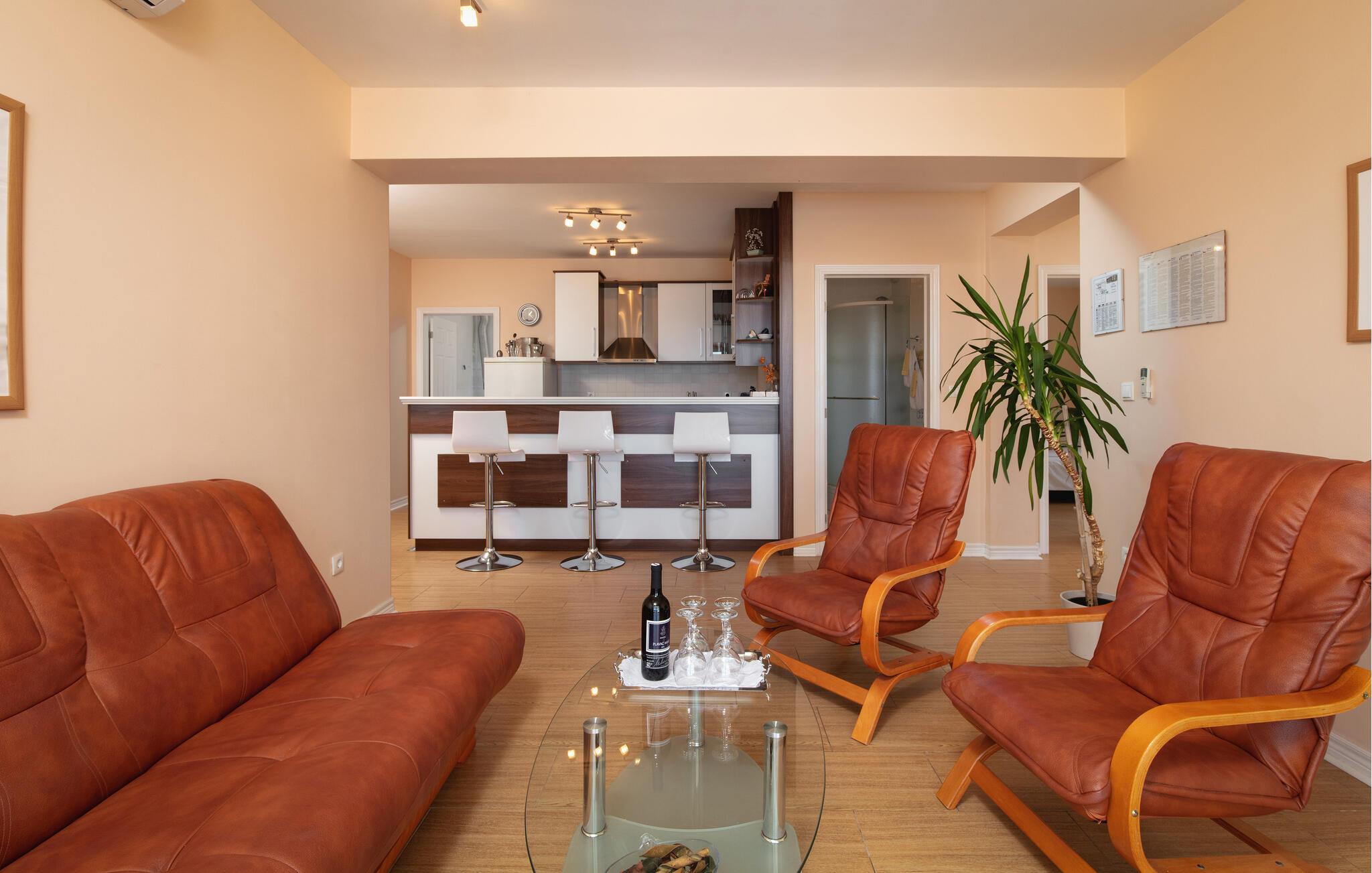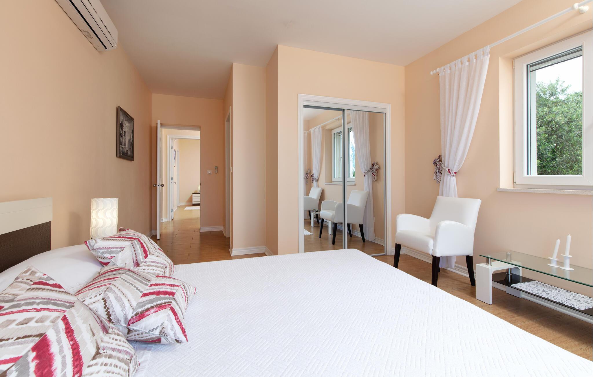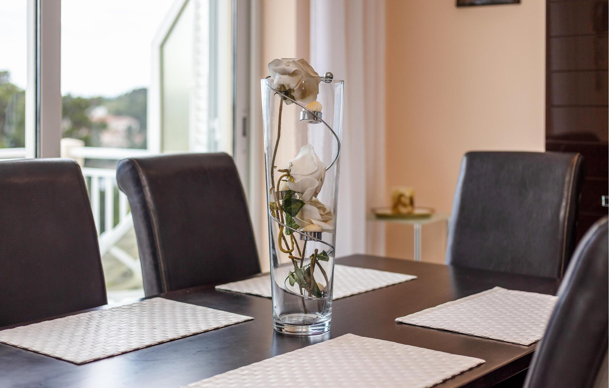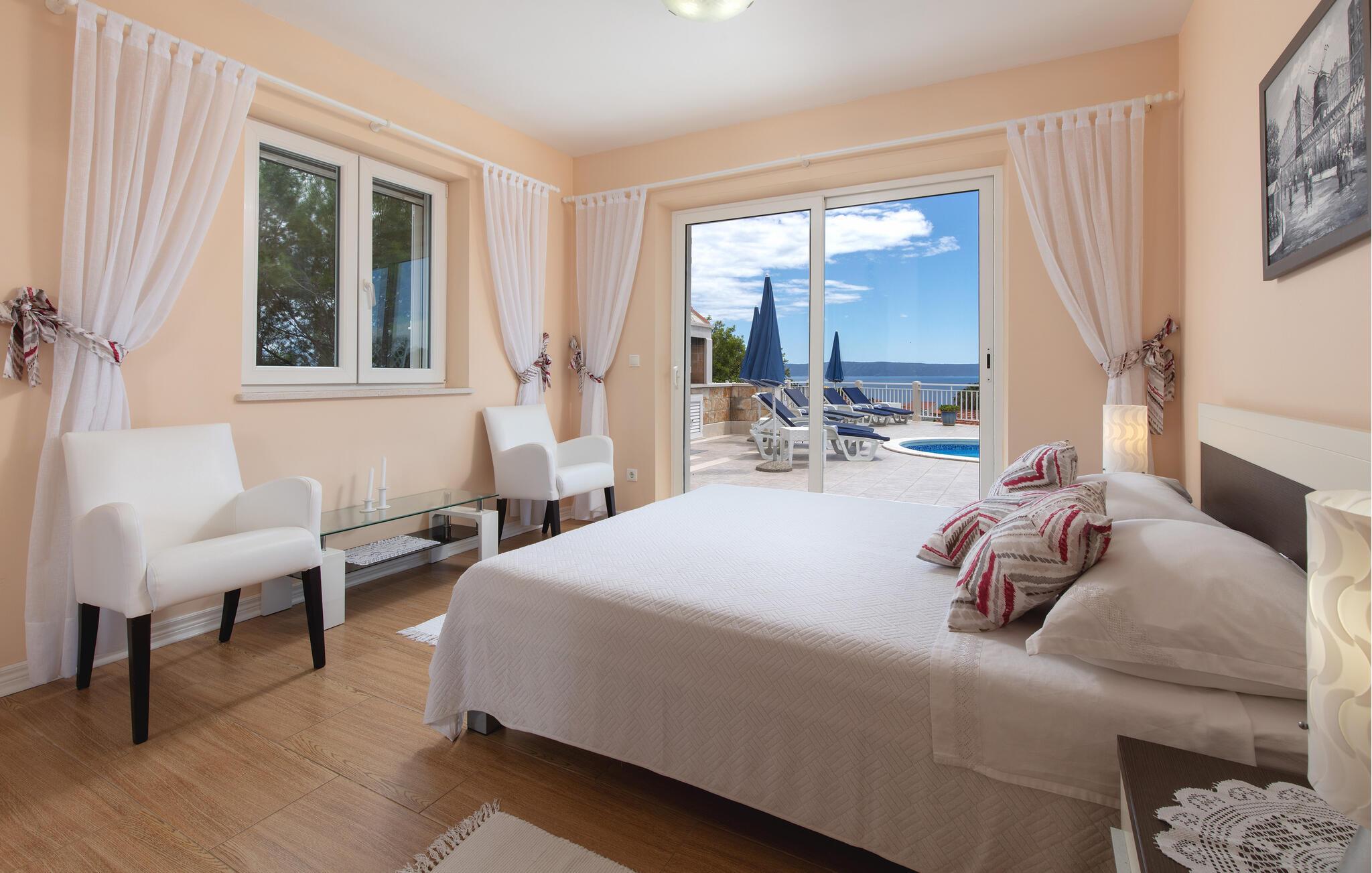 Nyd en afslappende pause i Sumartin midt i det maleriske landskab i Brac. jeres feriehus byder på masser af plads til hele familien og er det optimale tilflugtssted for en afslappende ferie. Nyd solen først om morgenen på liggestolene ved poolen eller ovenpå på balkonen. I kan spise morgenmad ved det elegante indendørs spisebord. Nyd den storslåede havudsigt fra den rummelige terrasse, der er udstyret med en privat pool og en hyggelig pejs, mens I stirrer ud på det glitrende hav.