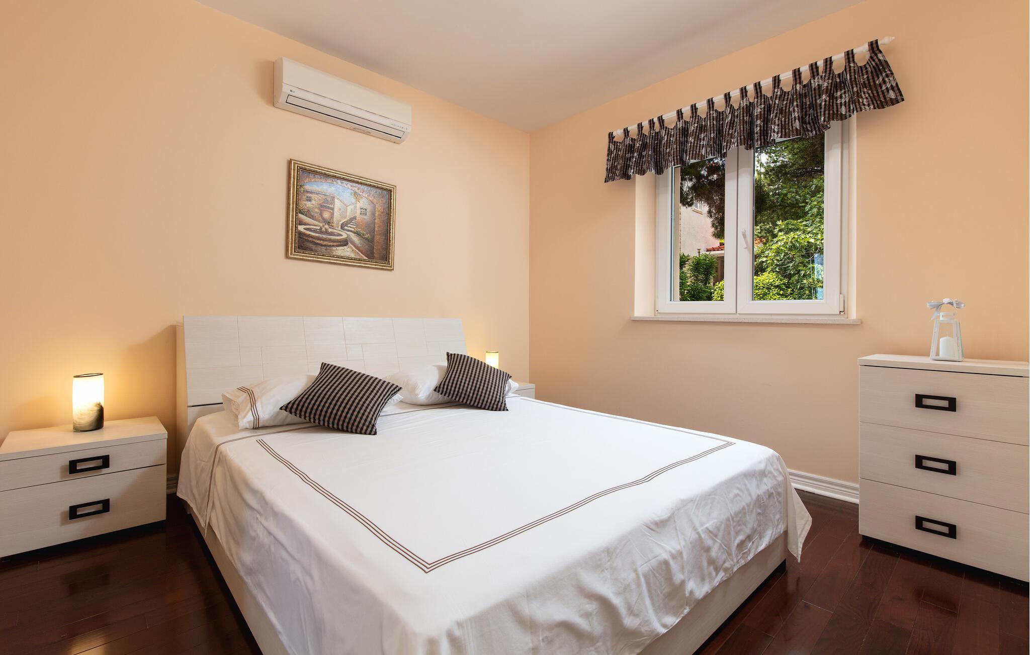 Oplev de idylliske strande kun nogle få minutter fra villaen. Dyk ned i det krystalklare vand og lad den fredelige atmosfære træde i kraft. I kan også drage fordel af de forskellige kulinariske tilbud i området. Prøv traditionelle dalmatiske delikatesser i de nærliggende restauranter og forkæl jer selv med de friske, lokale råvarer. For alle, der er interesseret i at udforske regionens historie og kultur, tilbyder de historiske temastier i Sumartin en spændende mulighed for at lære mere om øens fortid.