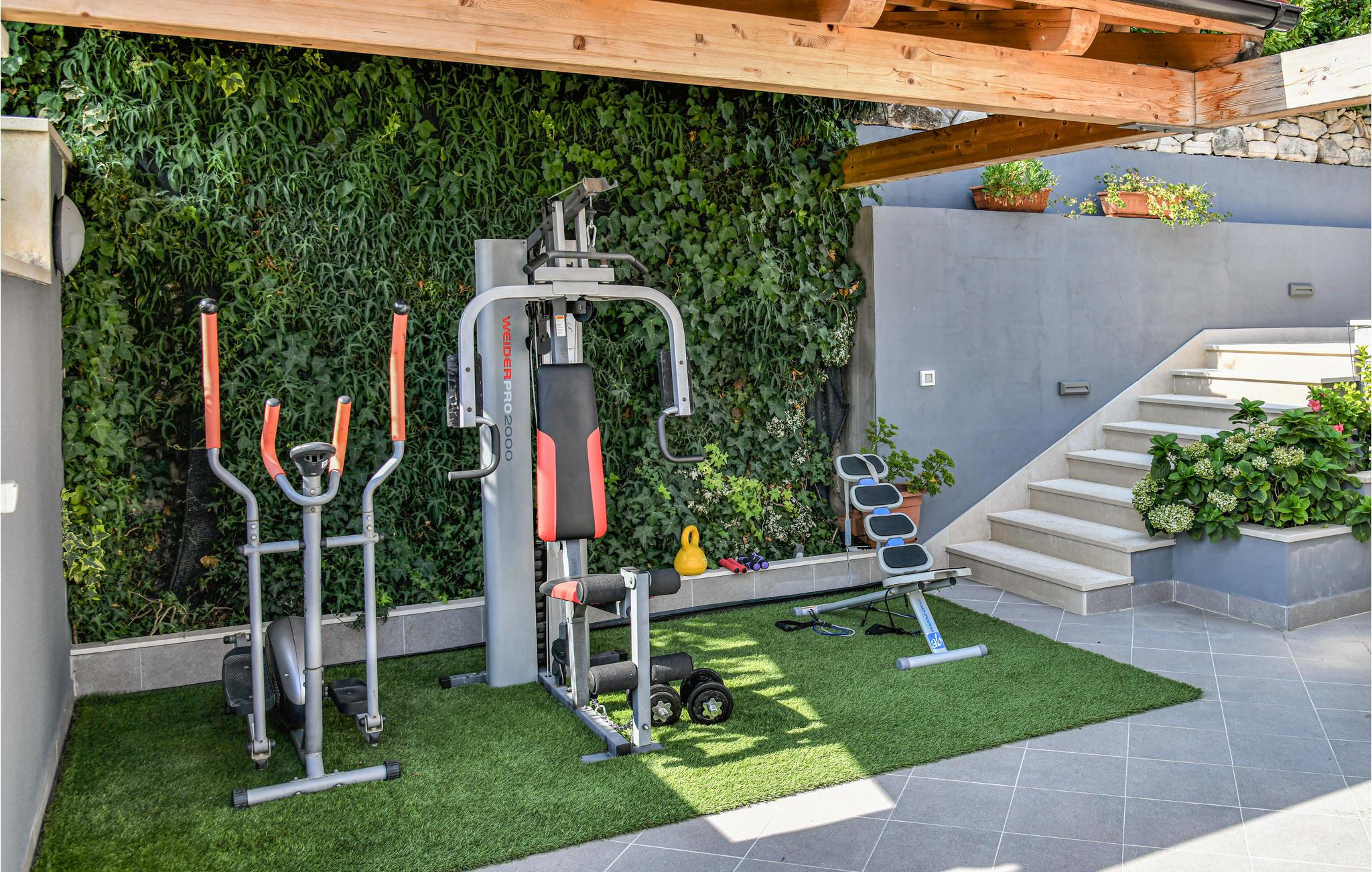 Også udendørs viser huset sin kvalitet. I har adgang til flere terrasser, åbne og overdækkede terrasser, hvor I kommer til at tilbringe mange timer med synet af udsigten over det blå vand og ind over det kroatiske festland. Spis morgenmaden på den fine, hvide veranda eller nyd et glas vin om aftenen. Hop i poolen, når I trænger til en dukkert, og nyd solen på liggestolene.