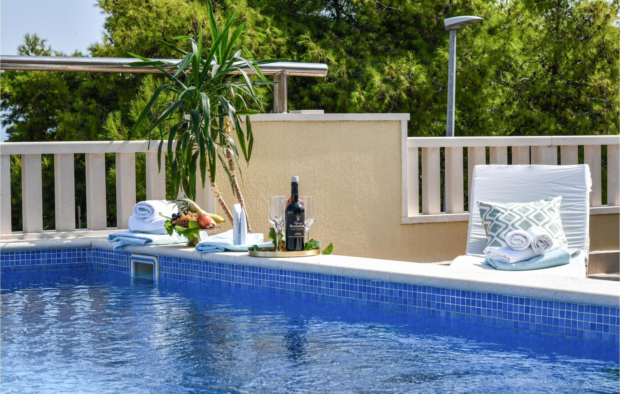 Glæd jer til at tilbringe ferien i dette feriehus på øen Brac. Huset fremstår flot og hjemligt og er indrettet lyst og farverigt. Det er meget rummelig, og I finder bl.a. et oplagt børneværlse.