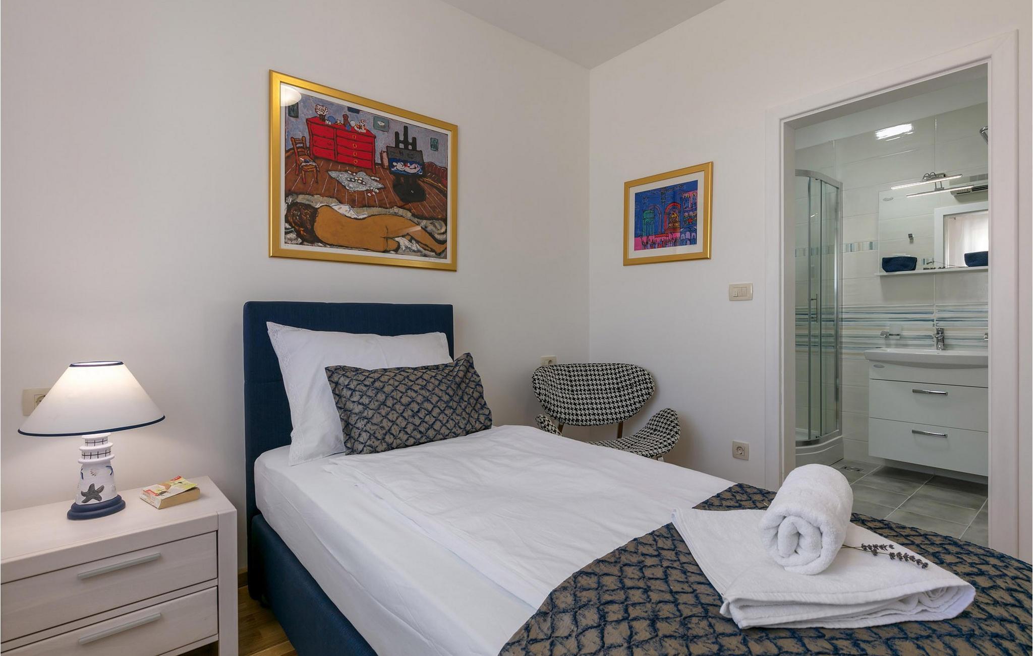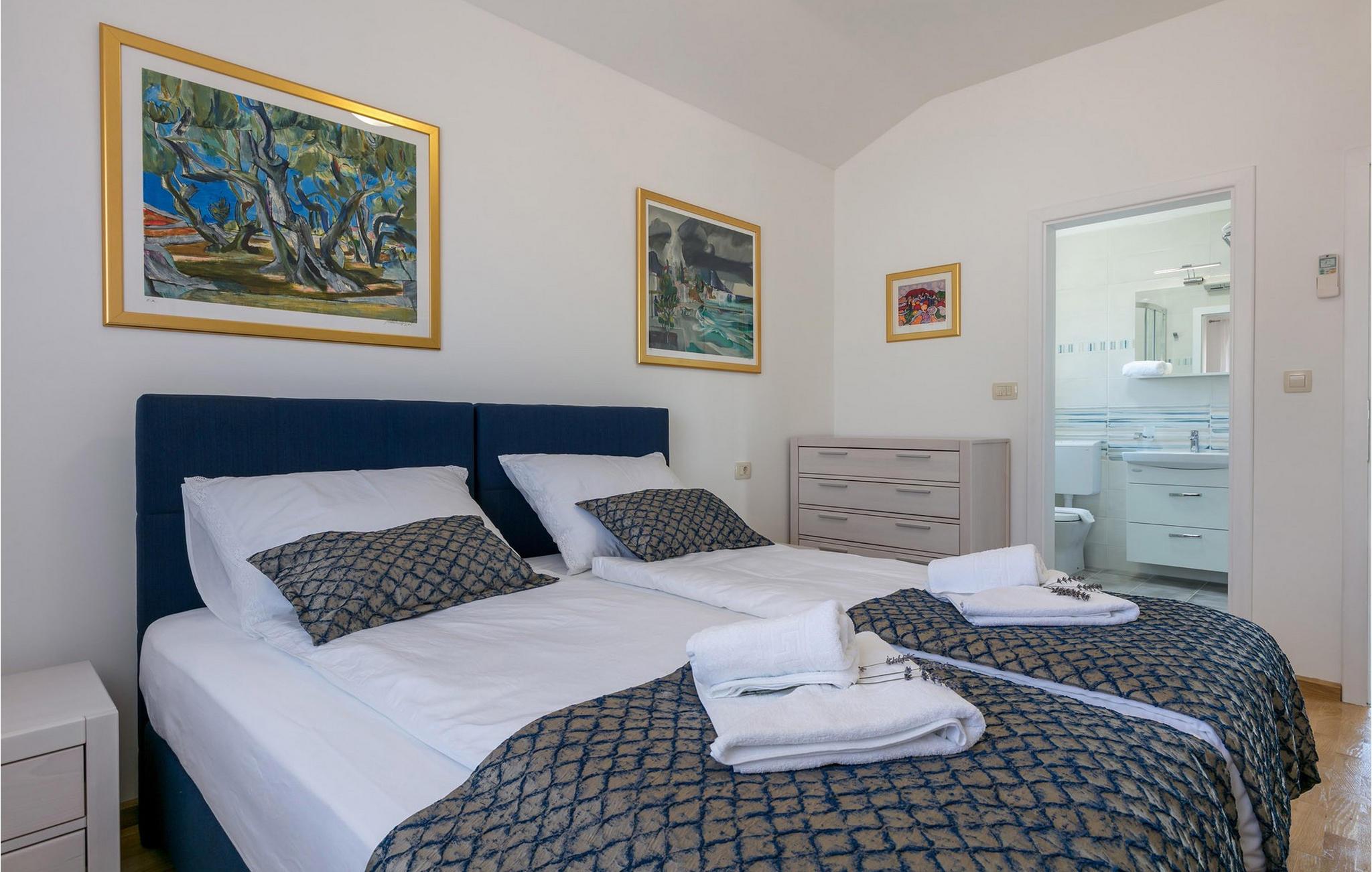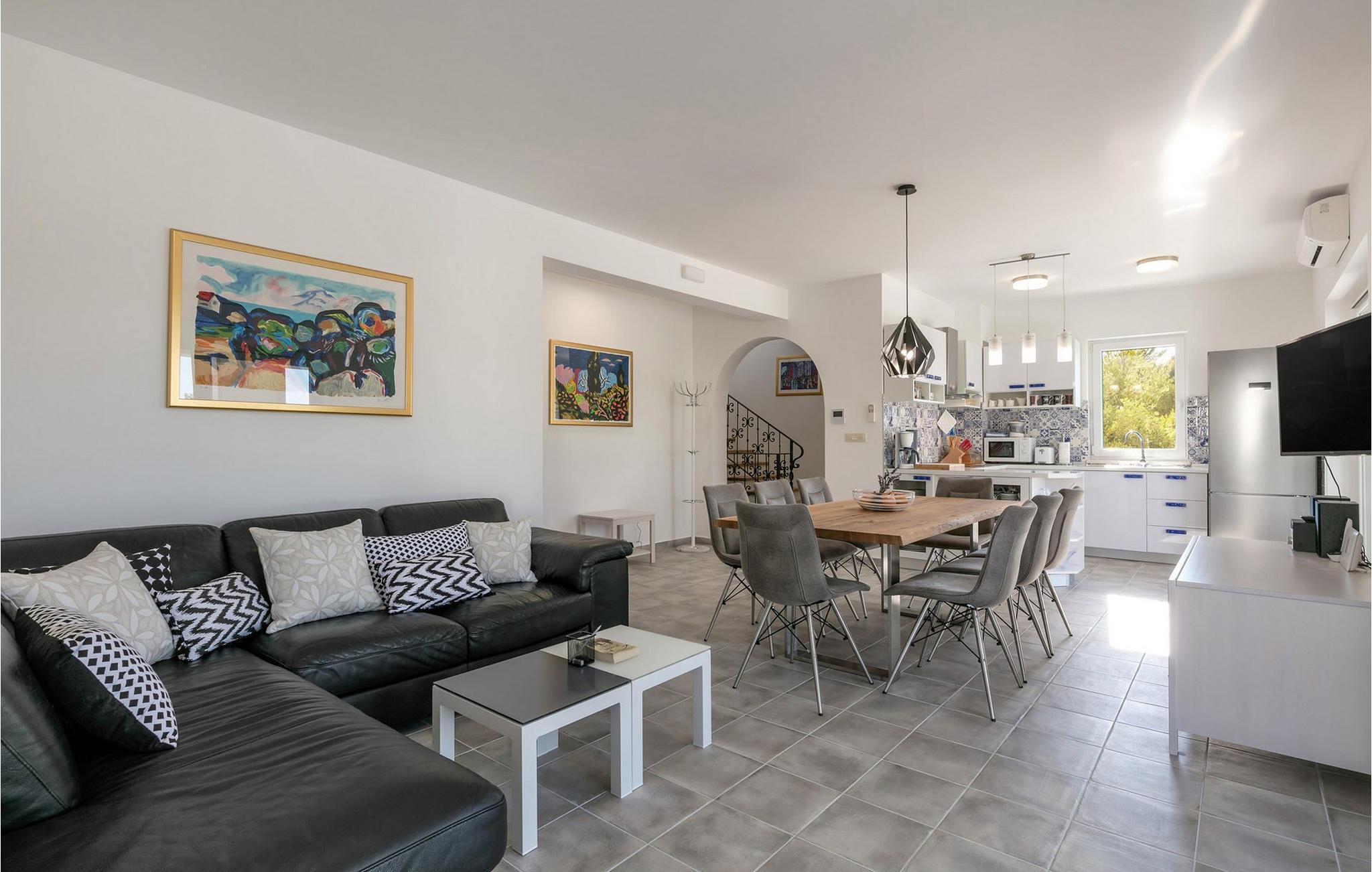 Glæd jer til en dejlig ferie i dette luksuriøse feriehus med pool og havudsigt. Den fortryllende Villa Makarac byder jer velkommen kun få skridt fra bredden af den rolige bugt af samme navn og tilbyder idylliske rammer for en ferie for krop, sind og sjæl. Føl jer hjemme i det komfortable, luftige interiør, tryll kulinariske lækkerier frem i det solbeskinnede køkken og nyd harmoniske måltider ved det stilfulde spisebord. Mens børnene morer sig i legerummet, ved bordtennisbordet eller på trampolinen, kan I nyde stimulerende samtaler over et glas vin. Server jer selv en friskbrygget kaffe på balkonen og nyd middelhavsatmosfæren. Jeres private pool giver forfriskninger for hele familien, mens den skyggefulde terrasse tilbyder et hyggeligt sted til en afslappet morgenmad eller stemningsfulde grillaftener. Udforsk de fantastiske strande på øen Brac og dens mange skjulte bugter. Nyd uberørt natur, mens I cykler eller vandrer, og oplev undervandsverdenen, mens I dykker eller snorkler. Fordyb jer i Bracs pulserende natteliv og prøv regionale retter i indbydende restauranter. Bemærk venligst: Der gælder en turistskat, som skal betales lokalt ved ankomst.