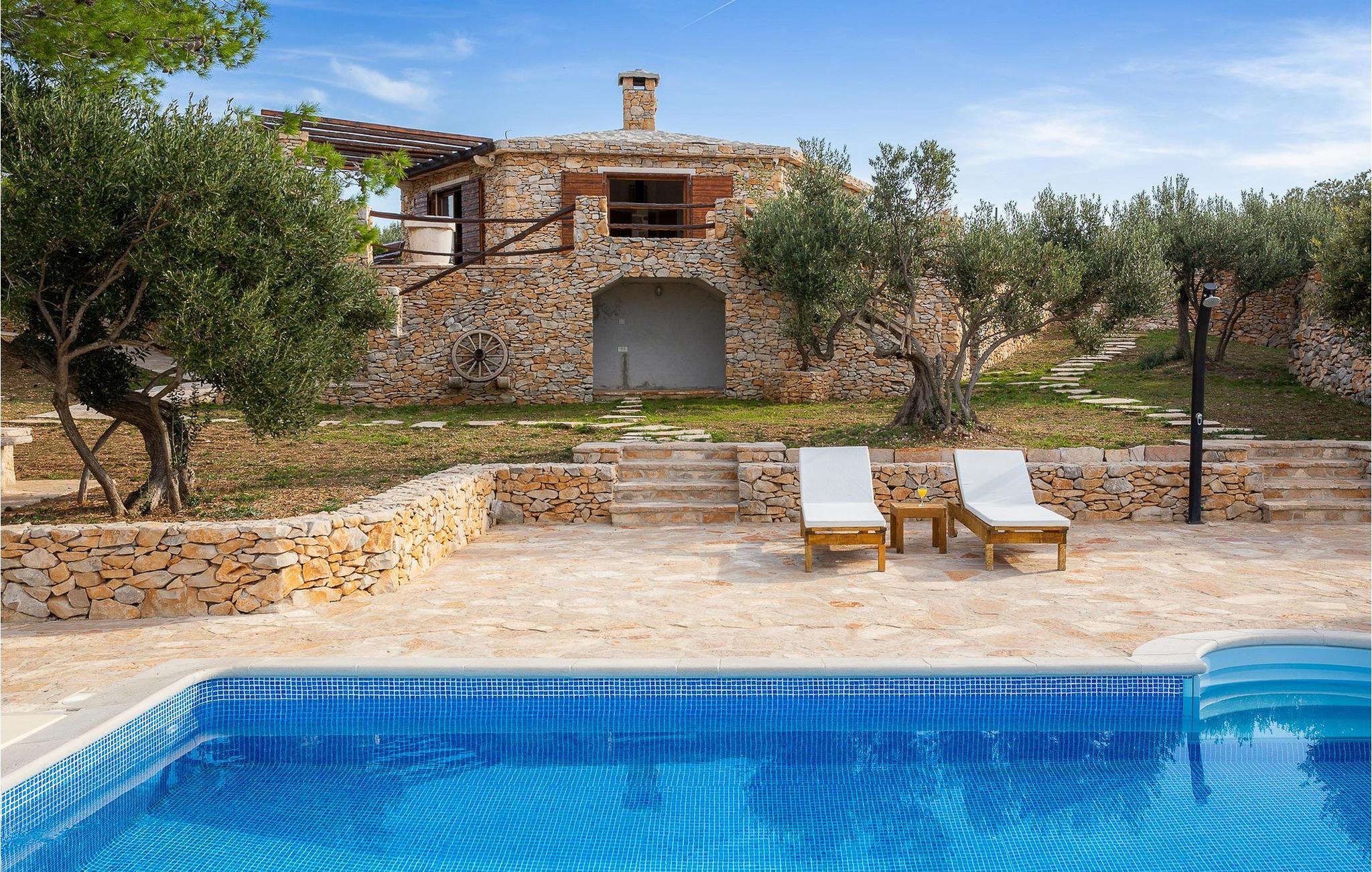 Nyd den rolige atmosfære i denne charmerende stenvilla med swimmingpool og havudsigt. Denne smukke stenvilla tilbyder en perfekt blanding af traditionel dalmatisk stil og moderne komfort. Det smagfuldt indrettede interiør med omhyggelig sans for detaljer skaber en indbydende atmosfære. Det veludstyrede køkken med spiseplads lægger op til at lave mad sammen, mens den hyggelige stue er det perfekte sted at slappe af. Den rummelige terrasse med komfortabelt siddeområde og liggestole tilbyder en storslået udsigt over det glitrende hav. Et andet lille gæstehus på ejendommen giver ekstra komfort. Nyd en morgendukkert i den private swimmingpool, og saml jer om aftenen ved grillhytten. Povlja er et idyllisk sted, perfekt til en afslappende ferie. Udforsk de maleriske omgivelser og nyd afslappende dage på strandene med krystalklart vand. For varierede udflugter anbefaler vi de charmerende byer Bol, Supetar eller Milna, som byder på et varieret udvalg af restauranter, caféer og kulturelle attraktioner. Vandsportsentusiaster kan nyde dykning eller sejlads, mens naturelskere kan opdage de mange vandrestier gennem middelhavslandskabet.