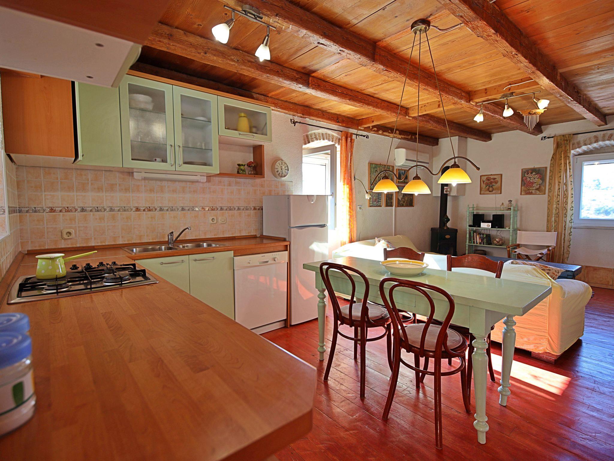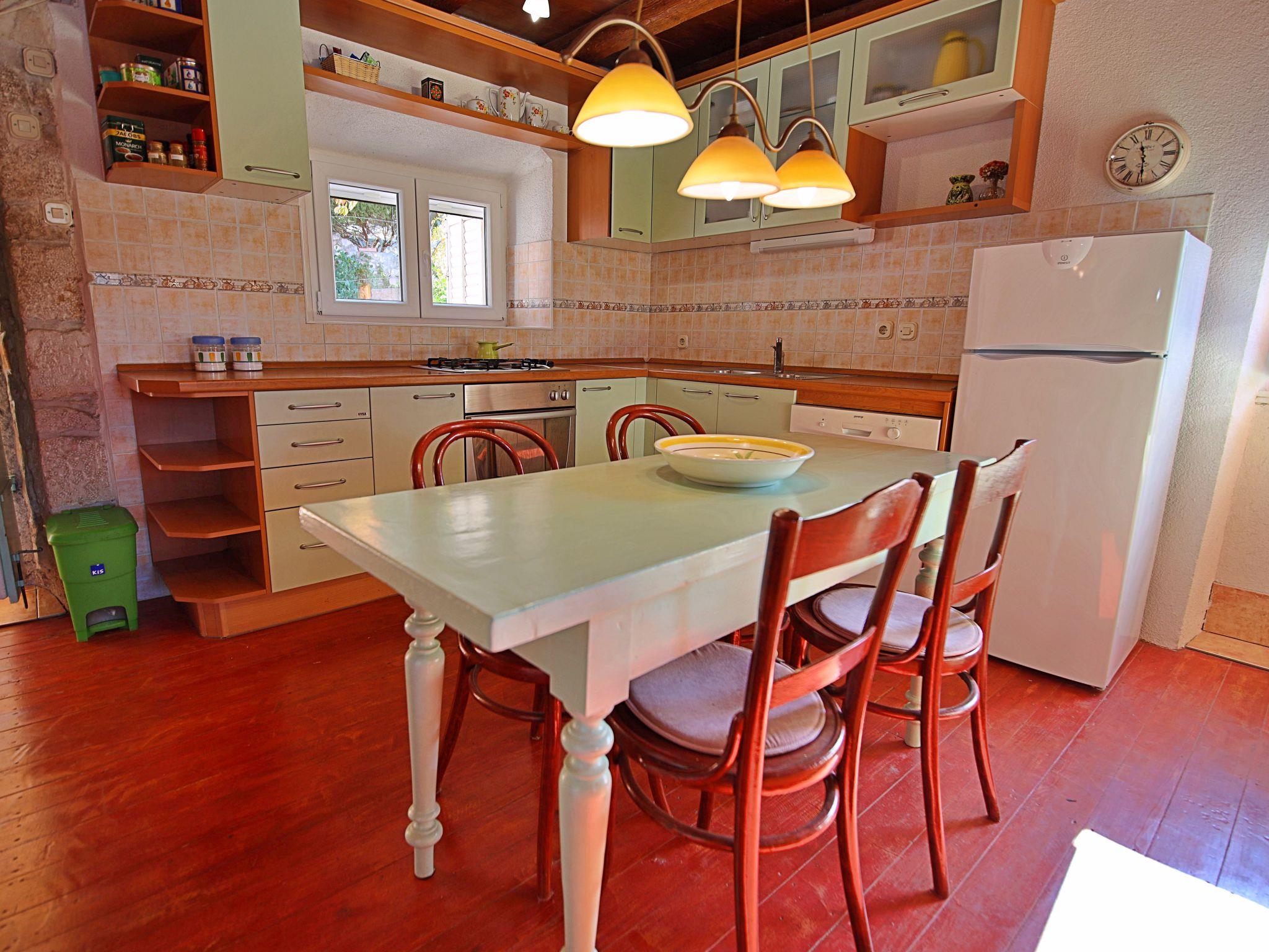 Lozisca 2 km from Bobovisca na Moru: Semi-detached house "Mirna". In a sunny, elevated position, 1.5 km from the sea, 1.5 km from the beach, in the countryside. Private: property 800 m2, well-kept garden with wildlife garden. Outdoor shower, barbecue. In the house: internet access, relaxation room. Public parking. Shop 50 m, restaurant 1.5 km, bus stop 5.9 km, shingle beach 1.5 km, rocky beach 1.5 km.
