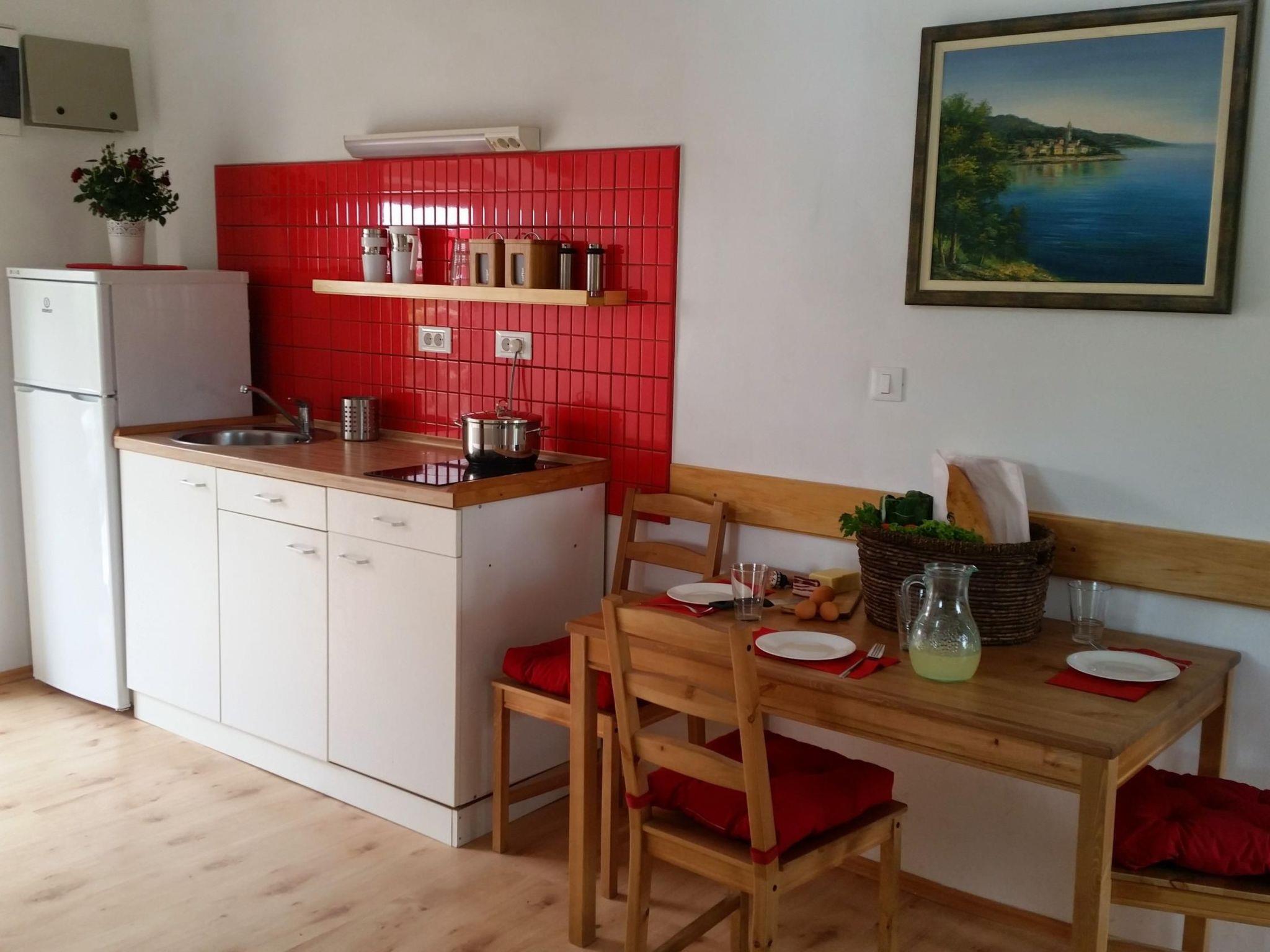 The renovation of the 50m² house was carried out in a "one-volume style", in order to make it as big, modern and comfortable as possible. It is basically one big room with a gallery that has a double bed measuring 160 x 200cm. Below there is a relatively big bathroom with a shower, washbasin, WC and washing machine. There is a cooking niche integrated into the living room with many appliances (fridge, microwave, toaster, coffee machine…), a full set of crockery, and a dining table with chairs. The living room also provides a fold-out double sofa bed (200 x 160cm) and, if required, a supplementary bed can be provided. The house is best suited to a family or a smaller group of four or a maximum of five guests.