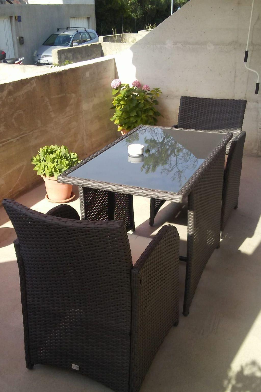 The outdoor space of the apartment combines functionality and privacy. Enjoy your morning coffee or evening relaxation on the spacious terrace on the ground floor or feel the peak of privacy on the roof terrace, which is available for your personal use. This is the perfect place for moments of peace with your favorite book or a glass of wine.