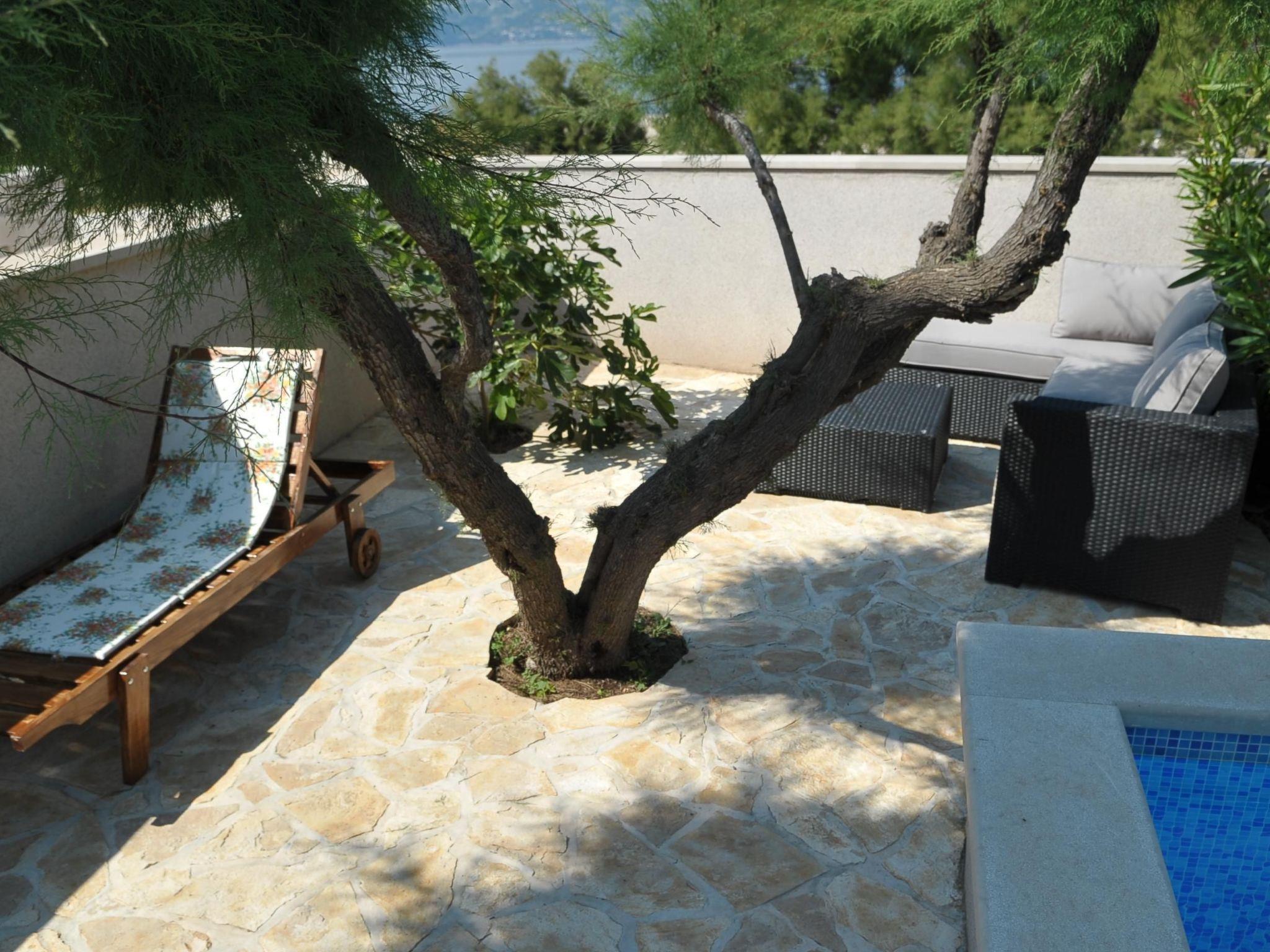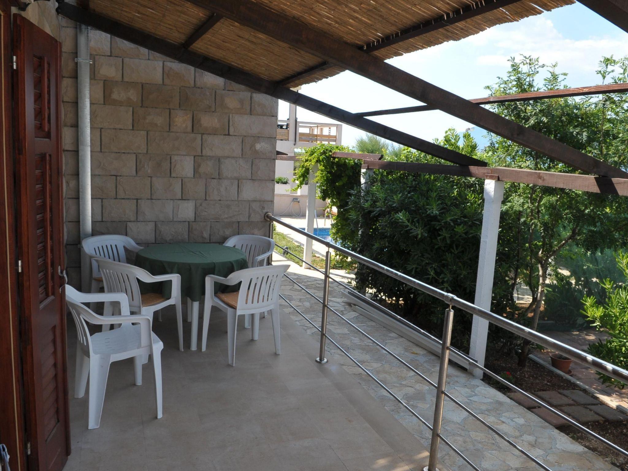 Both on the ground floor and on the first floor there is a balcony with a beautiful view of the sea. You can enjoy meals on the balcony on the first floor (25m²) along with the beautiful view of the sea. The balconies are furnished with garden furniture, parasols and loungers. In front of the house there is a big garden with a private pool (25m²) and an outdoor shower, which can be illuminated at night. Grape vines are planted behind the house. The site is enclosed and suitable for children and pets. Five parking spaces are provided.
