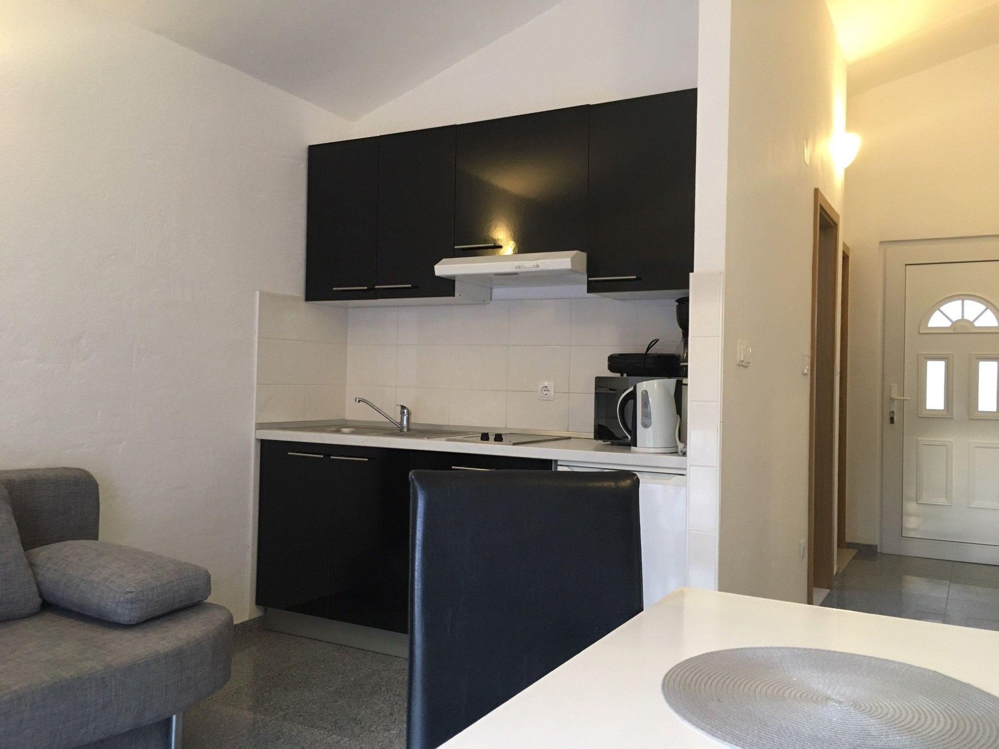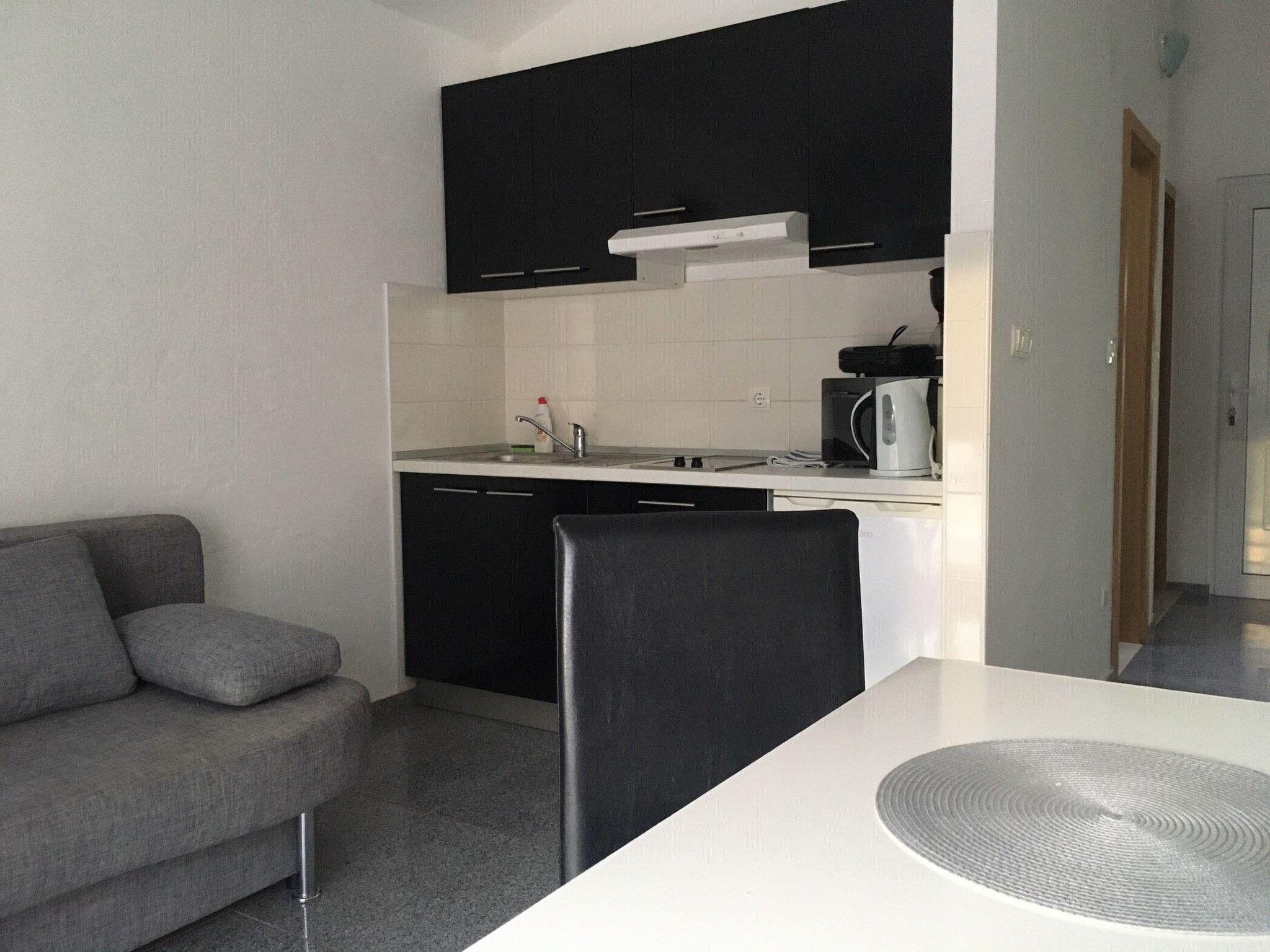 Inside, the apartment is fully equipped to ensure a comfortable stay. Central to its appeal is air conditioning available throughout, ensuring a cool retreat from the warm Dalmatian sun. A practical kitchen comes with a Ceran hob and a coffee machine for your morning brews, complemented by an electric kettle for your hot drink needs. The apartment also caters to practicalities, featuring a washing machine for communal use in the building, while a clothes dryer within the apartment promises convenience. The presence of a fireplace adds a cozy ambiance to evenings spent indoors.