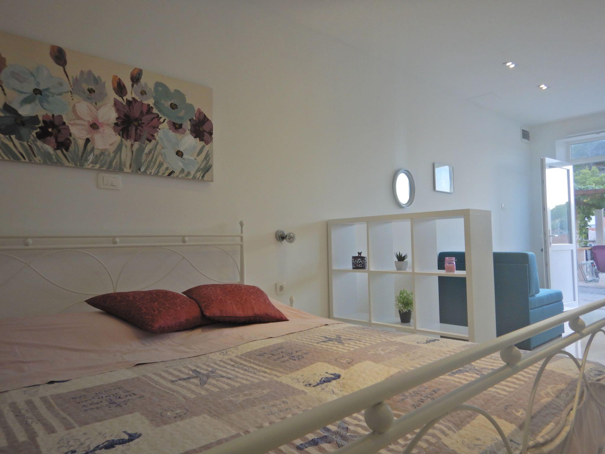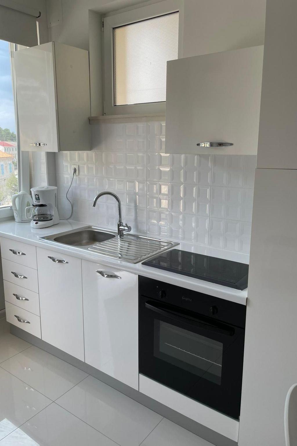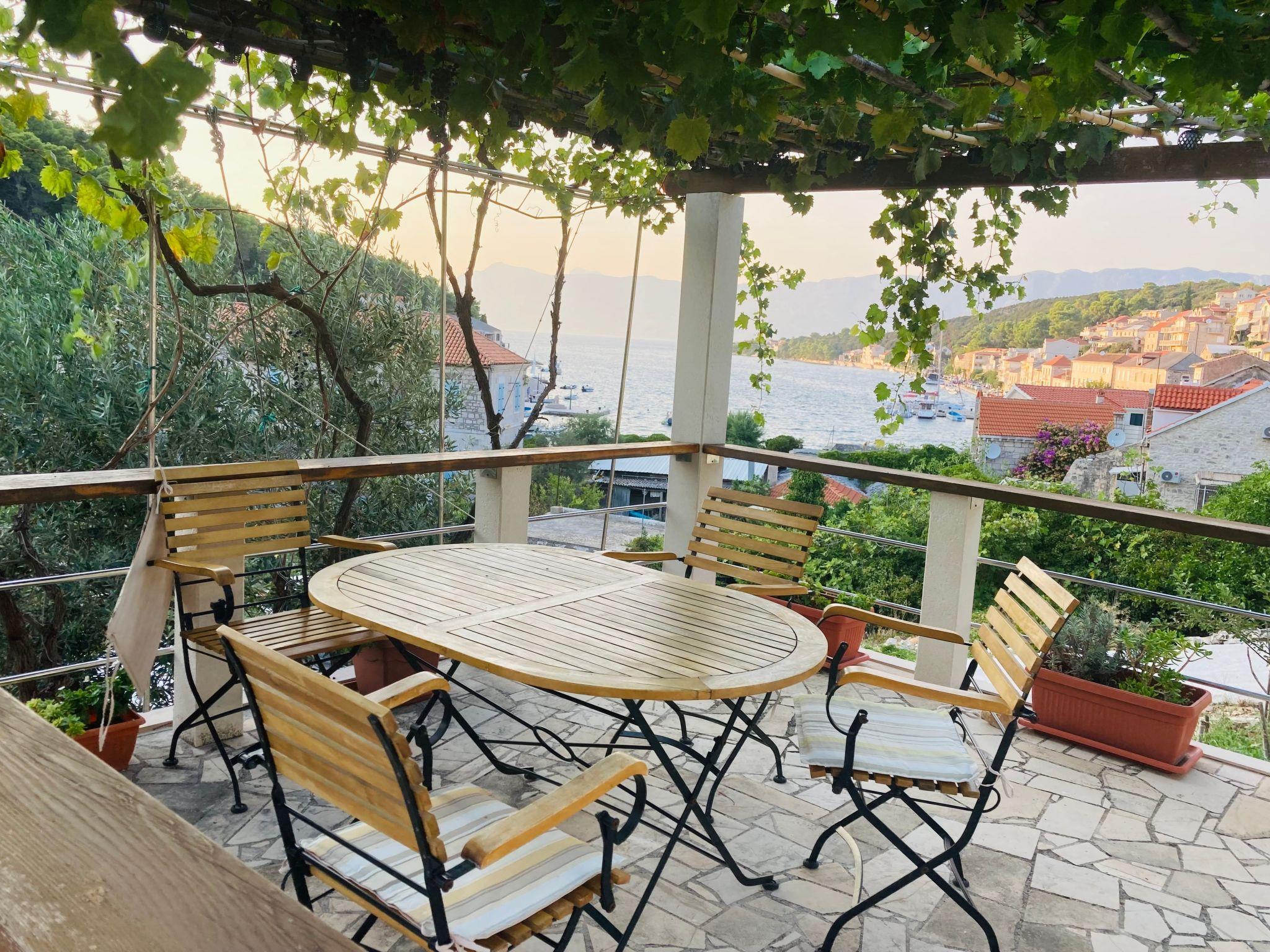 Apartment 2 + 1, has fully equipped kitchen, kettle, oven, coffee maker, refrigerator with freezer. TV, air conditioning. In the bathroom there is a washing machine and the use of the washing machine is not charged. The view from the apartment covers the entire Povlja bay.
