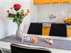 This apartment is on the ground floor. It features 42m² of living space: one double-bedded room, two single beds in the second bedroom and one sofa bed in the living room; living room with fully equipped kitchen and dining room, bathroom with toilet.