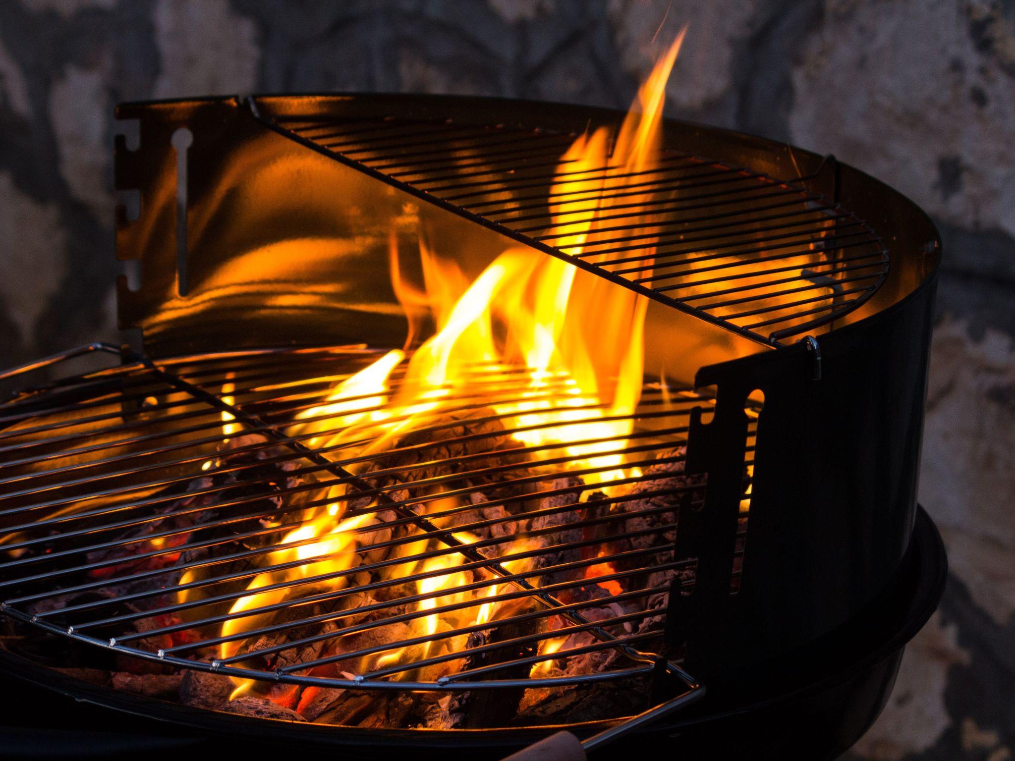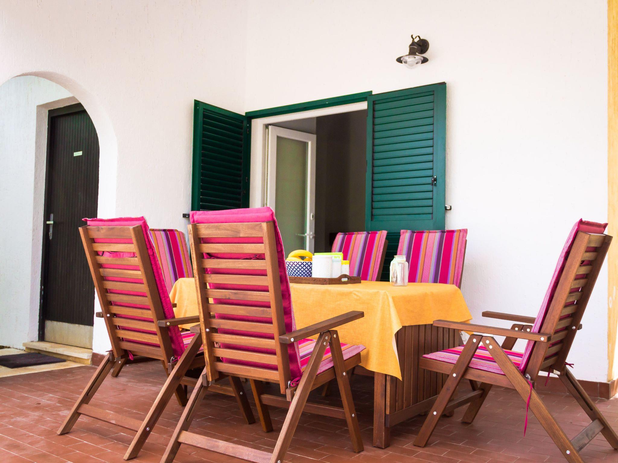The terrace is equipped with garden furniture and outdoor barbecue.