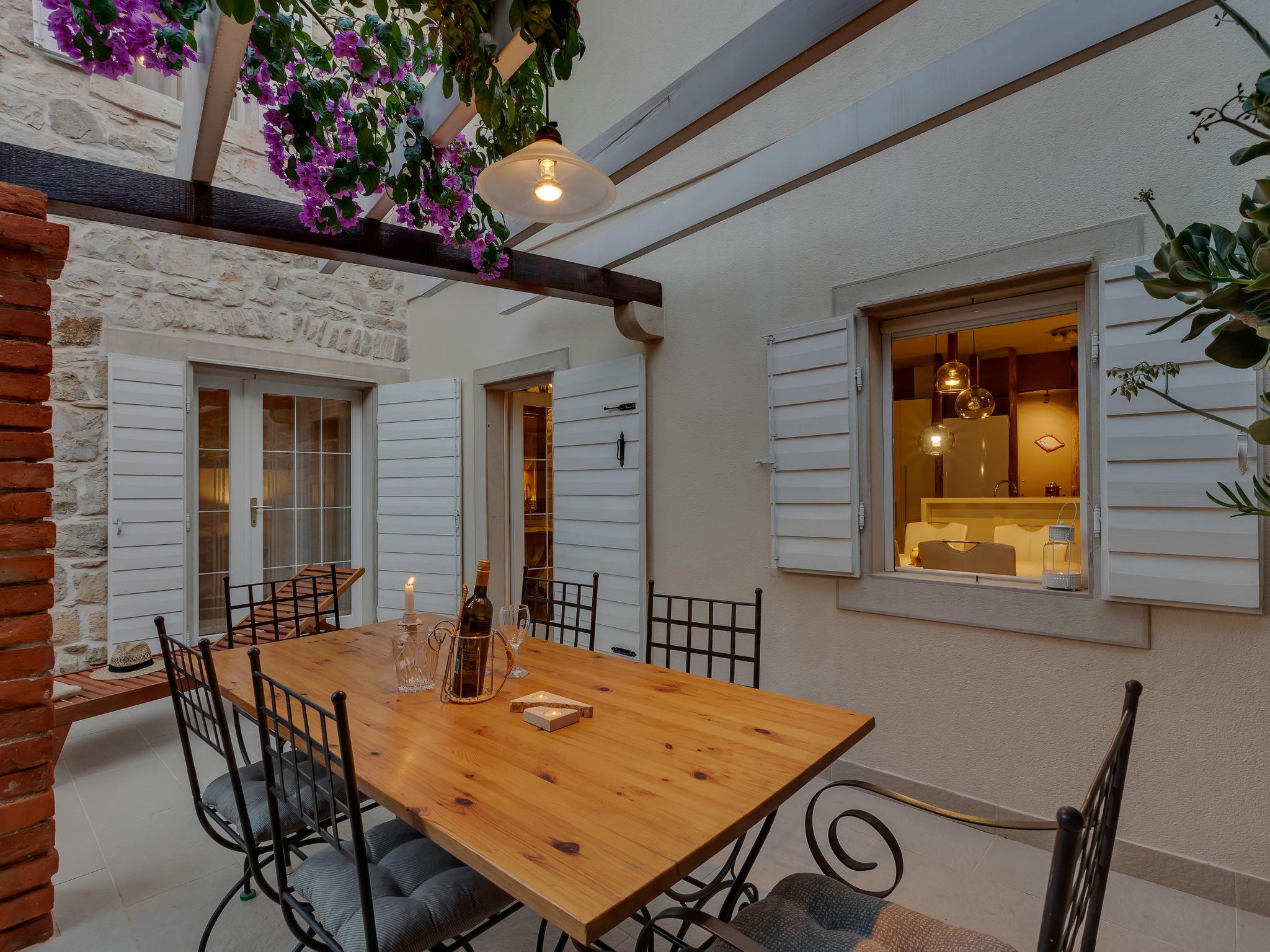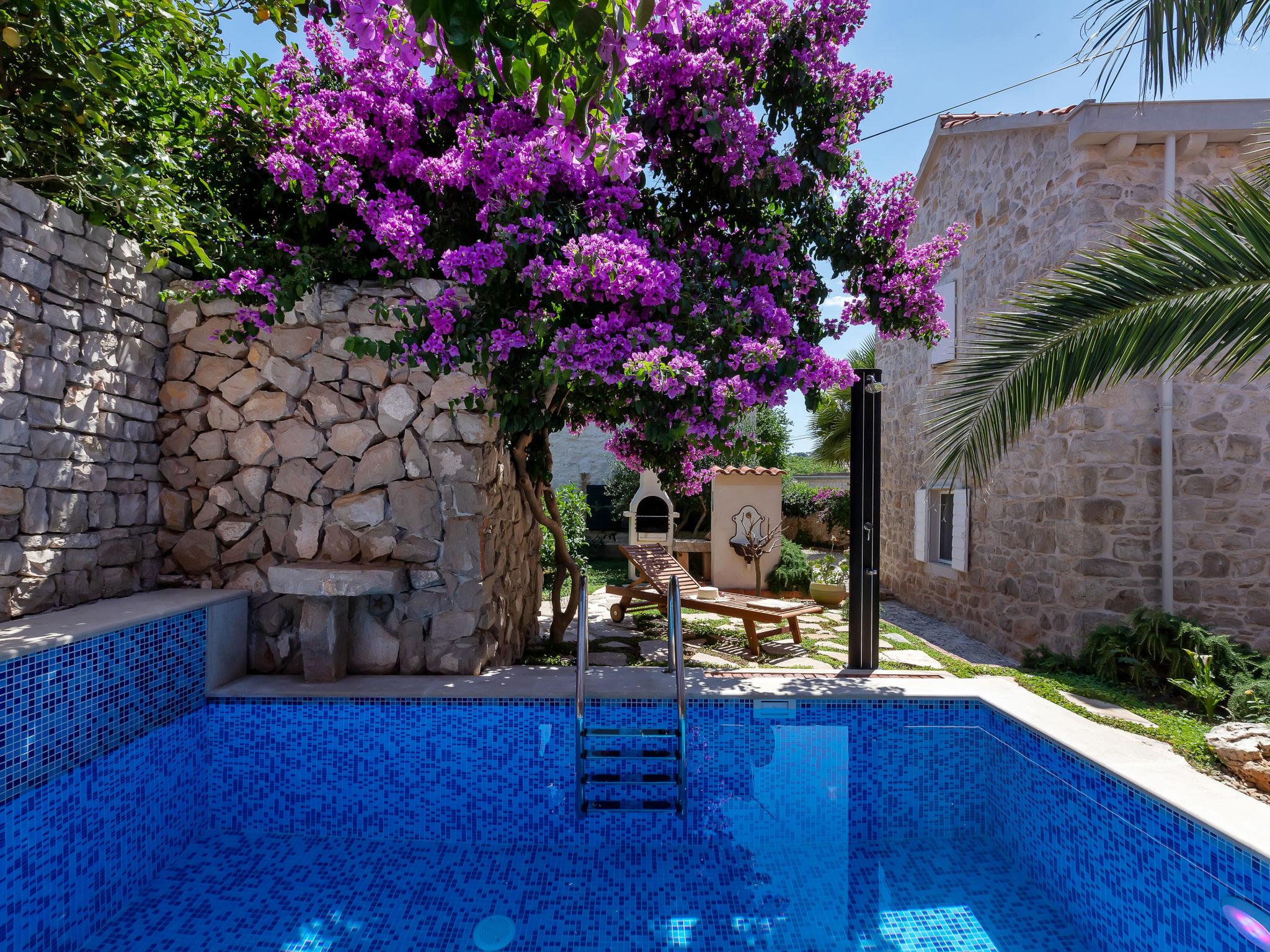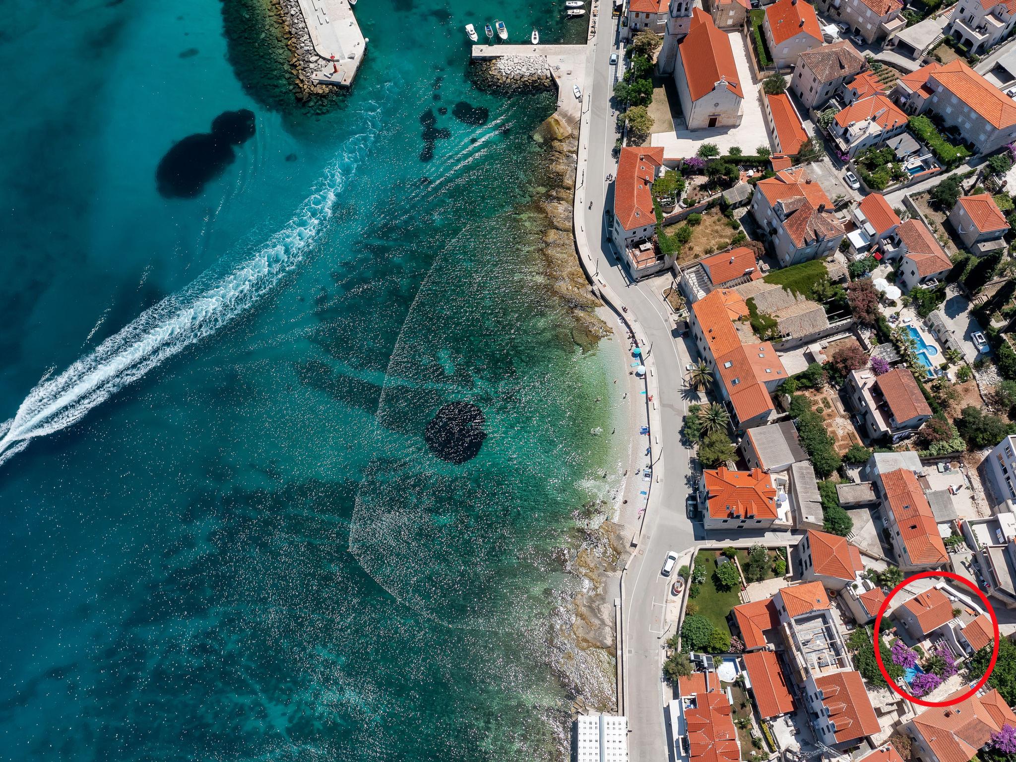 Single-family house "Marijan", 2 storeys. In a sunny position, excellent location: right in the centre but still quiet, in the heart of the city, 50 m from the sea, 50 m from the beach. Private: property 120 m2 (fenced), well-kept terraced garden, swimming pool angular, heated (4 x 3 m, 14 m2, depth 150 cm, seasonal availability: 10.Apr. - 10.Oct.) with salt-electrolysis pool-cleaning system. Outdoor shower, barbecue. In the house: internet access, roof terrace, washing machine. Parking (for 2 cars) at the house on the premises. Shop, restaurant 400 m, bus stop 1 km, pebble beach 50 m. Swimming pool with hydromassage. Parking space for 2 small cars.