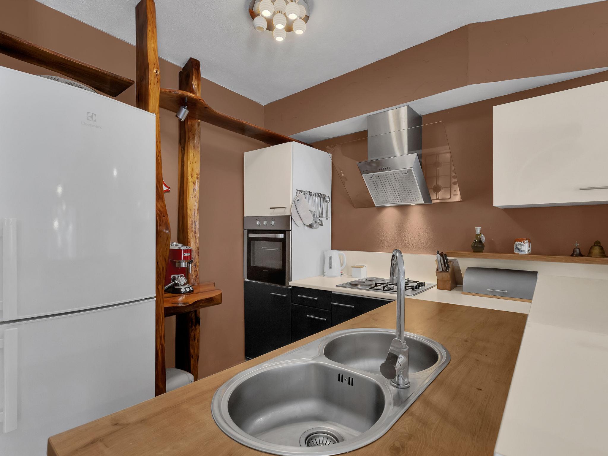 3-room house 165 m2 on 2 levels. Living/sleeping room 22 m2 with 2 sofabeds (80 cm, length 200 cm), satellite TV, air conditioning and fan. Exit to the garden, to the terrace. Kitchen (4 hot plates, oven, dishwasher, freezer, electric coffee machine) with dining table. Exit to the terrace. Bath/bidet/WC with corner bath. Upper floor: 1 room 20 m2 with 1 french bed (160 cm, length 190 cm), air conditioning. 1 room with 1 french bed (160 cm, length 190 cm), air conditioning. Exit to the terrace. Shower/WC. Underfloor heating. Terrace 15 m2. Terrace furniture. Partial distant view of the sea. Facilities: Internet (WiFi, free). Parking (fenced).